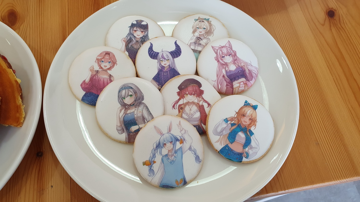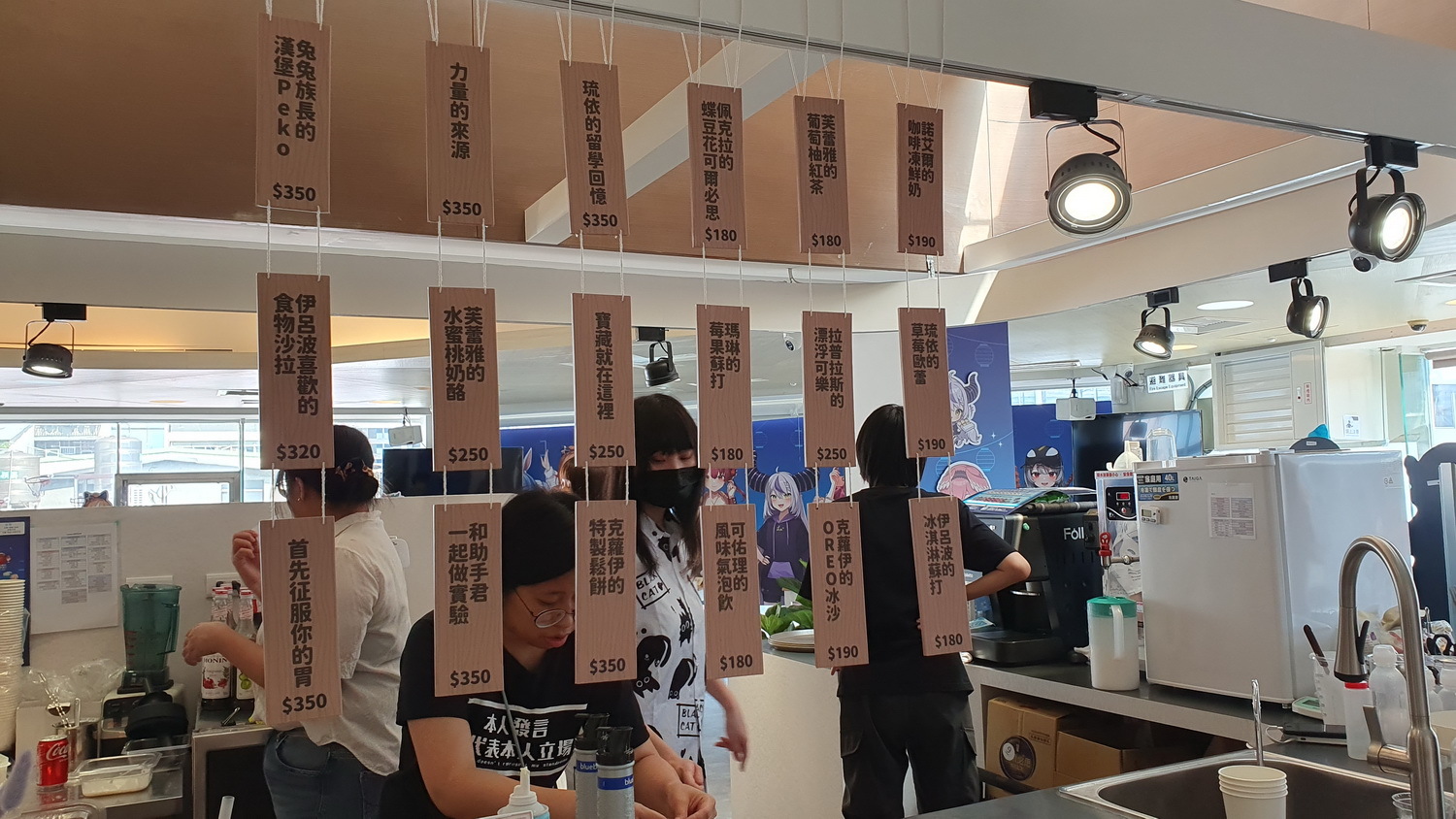 飲品部分則有總帥愛喝的「拉普拉斯的漂浮可樂」、附上 3 種口味糖漿的「可佑理的風味氣泡飲」、「克蘿伊的 OREO 冰沙」...等共九款。另外還有打印九位成員的「印刷奶蓋紅茶」和「印刷糖霜餅乾」,期間消費任一飲品或餅乾,再贈送 hololive 角色杯墊一張(隨機發送、恕不挑款)。