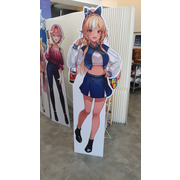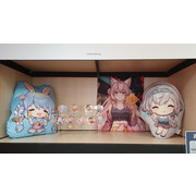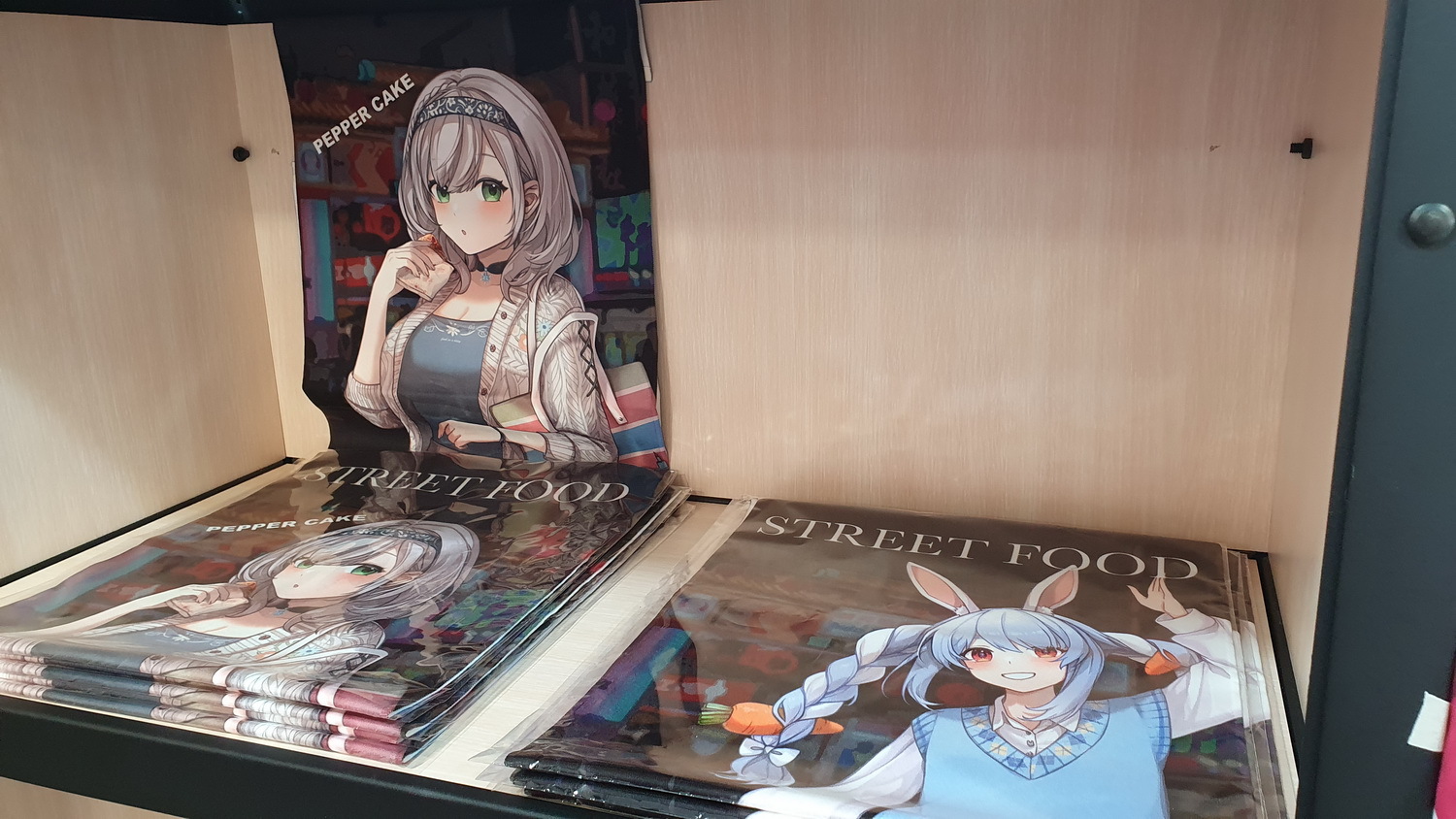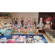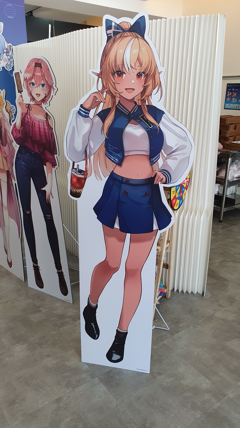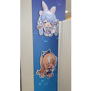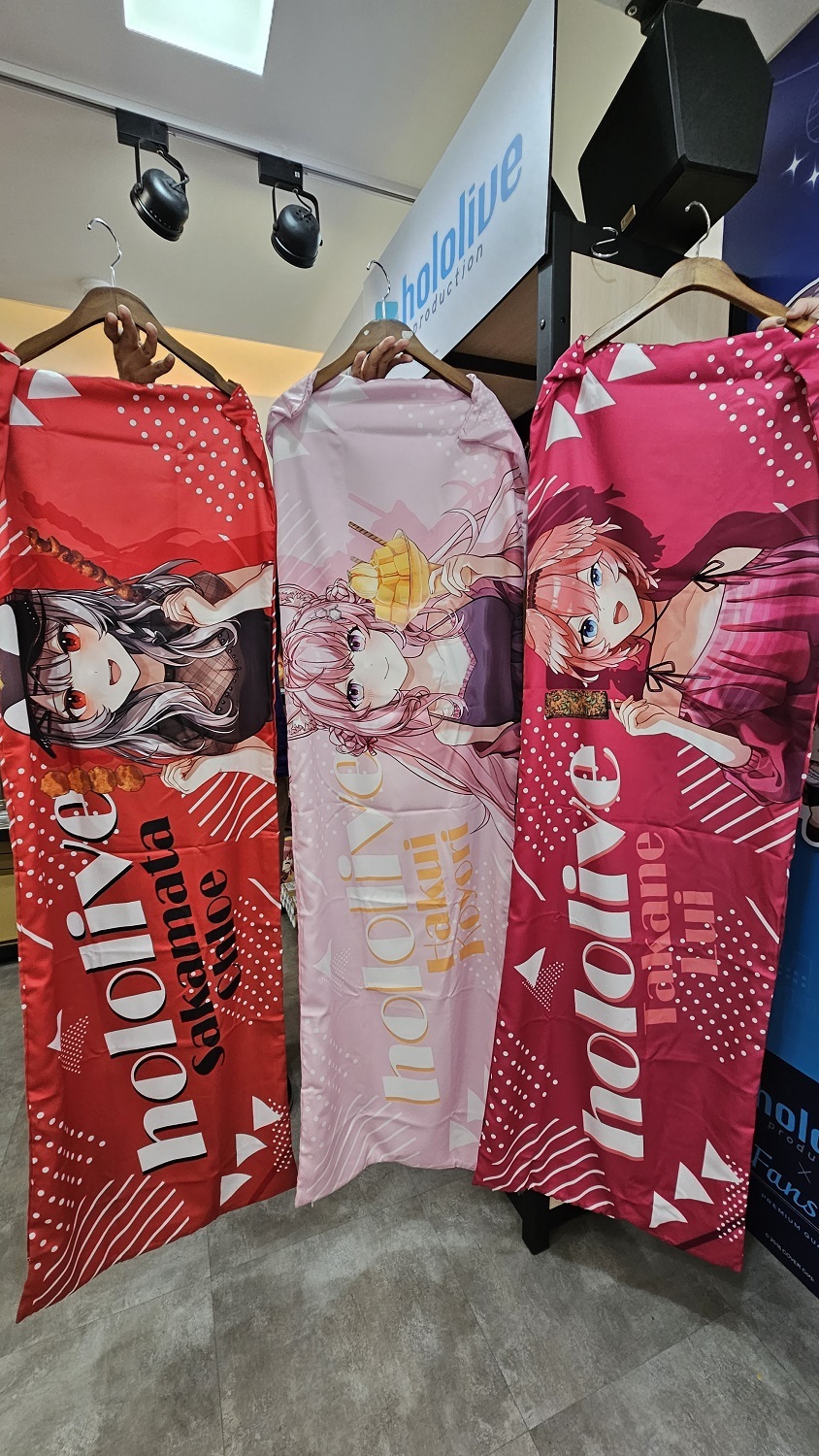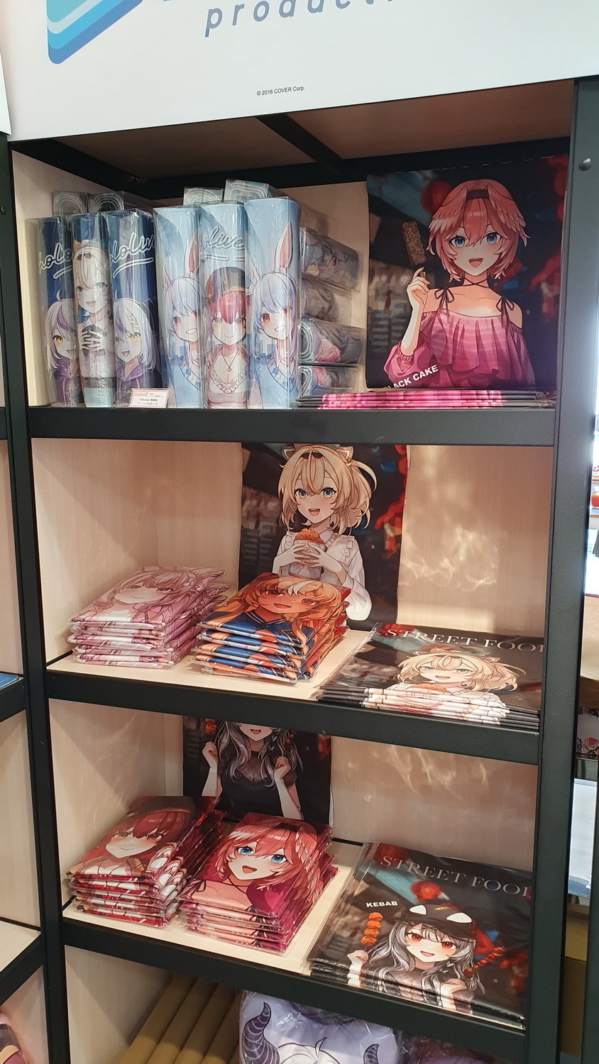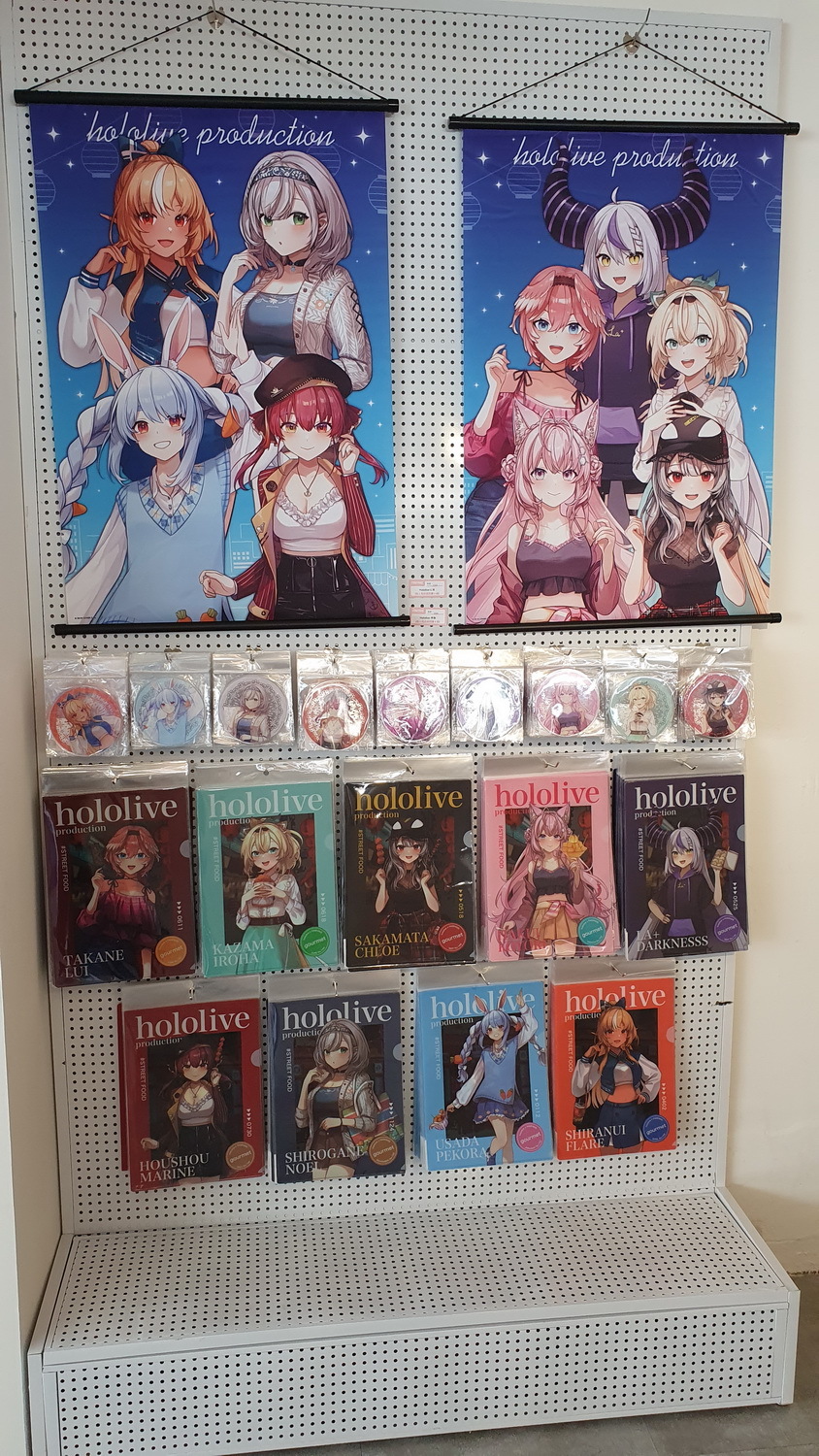 週邊商品的部分,則是將陸續推出幻彩壓克力立牌、掛軸、杯墊、壓克力色紙、毛巾、T-shirt...等新品,還有實體限定的等身抱枕套、無框畫、紙袋。另外「FANFANS 粉粉」官網也將於 11/6 上架本次合作系列,及網路限定的無線充電盤、行動電源,網路消費 hololive 系列商品滿 $999,將加送 hololive 成員 SNS 造型透卡一張(款式隨機、送完為止)。