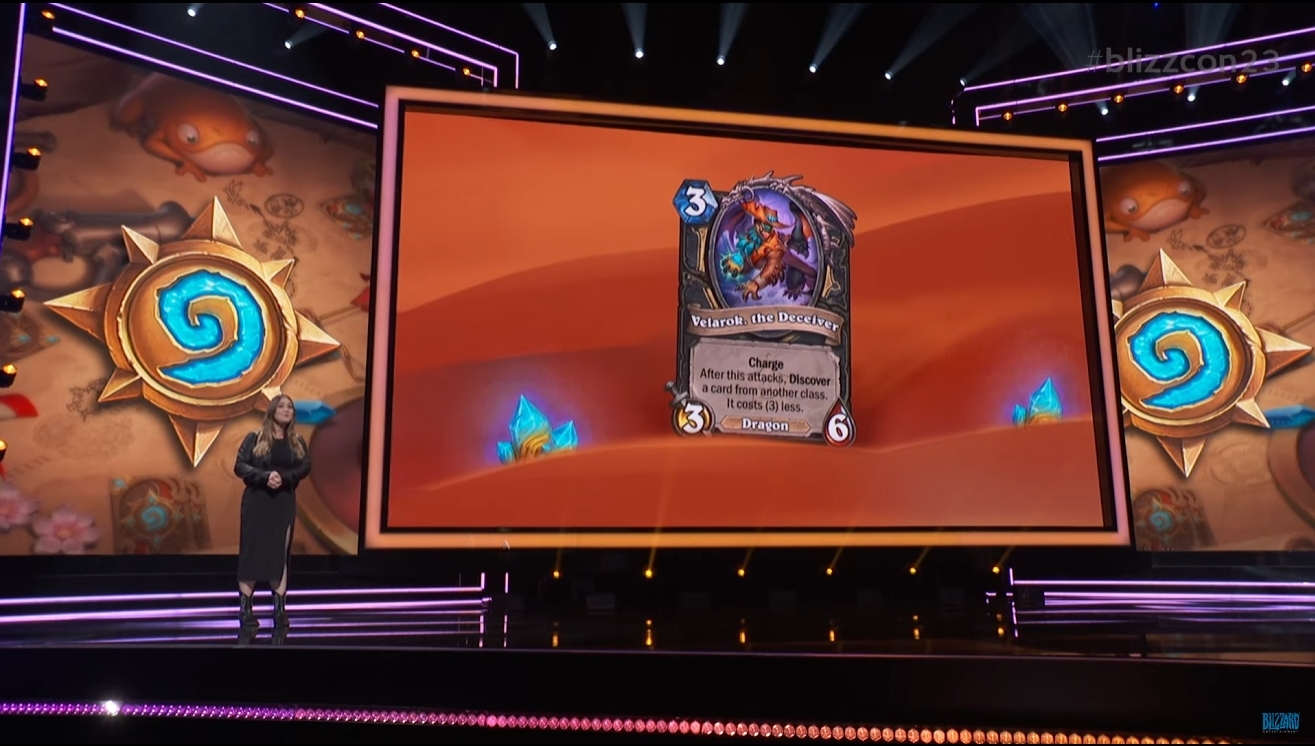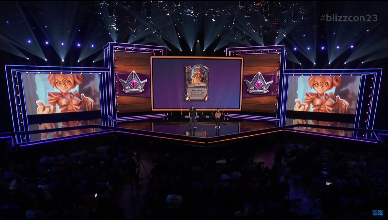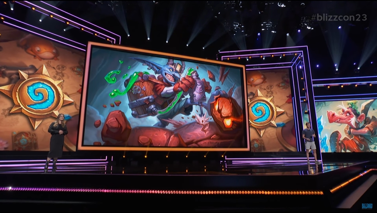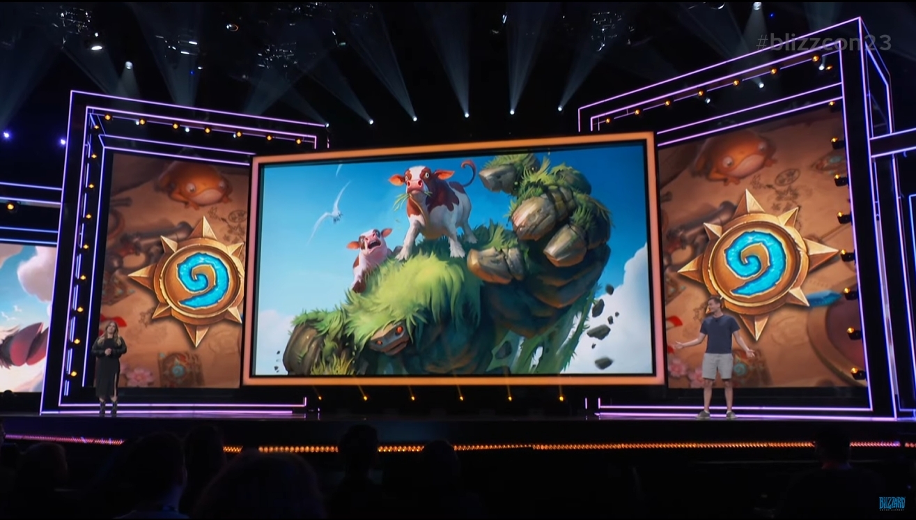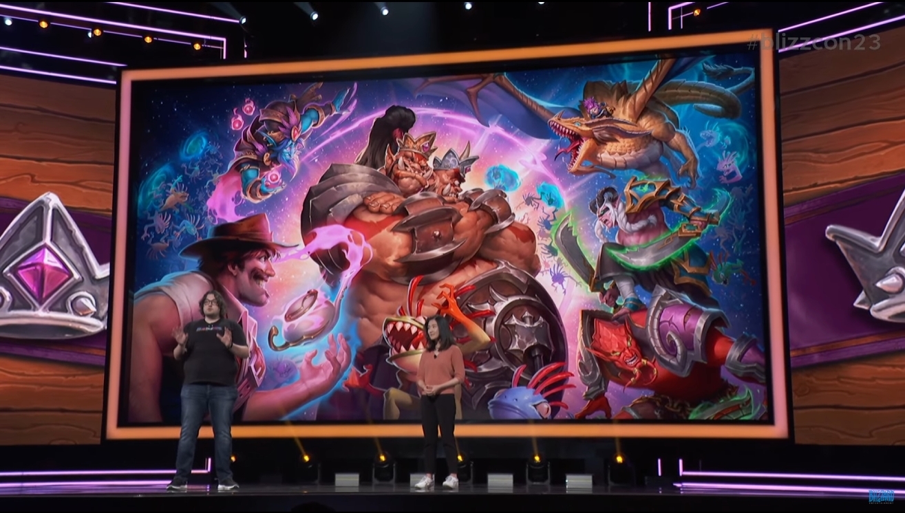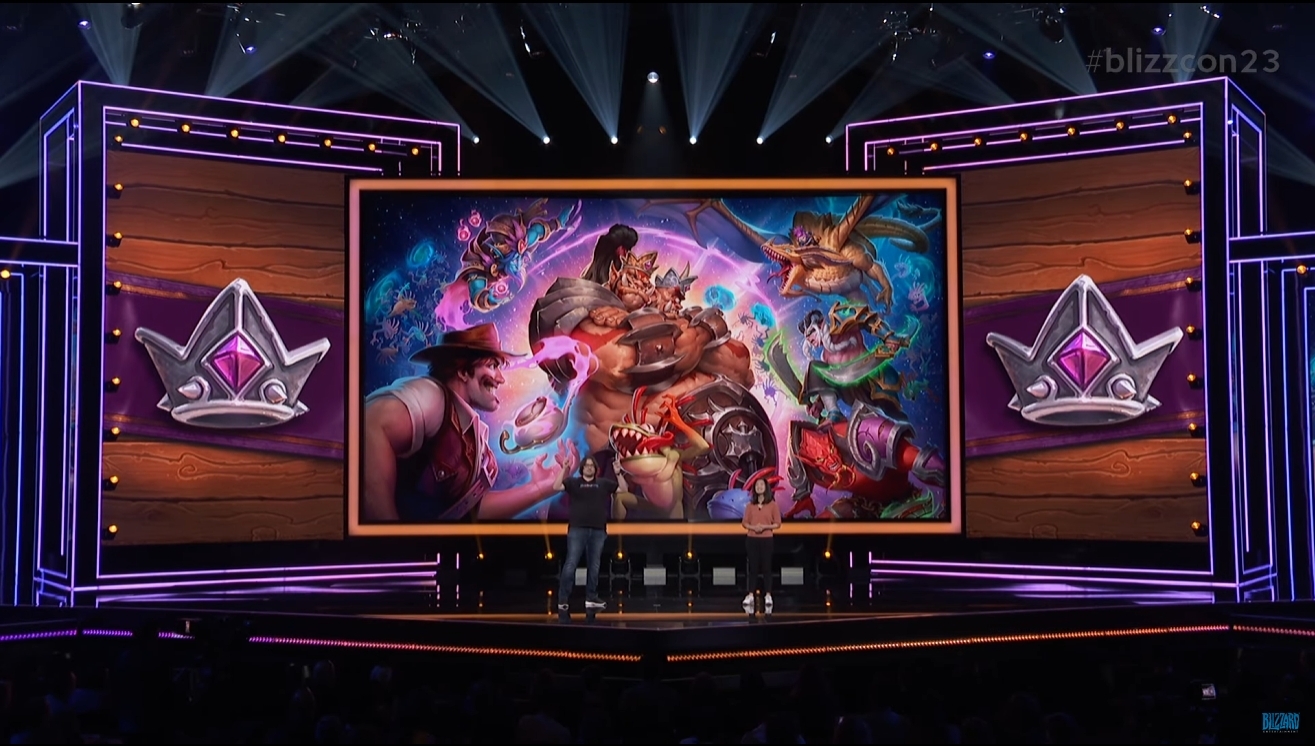 爐石戰記》的遊戲團隊將帶領玩家搶先目睹即將推出的內容。緊接著再由開發者親自引領了解最新情報,包含像是《決戰荒蕪之地》全新卡牌、追趕進度包以及可與好友並肩作戰的「英雄戰場雙打」模式。
