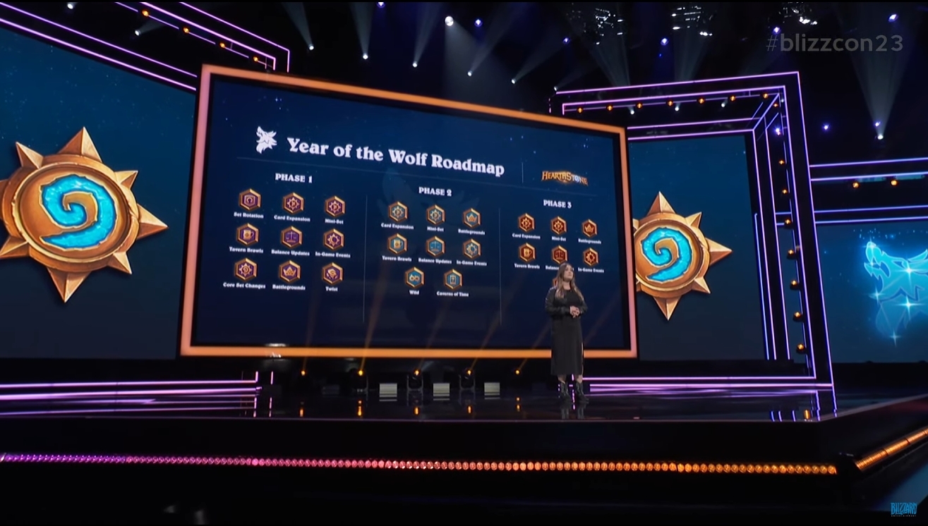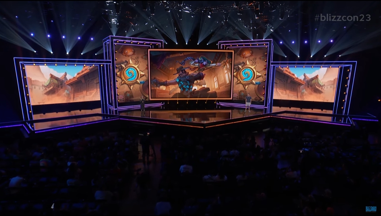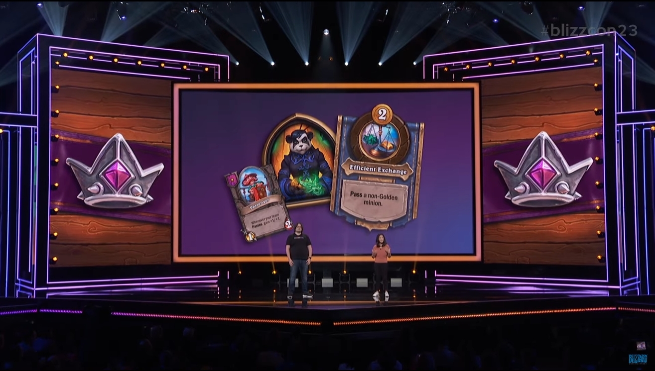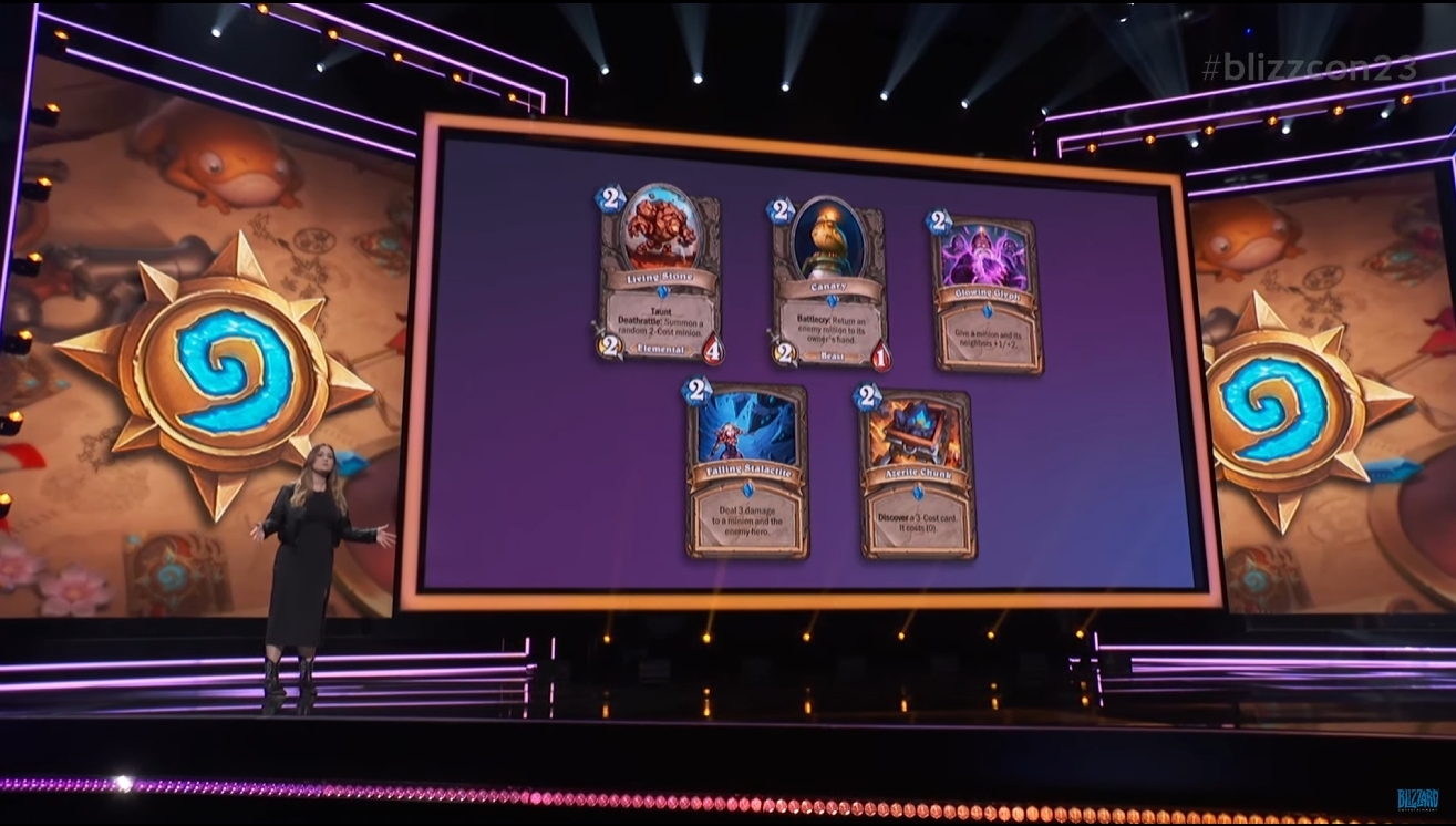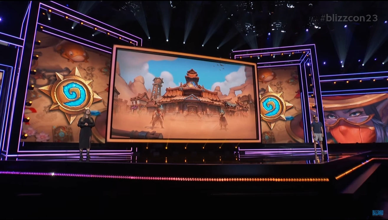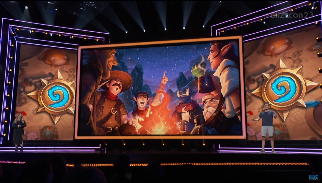 爐石戰記》的遊戲團隊將帶領玩家搶先目睹即將推出的內容。緊接著再由開發者親自引領了解最新情報,包含像是《決戰荒蕪之地》全新卡牌、追趕進度包以及可與好友並肩作戰的「英雄戰場雙打」模式。