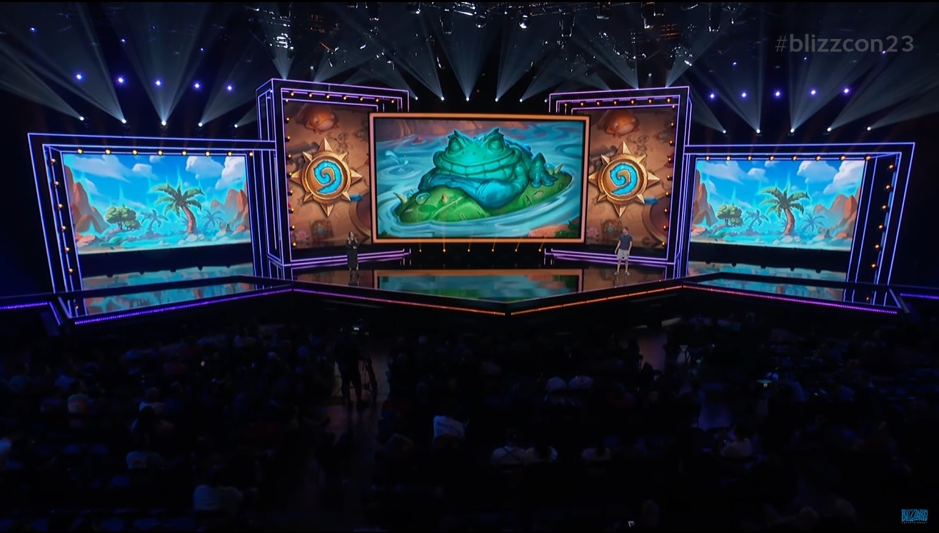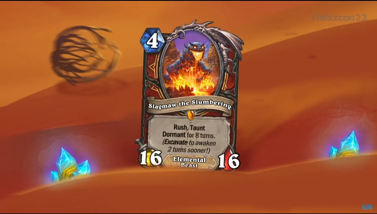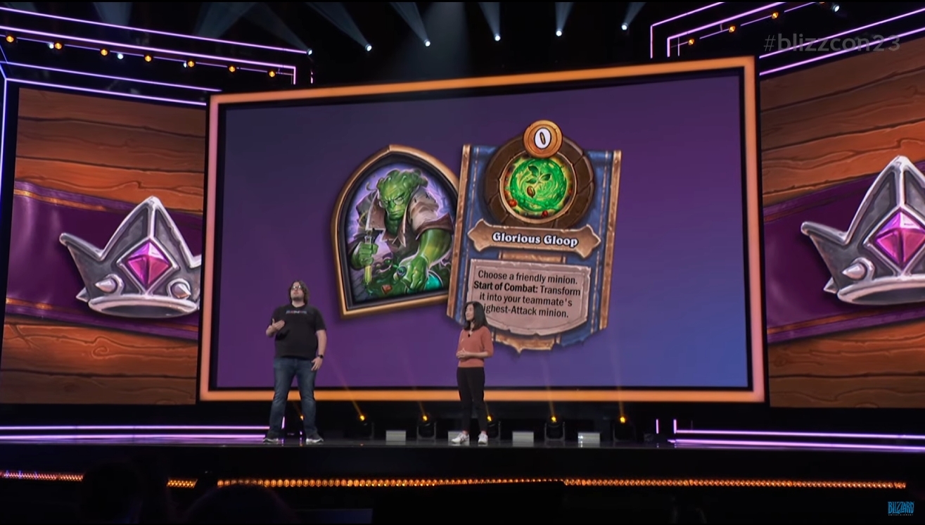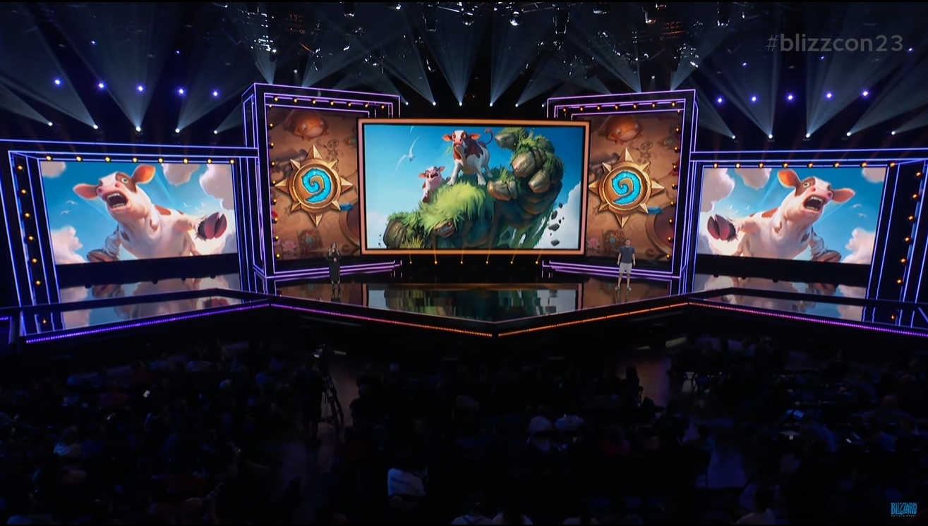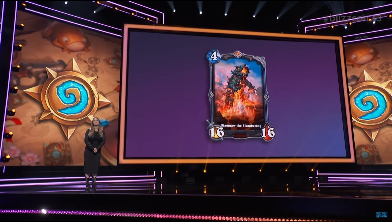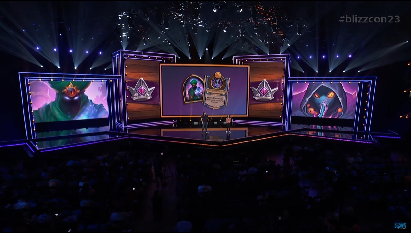 爐石戰記》的遊戲團隊將帶領玩家搶先目睹即將推出的內容。緊接著再由開發者親自引領了解最新情報,包含像是《決戰荒蕪之地》全新卡牌、追趕進度包以及可與好友並肩作戰的「英雄戰場雙打」模式。