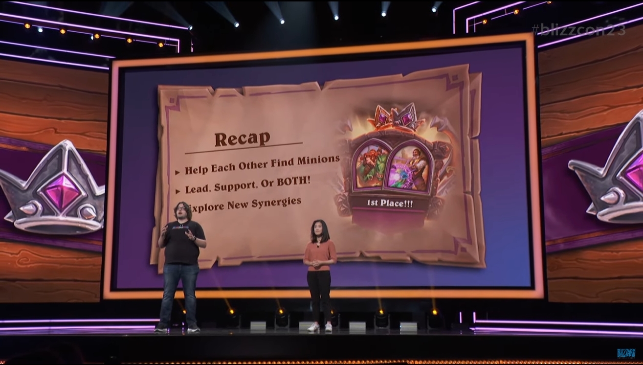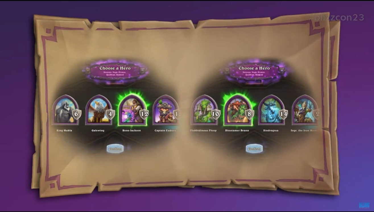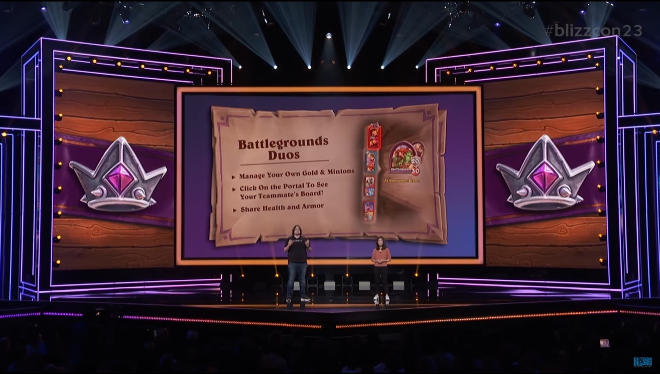 爐石戰記》未來展望」座談會中也詳細解說了「英雄戰場雙打」。除此之外,玩家還可以在 BlizzCon 搶先遊玩這個模式。