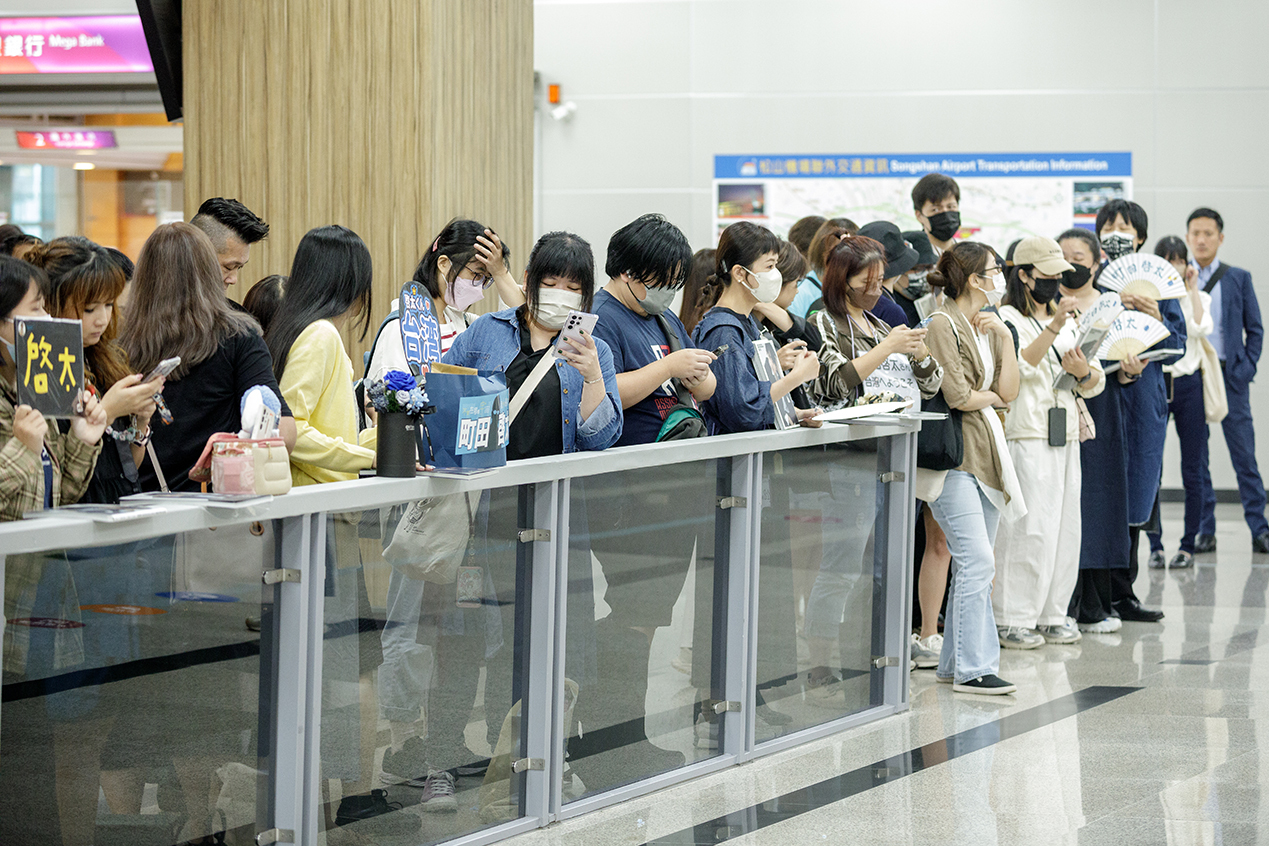 這次是町田啓太首度訪台,他在上午約 11 點左右抵搭台北松山機場,穿著一身休閒打扮,也不忘與大批在機場守候的粉絲打招呼,親和力十足。《電影版
