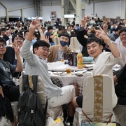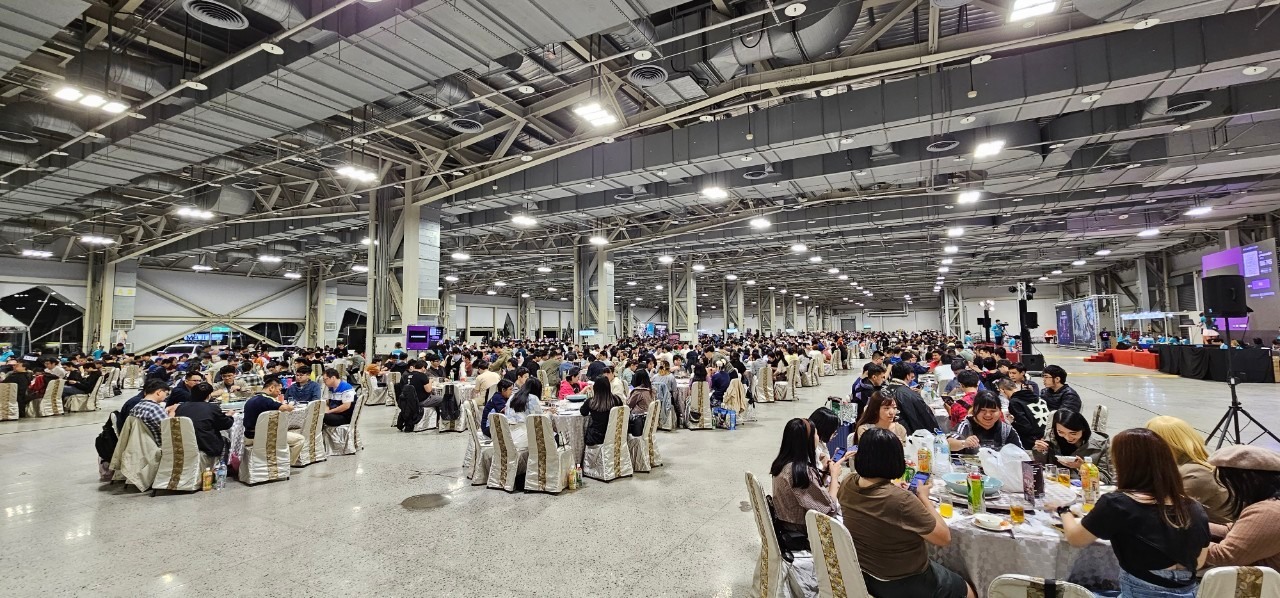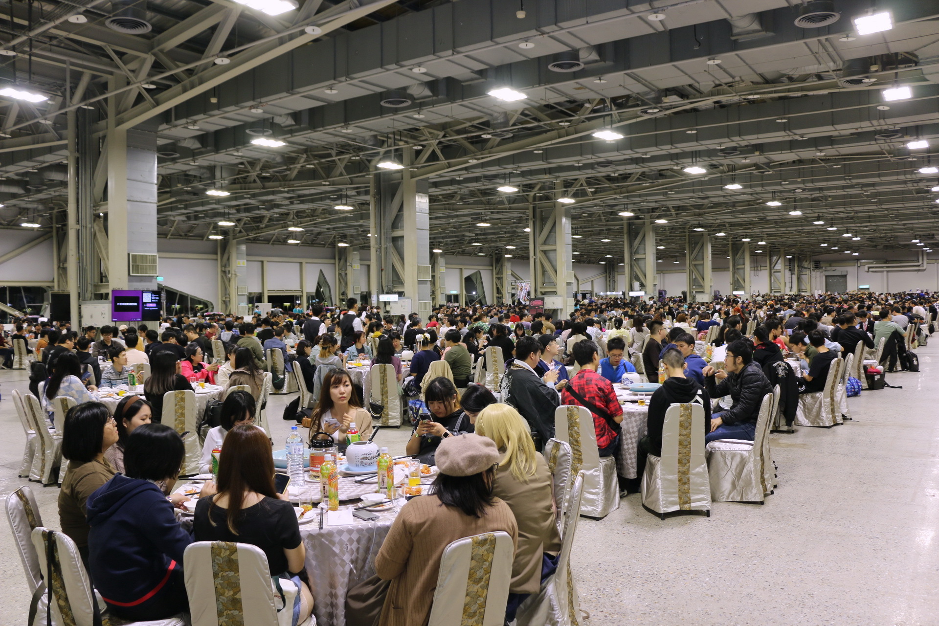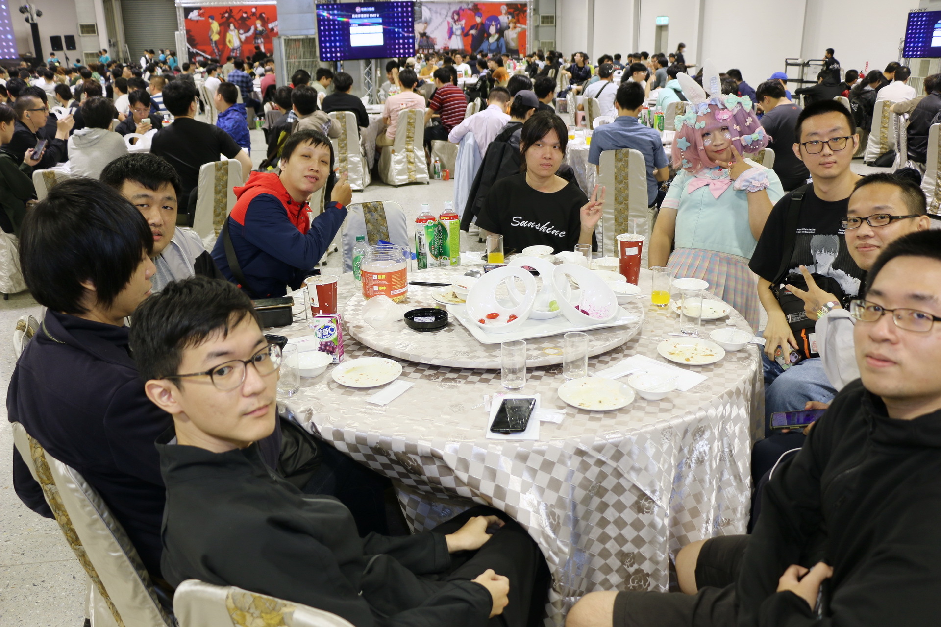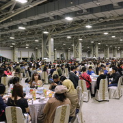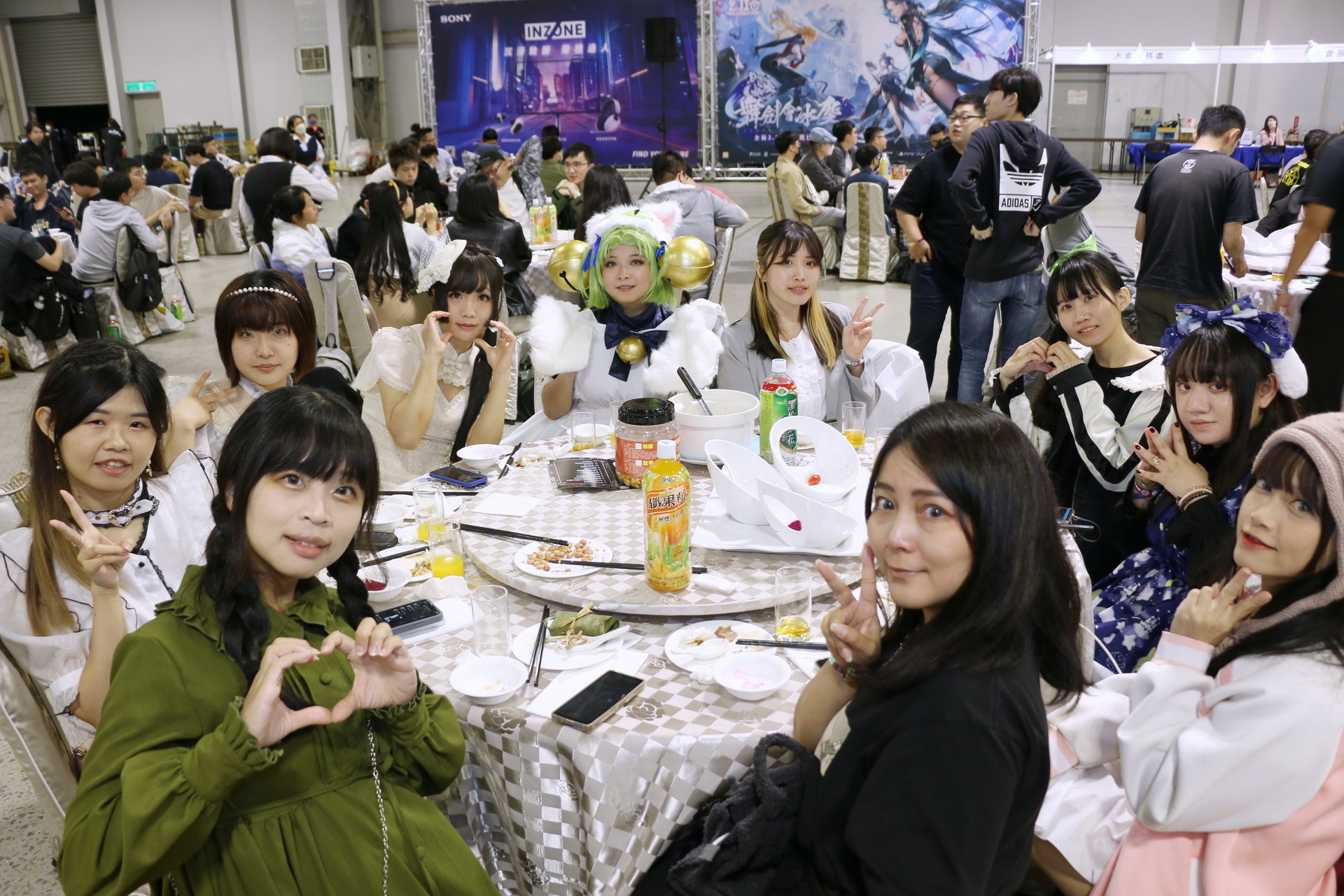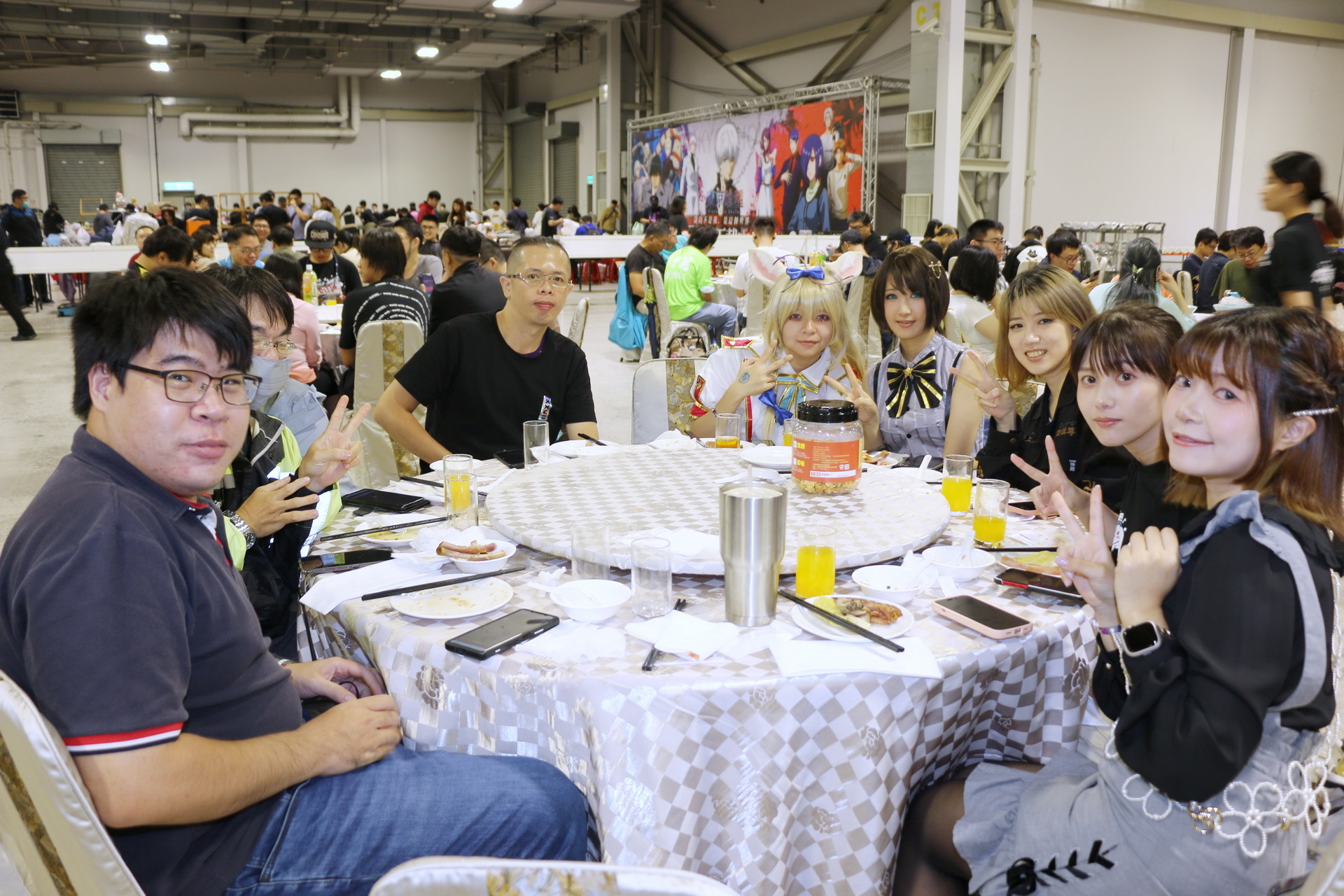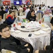 今日壓軸活動「免費大辦桌」隨後登場,1200 名玩家於下午 4、5 時依序入場就坐,等著吃這頓 ACG 的年末尾牙,並由巴哈姆特站長 sega 揭開序幕。此次大辦桌邀請到國宴級總鋪師水蛙師為會員準備豐富的菜色,菜單命名還結合了遊戲、動漫畫族群熟悉的用語,例如「從零開始的辦桌」、「為美好的辦桌獻上貓飯大集合」、「星爆氣流斬之見佛殺佛」、「冬菇珠貝不要香菜」、「仙境奇蝦傳」等,更有巴友因應本次辦桌主題 Cos 成小當家前來吃飯,炒熱現場氣氛。