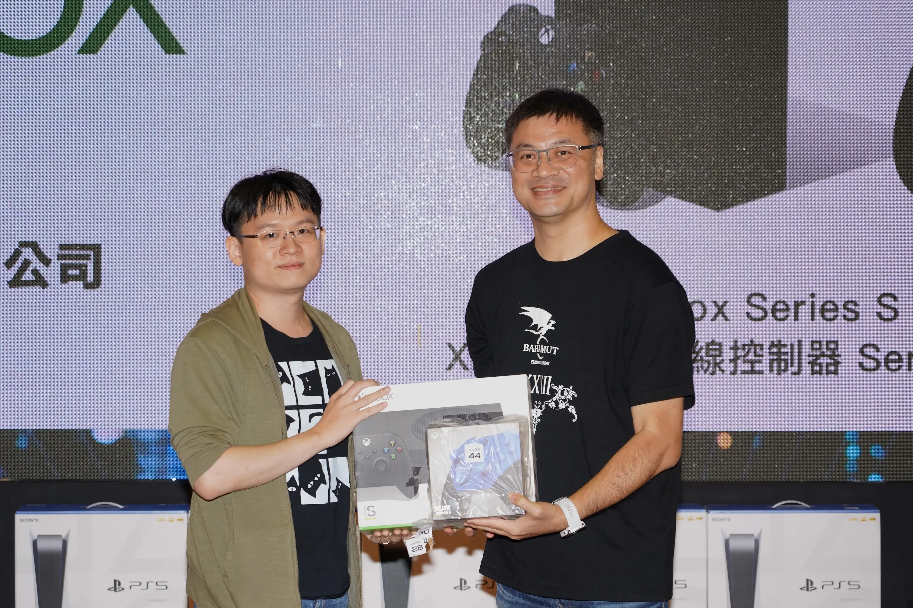每年大家最喜歡的摸彩活動今年也沒有少,現場會員憑電子票券可兌換一張舞台摸彩券,將於當天舞台摸彩時間抽出得獎者。今年獎品包含 Xbox Series S 主機、PS5 主機、顯示卡、耳機,以及明年巴哈姆特旅行團招待名額等多項獎品。今年的摸彩形式也有所變化,不是採用實體摸彩箱,而是用系統隨機抽出得獎者。