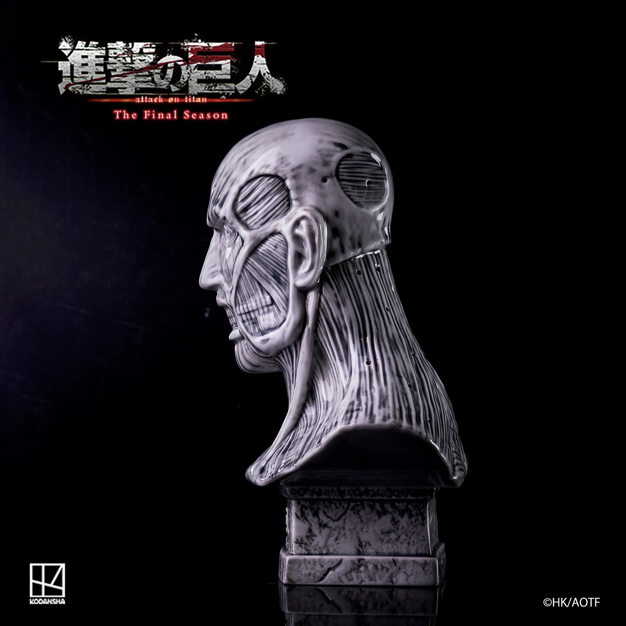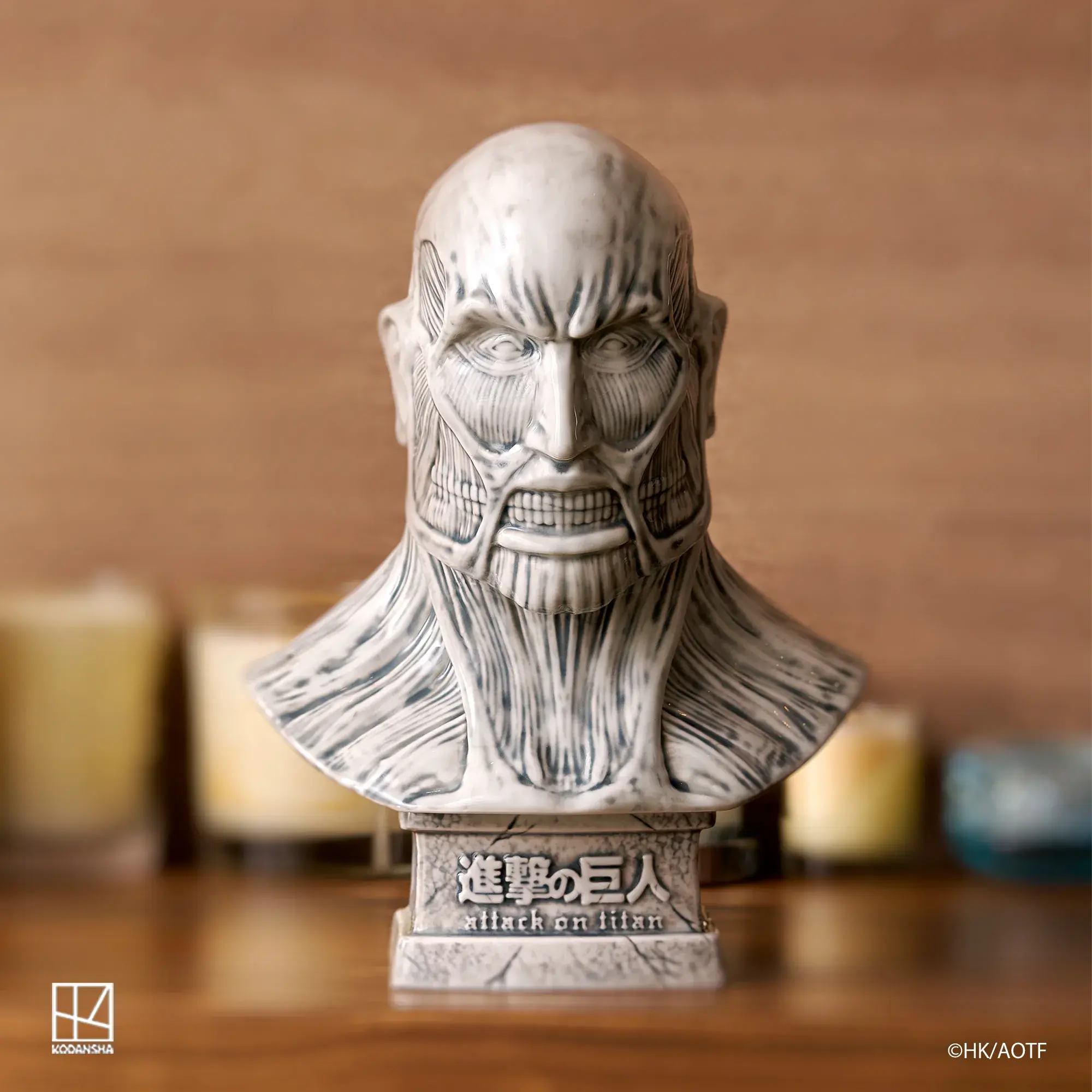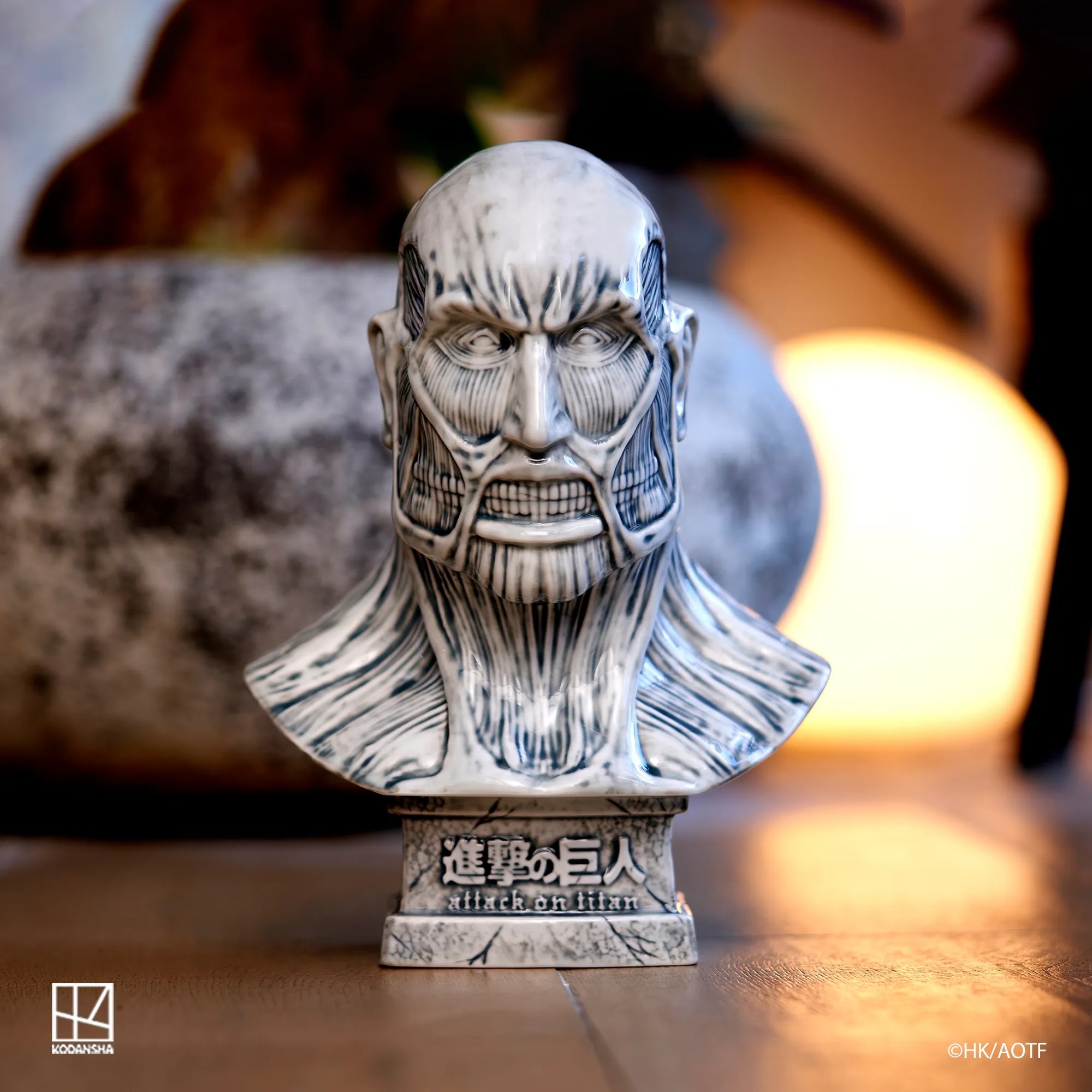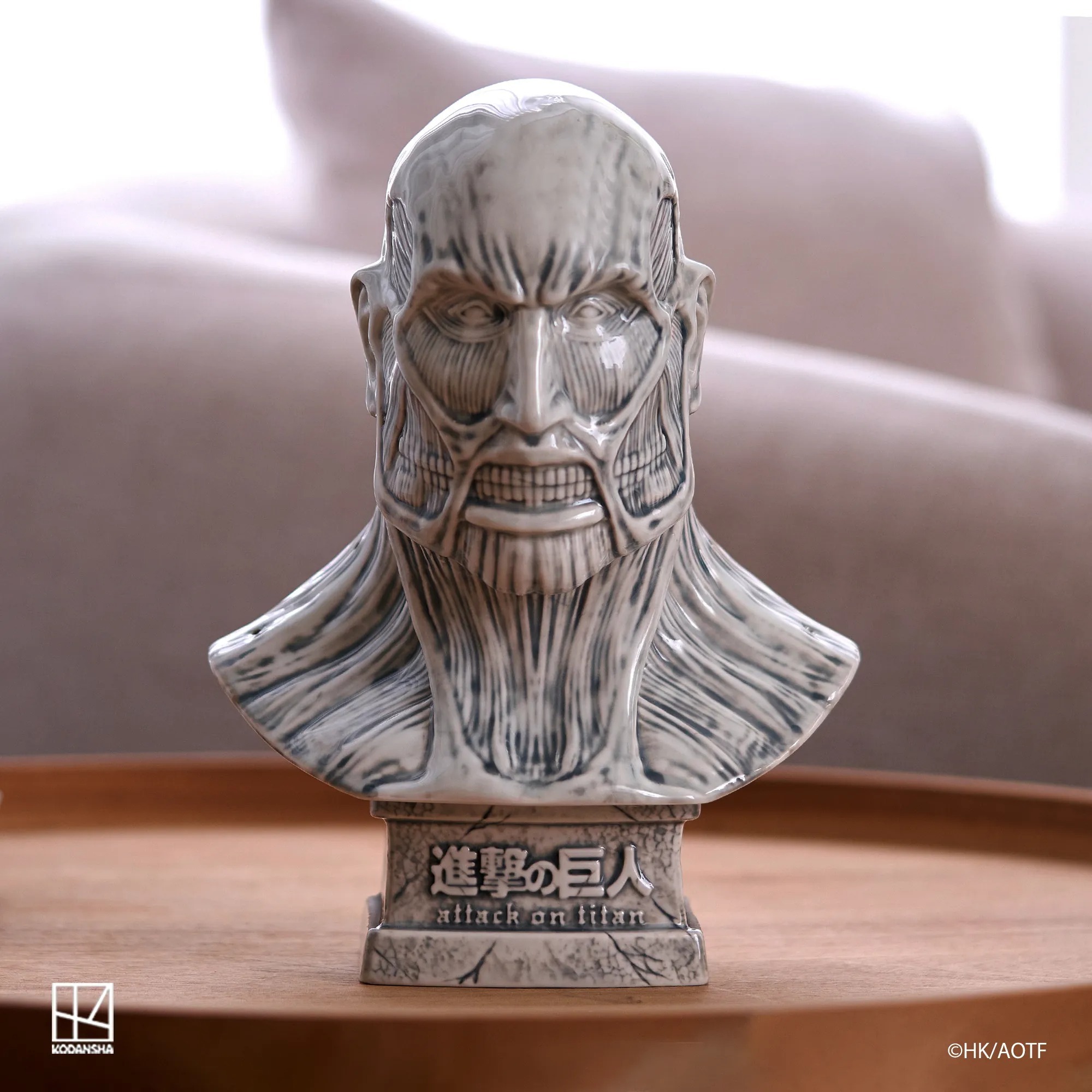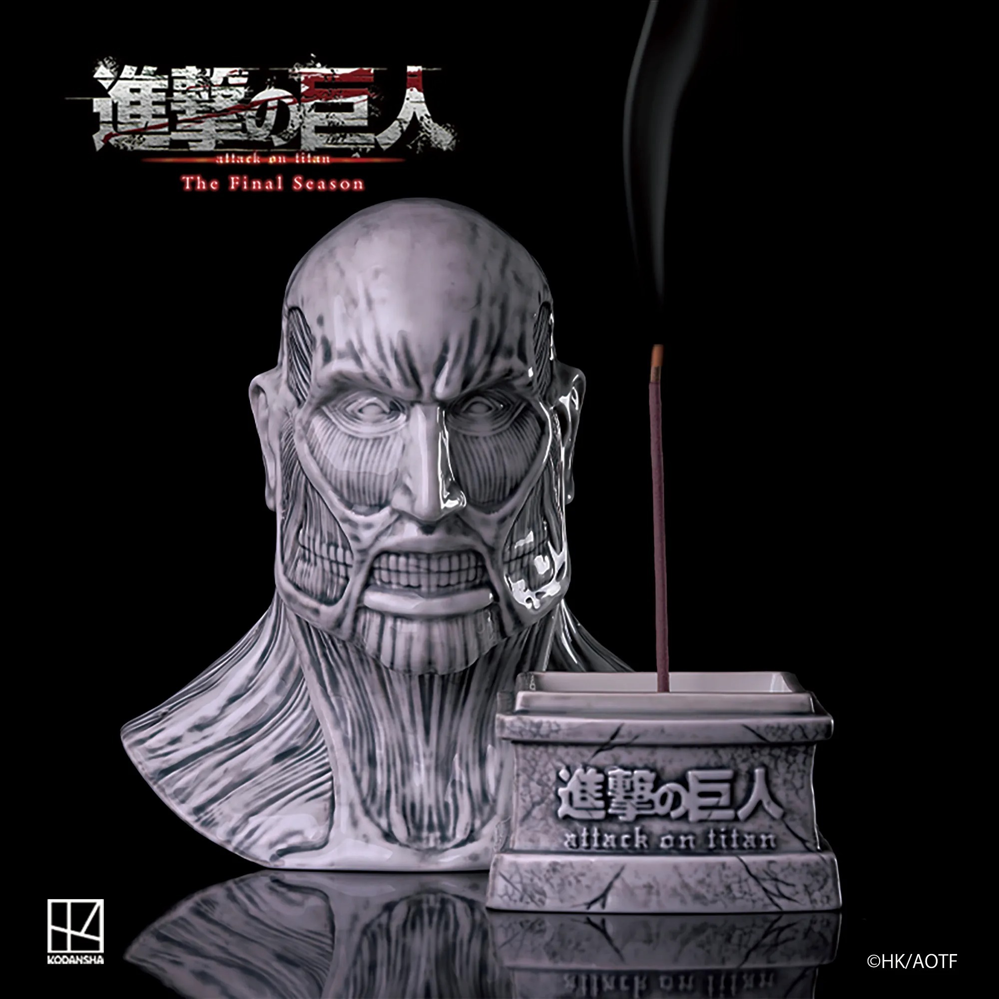 以陶瓷打造,全高25.1cm,巨人的肌肉線條完美刻劃,且於線香座使用時,裊裊升起的煙霧,再現超大型巨人出場時效果。放置於家中或辦公室皆為藝術品等級的收藏作品。
