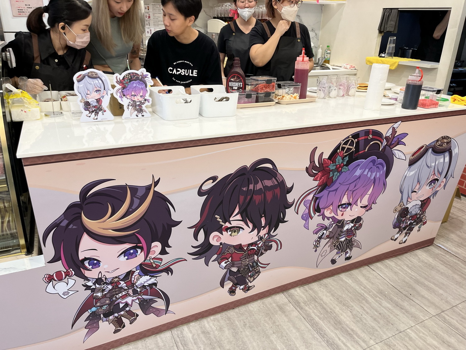 CAPSULE 也依照 Liver 個人特色打造各七款餐點及飲品,其中更有多款出自 Liver 們曾在社群分享過的獨門食譜而研發製成的吸睛品項,並運用富有創意的命名方式,推出包含 Vox Akuma 的「惡魔食譜專屬火辣螺旋拌麵」、Shu Yamino 的「Nijicancook 炒飯」和 Fulgur Ovid 的「Come in, do you eat me?」等多款結合 Liver 口味喜好及特色的選項。此外,本次更特別推出限量販售「你推的糖果罐」,以西班牙手工糖果製成的 7 位 Liver 的圖案,每一顆糖都是獨一無二。到場粉絲只要購買以上任一餐點或飲品,即可獲得隨機發送的限量杯墊。