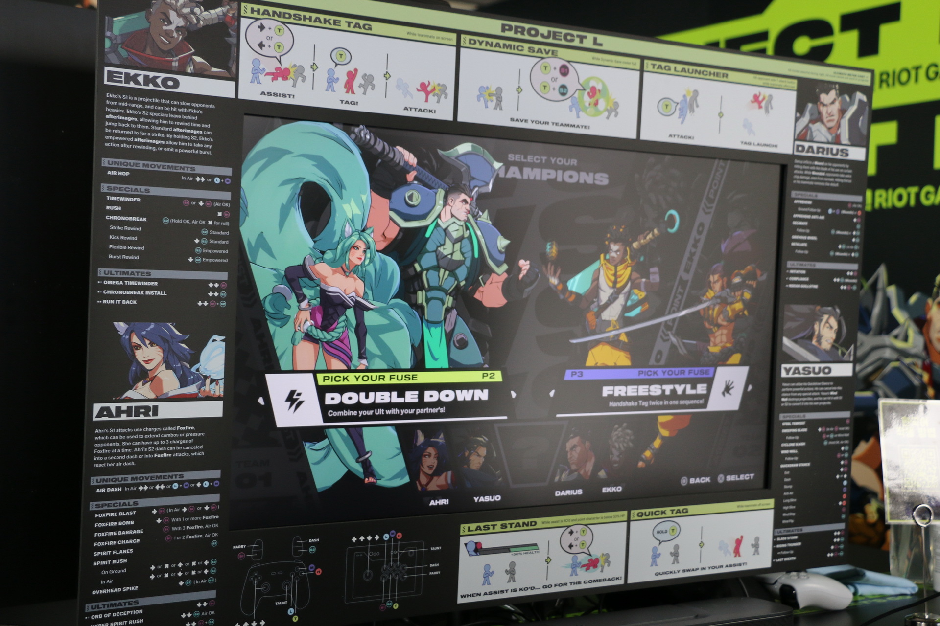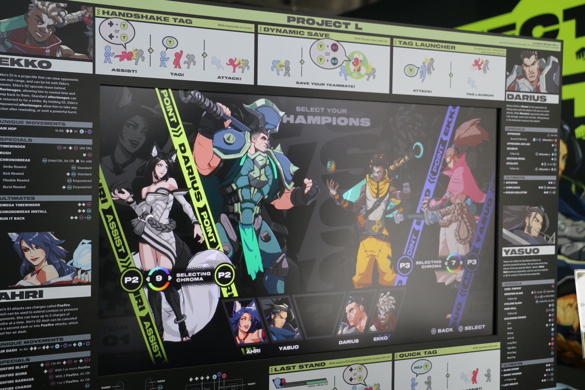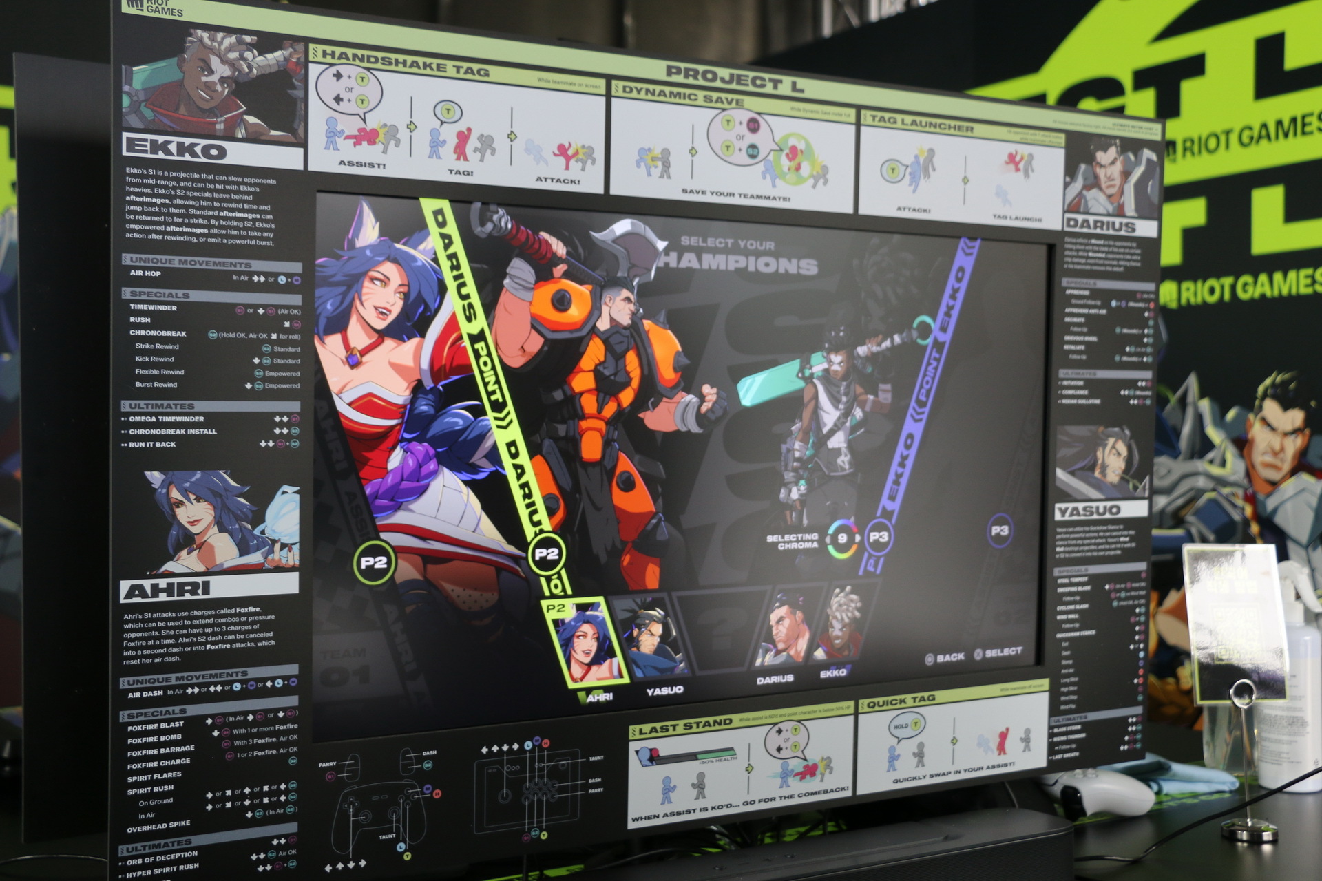 《L 計畫》於現場放了好幾組試玩,可四名玩家一起體驗 2V2 內容。本次現場開放阿璃、艾克、達瑞斯、犽宿四名英雄,他們各自擁有不同的戰鬥風格,阿璃屬於快節奏的角色、達瑞斯重攻擊、艾克很難纏、犽宿則有反擊優勢,玩家可以根據喜好和戰鬥風格搭配。每個英雄設計了多種外觀顏色,像是讓達瑞斯換上粉色服裝,同隊的玩家可以選擇相同色系以作為辨識。