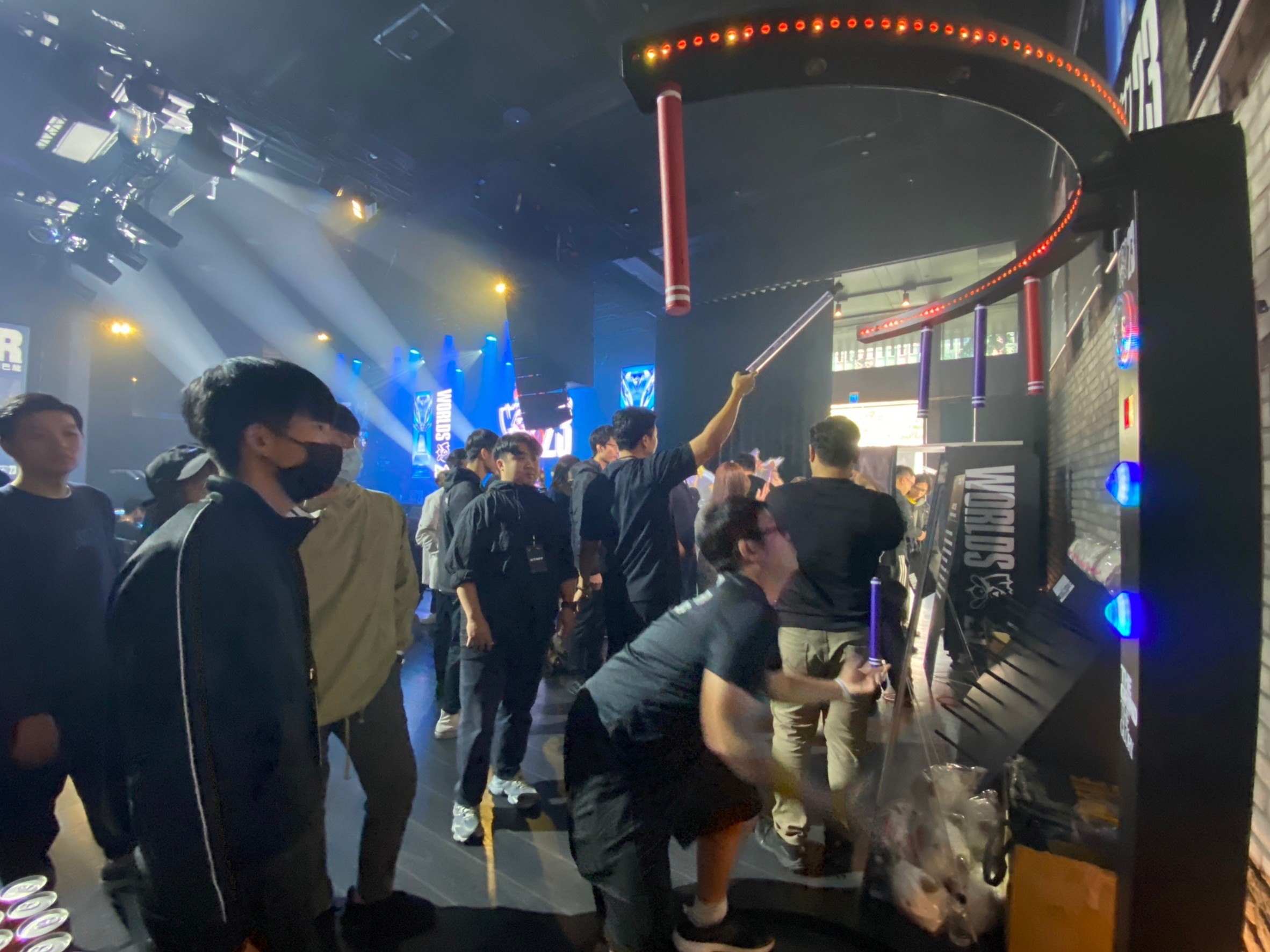 另外,為了讓玩家能在台灣一同欣賞《英雄聯盟》2023 世界大賽總決賽,官方今(19)日分別在台北 CORNER MAX、台中文心秀泰影城、高雄夢時代秀泰影城舉辦總決賽觀賽派對,現場分別邀請玩家熟悉的實況主、賽評與前職業選手等到場,例如台北場由 ZOD 擔任主持人,同時舉辦各式活動。以下為台北場的現場情況。