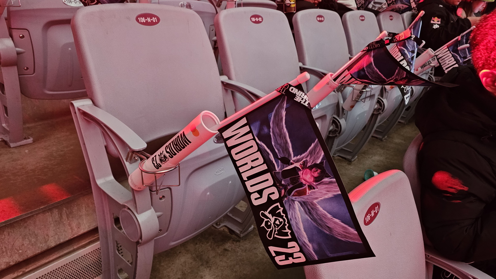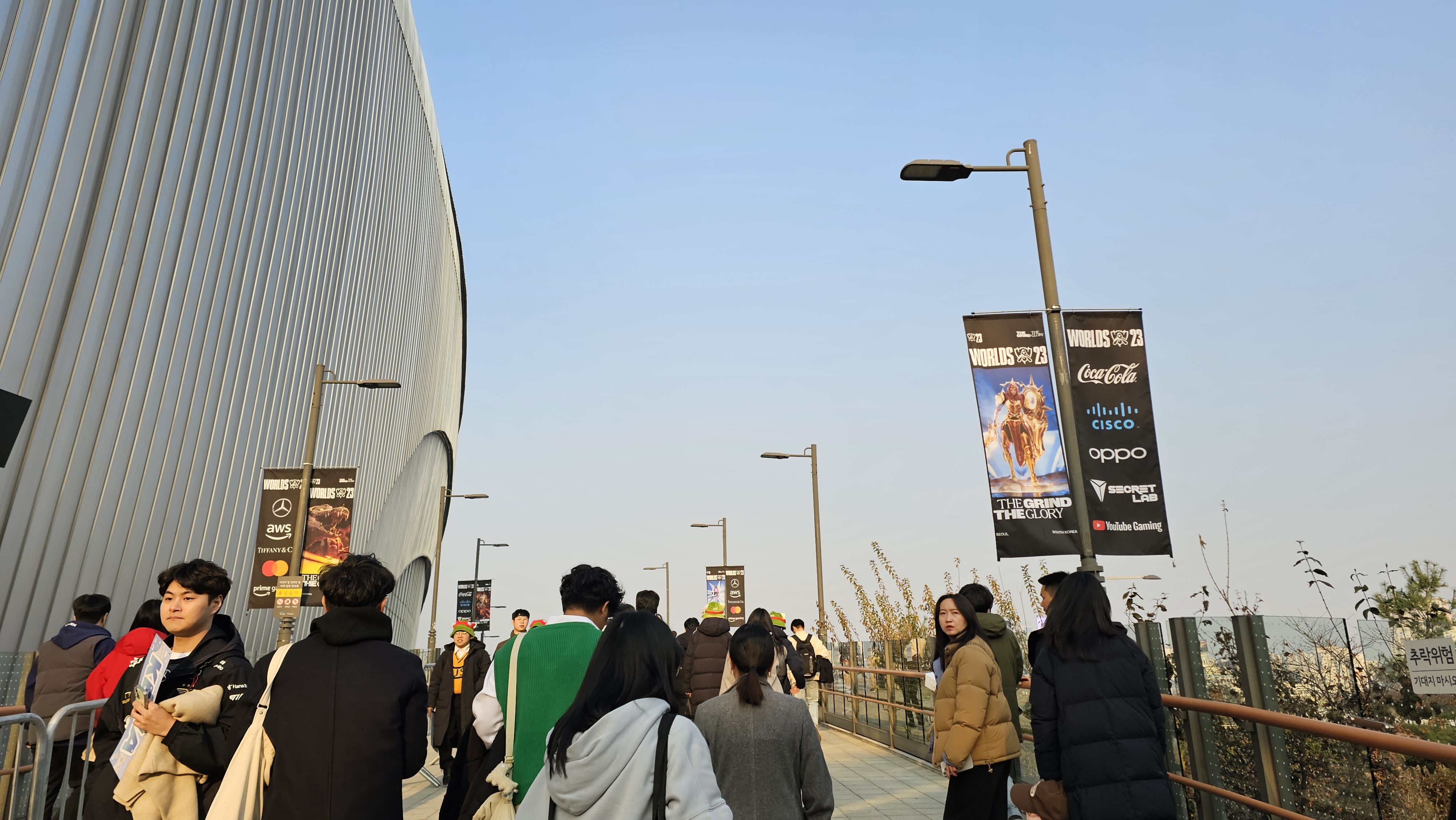 英雄聯盟》2023 世界大賽總決賽即將於稍後在韓國首爾高尺天空巨蛋登場,由 LCK 隊伍 T1 與 LPL 戰隊 WBG 兩支隊伍展開最終五戰三勝的決戰,爭奪本屆冠軍寶座。現場集結眾多粉絲到場觀賽,帶著各種應援物品為自己喜愛的選手、隊伍加油打氣。