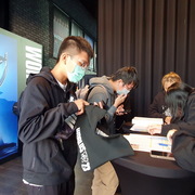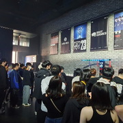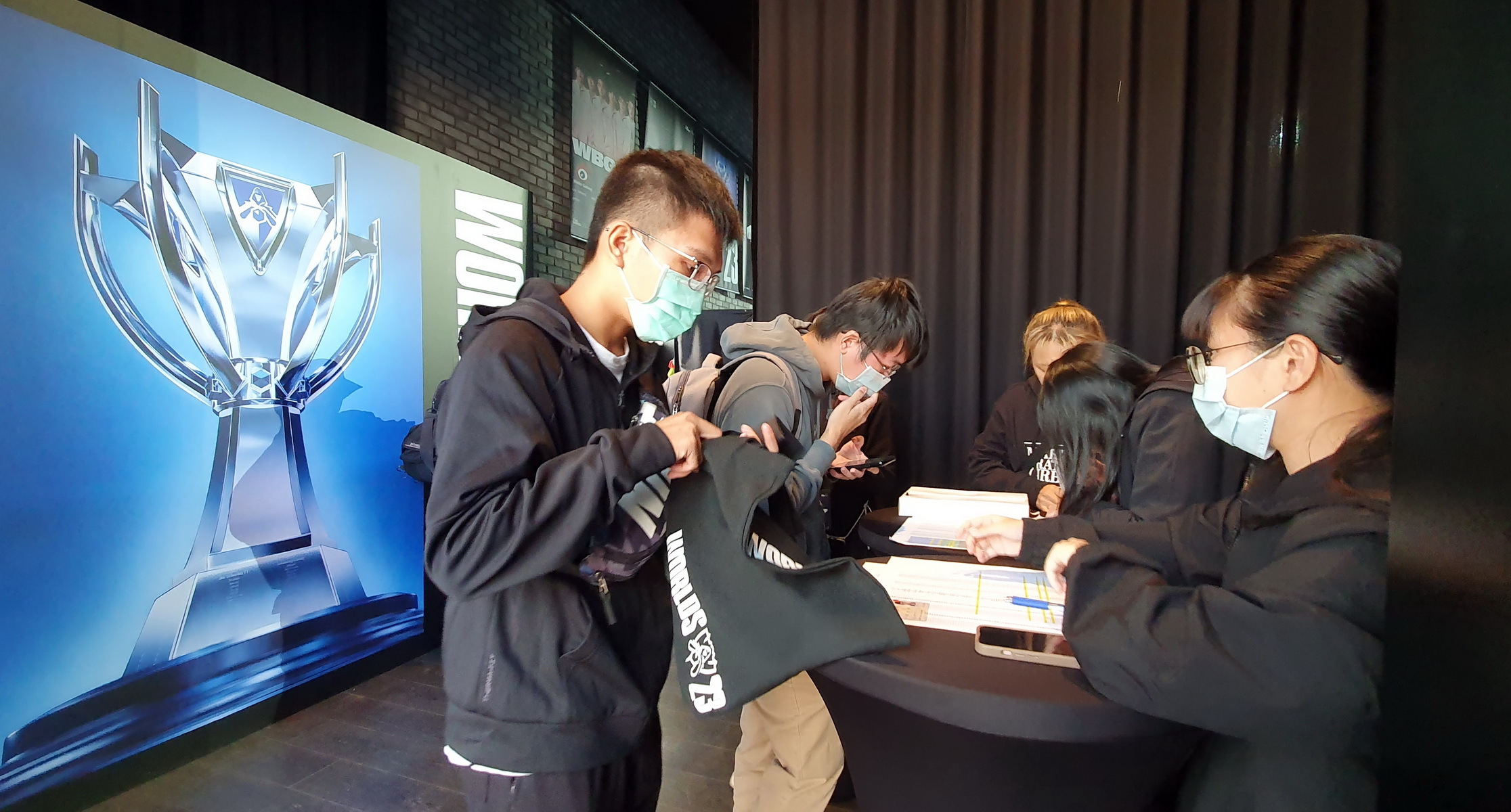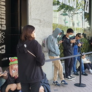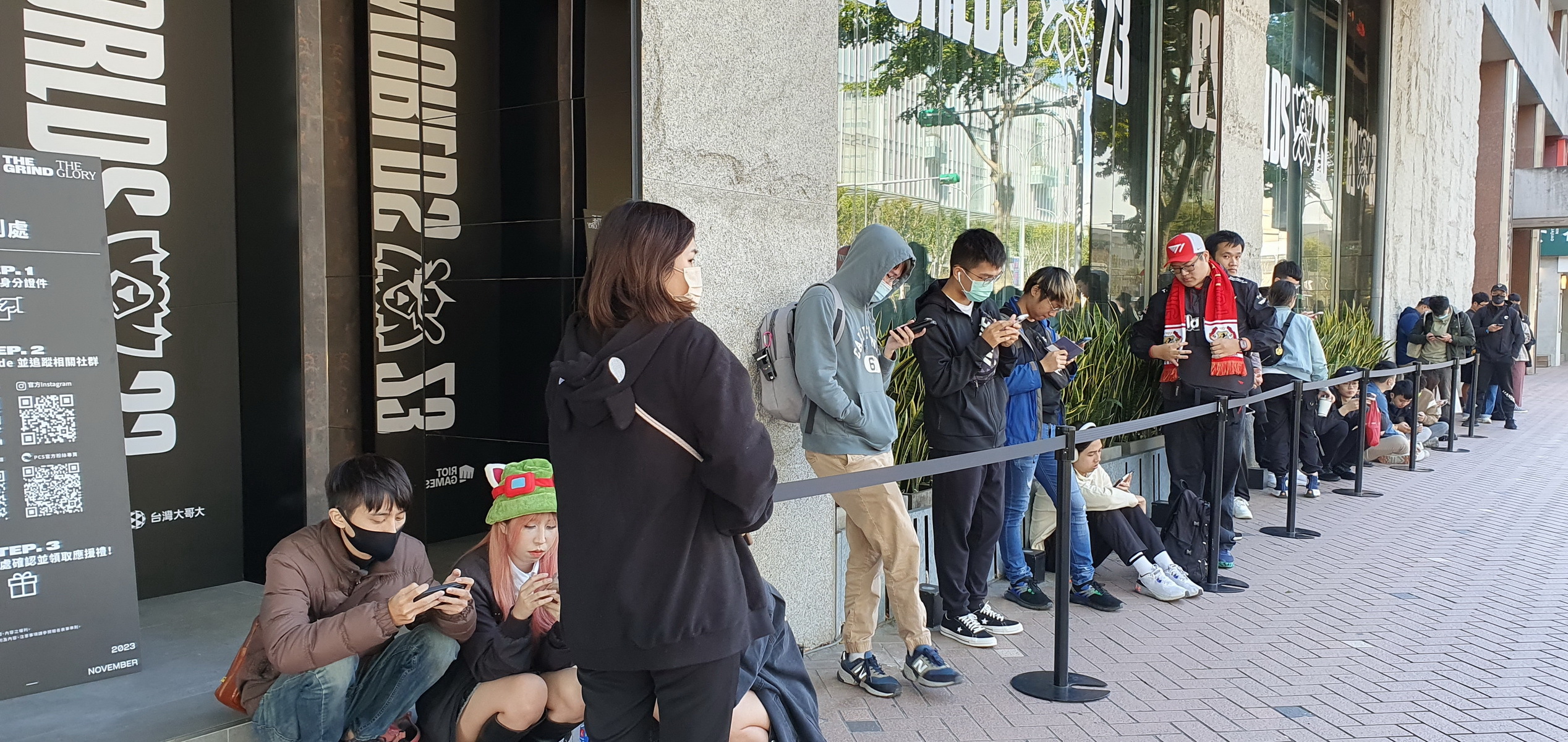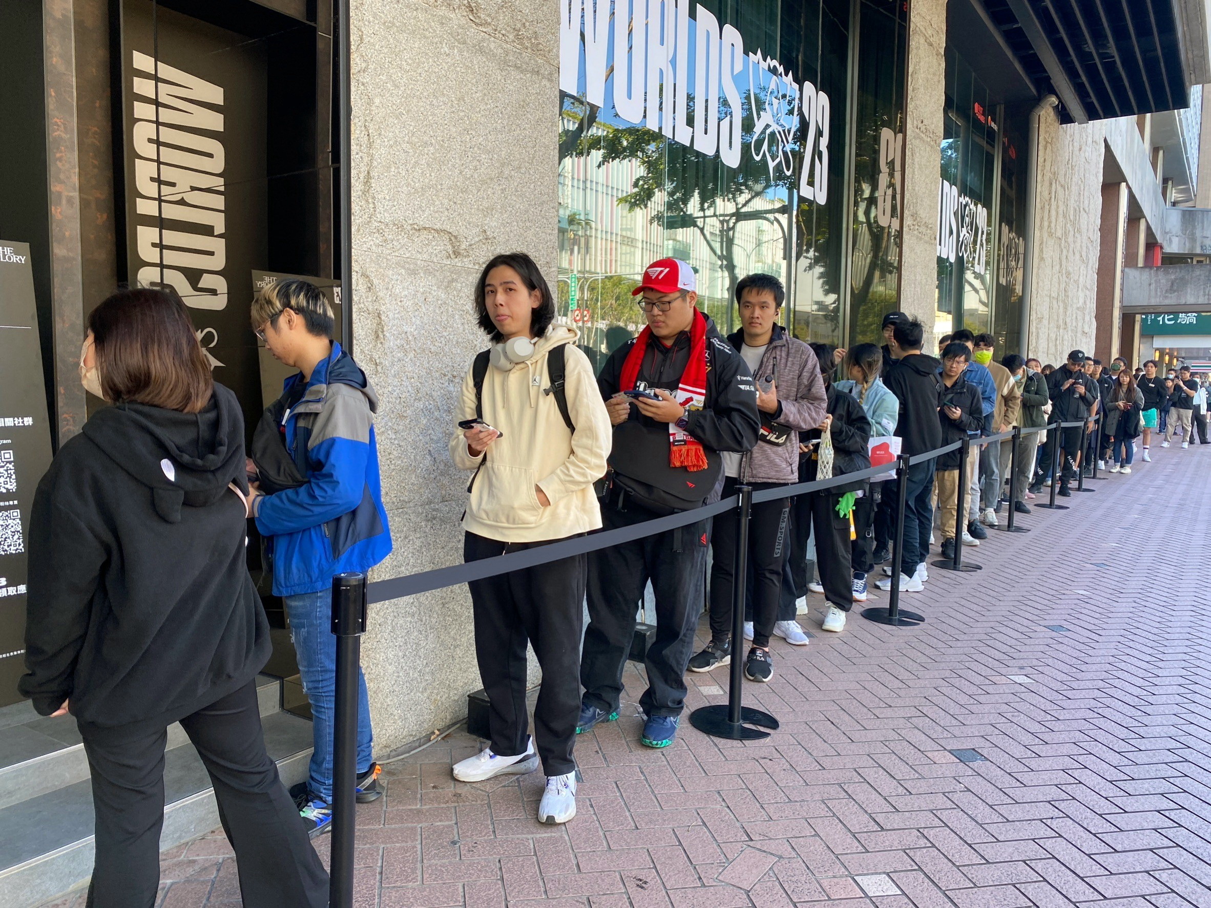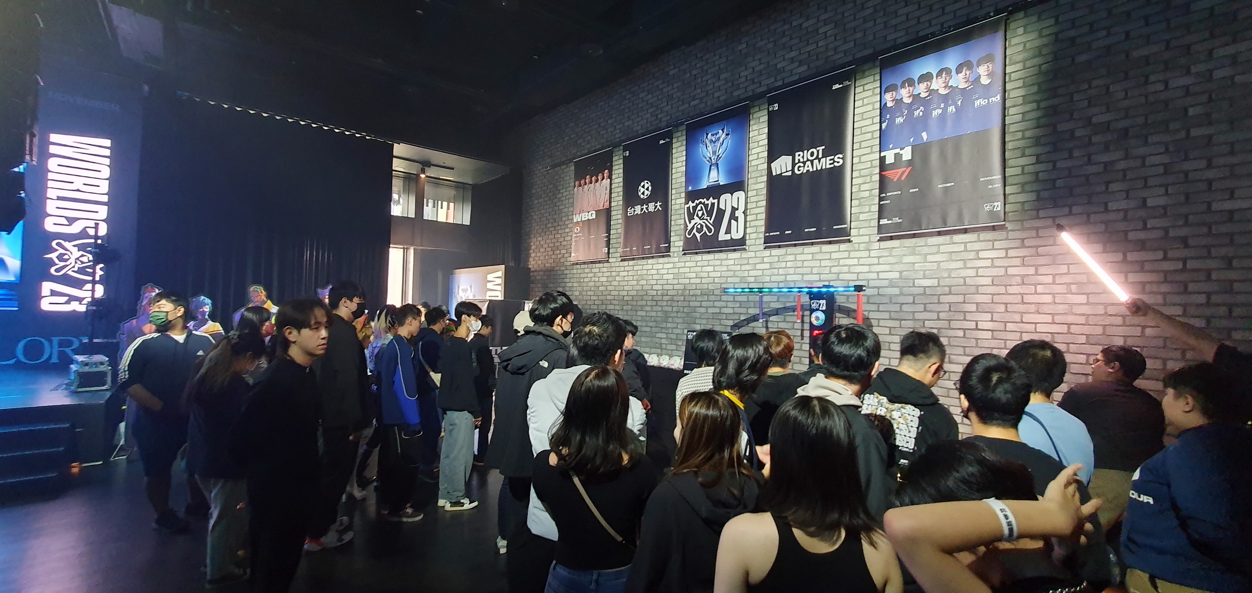 台北場觀賽派對在 CORNER MAX 舉行,在下午開放入場前,就已經有相當多抽到觀賽資格的玩家到場排隊,許多玩家身穿 T1 的戰袍,或配戴《