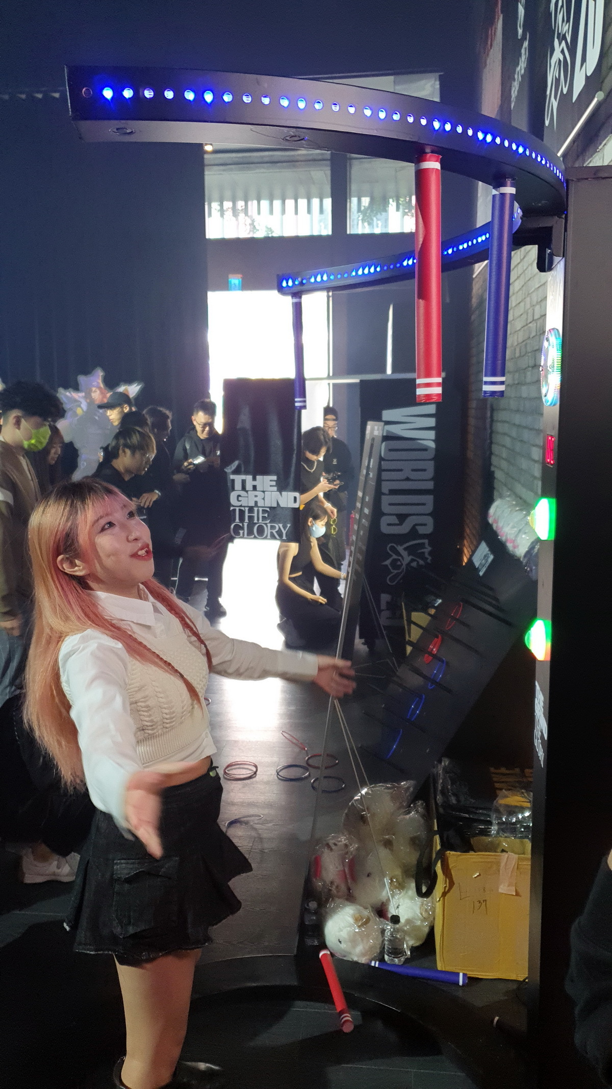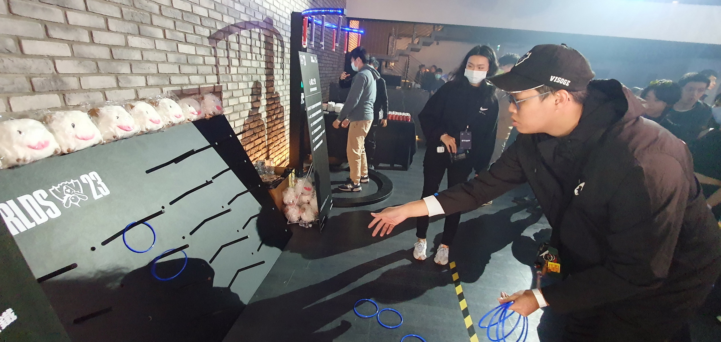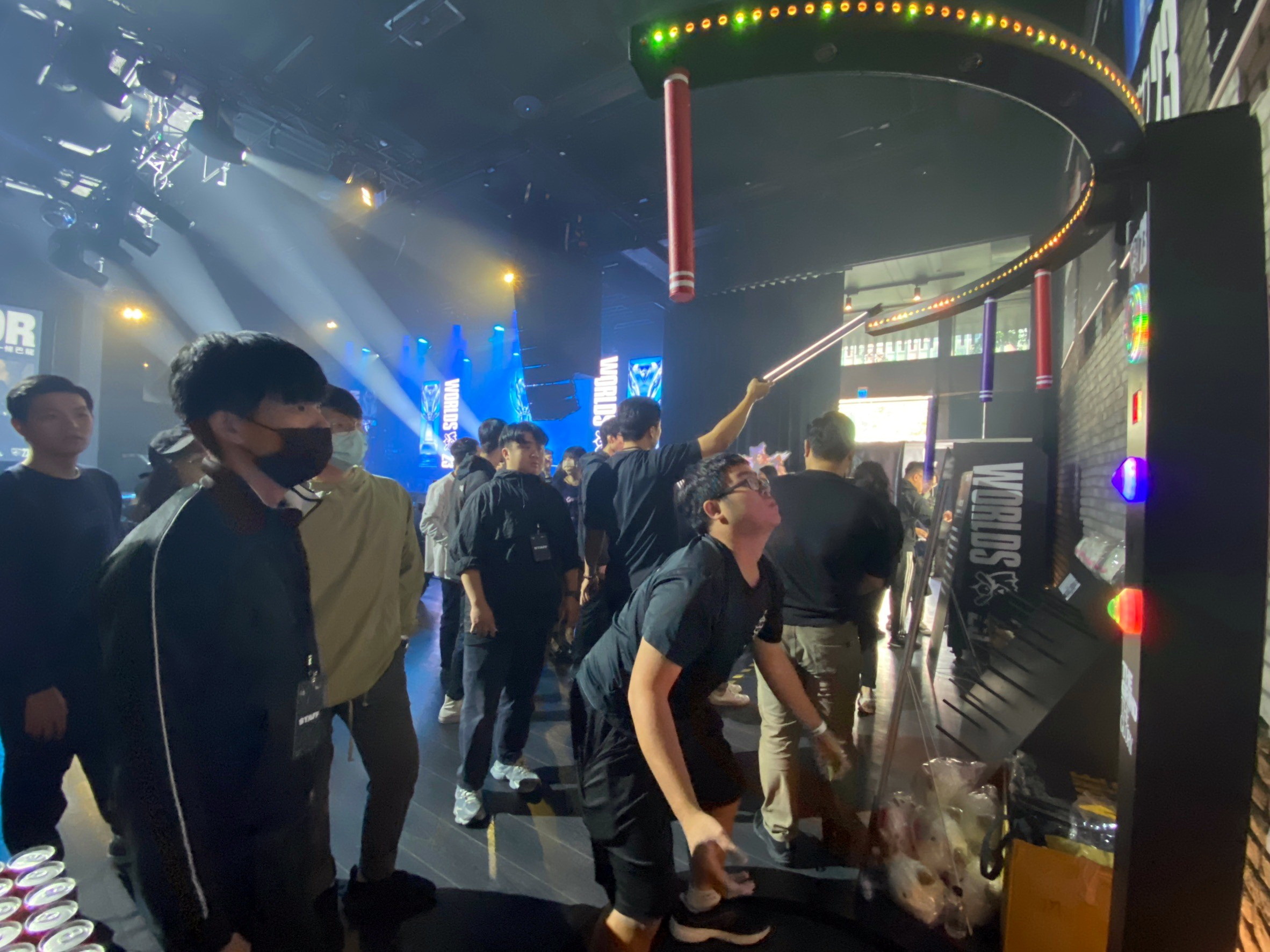 台北場觀賽派對現場準備了多樣化的小活動,除了現場可以拍照留念外,還有考驗抓住隨機掉下棒子的「亞菲利歐敏捷挑戰」、玩套圈圈的「伊澤瑞爾音準挑戰」等,吸引眾多玩家排隊參與,現場氣氛相當熱烈。