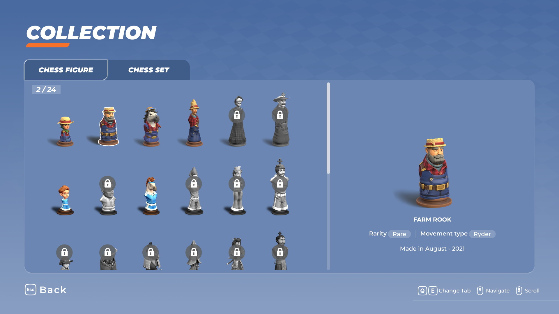 街頭足球篇、風華浪人篇、背水一戰、騎士至上、小兵狂歡和足球象棋。每個篇章都將有不同的目標和體驗,例如在屠龍者篇章中,你需要把你的小兵推到道路的盡頭,才能殺死強大的巨龍,但每當小兵移動時,巨龍都會攻擊整個棋盤,未受保護的棋子都會死亡,所以你需要利用車,主教和騎士)的幫助來保護你的小兵;而在「浪人女士的篇章」中,你將扮演傳說中的浪人(西洋棋女王),你需要消滅其他棋子才能接近幕府將軍並殺死它;棋子的移動方式跟西洋棋棋一樣,但它們可以像在推箱子玩法中一樣互相推動。