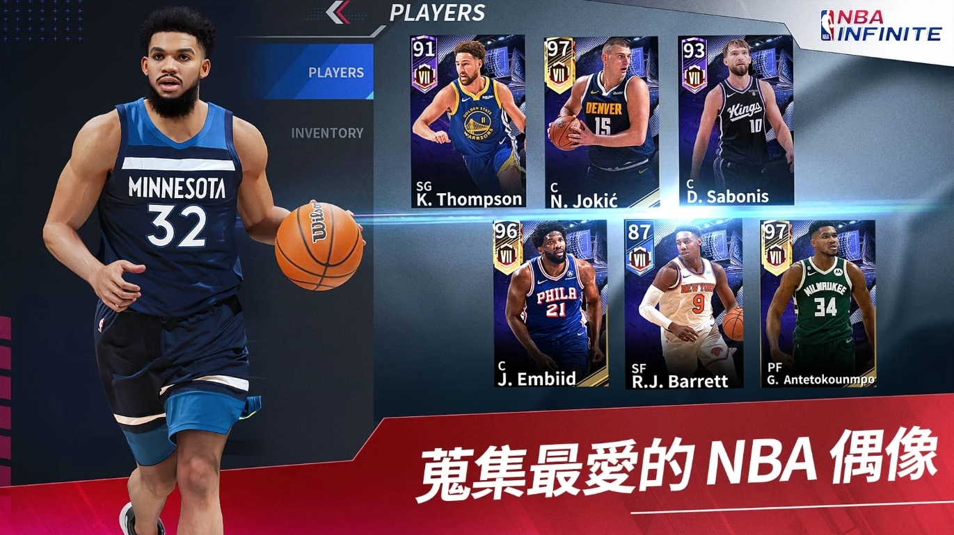 收集 NBA 明星球員:收集真實的 NBA 球員,每位都有獨特技能可以磨練。升級球員,重現阿德托昆博衝擊籃框的威力、杜蘭特的後撤步出手、崔·楊華麗的運球過人,以及柯瑞招牌的大號三分球。