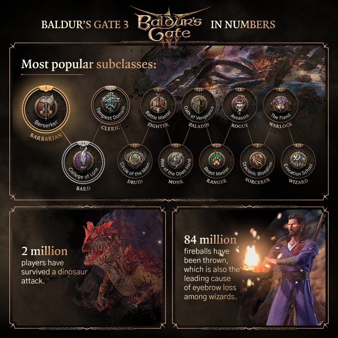 柏德之門 3(Baldur's Gate 3)》遊戲開發商 Larian Studios 今(6)日公開遊戲內趣味數據,目前已有超過 130 萬名玩家將遊戲過關。