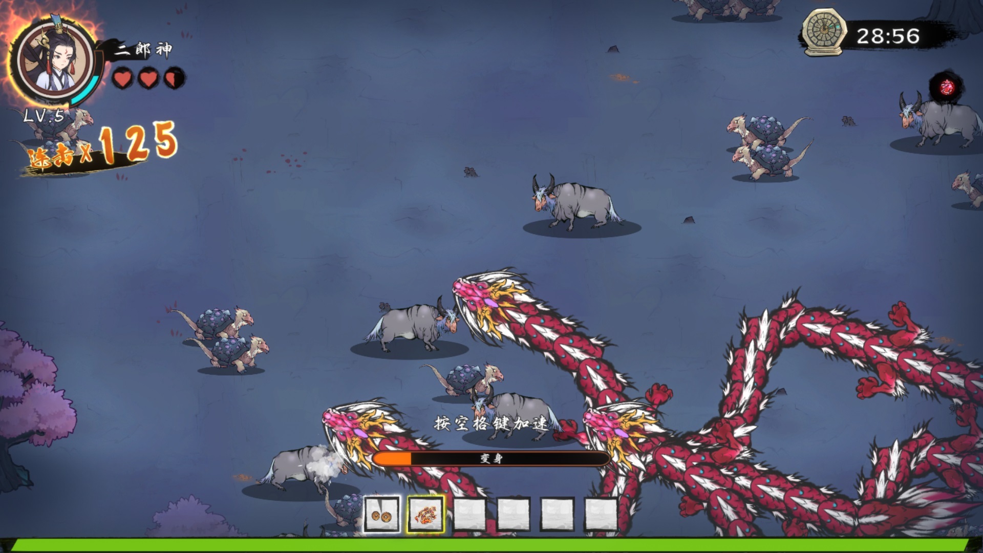 面對排山倒海襲來的妖魔鬼怪,就算是三頭六臂的孫悟空都可能難以抵擋。不過你可以獲得獨特的變身能力,如同孫悟空的七十二變,讓你變身為天庭之中的各路神佛,如「雷公電母」召喚雷電秒殺敵人、變身「龍王」如貪吃蛇一般吞噬所有敵人、甚至變身「玉帝」、「如來佛祖」來清掃妖魔。官方提醒,儘管變身威力巨大,不過也別忘了變身可是有時間限制的。除了驚人的法寶神兵之外,團隊還設計了一系列無厘頭的武器和道具,它們同樣具備著極強的威力,同時在「用法」上更加的獨特。