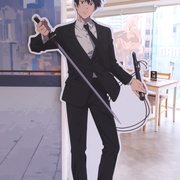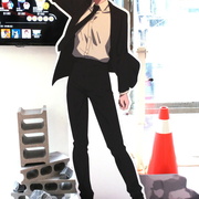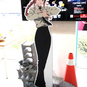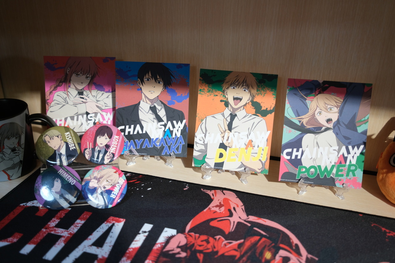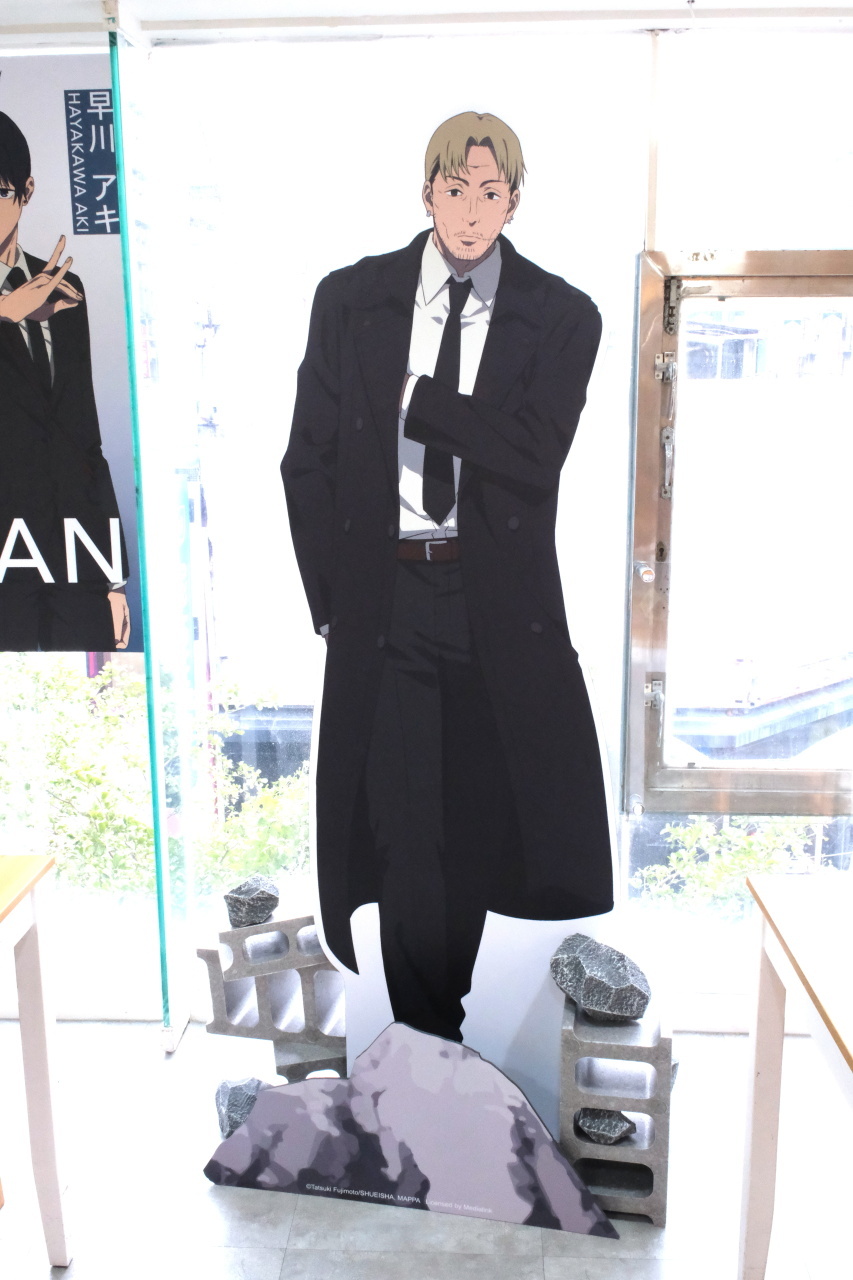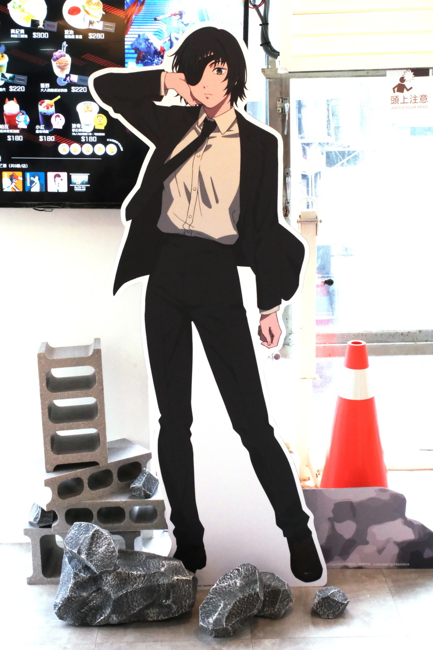 鏈鋸人》的主視覺。進到店面,左手邊有著本次主題咖啡廳的打卡區,而在店內各角落都有角色立牌,有如被公安對魔特異 4 課成員團團包圍保護著一般。