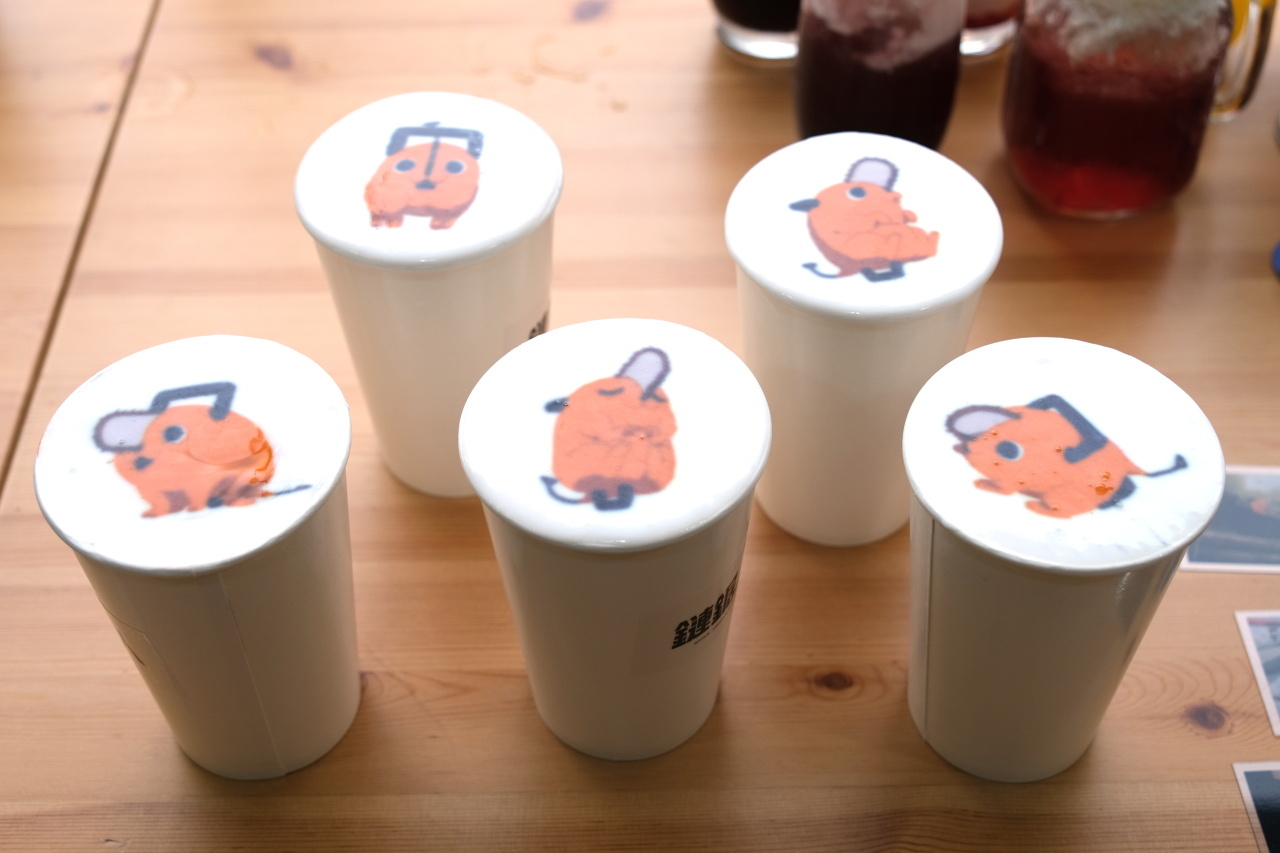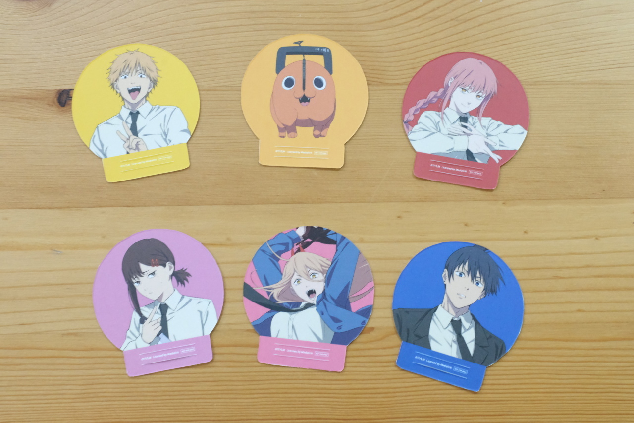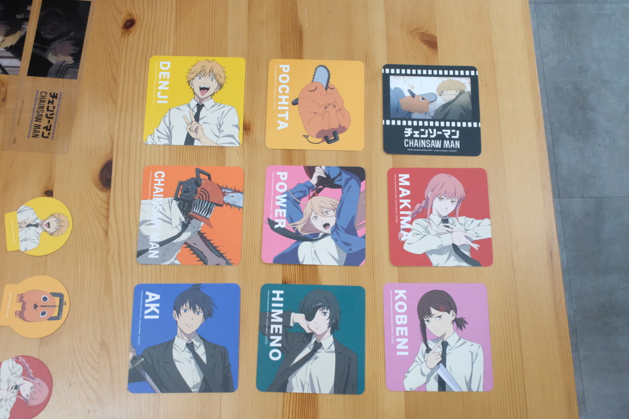 鏈鋸人》角色杯墊乙張(共 9 款隨機發送,恕不挑款),台北西門店及台中逢甲店為不同款式,總共 18 款不同設計杯墊。