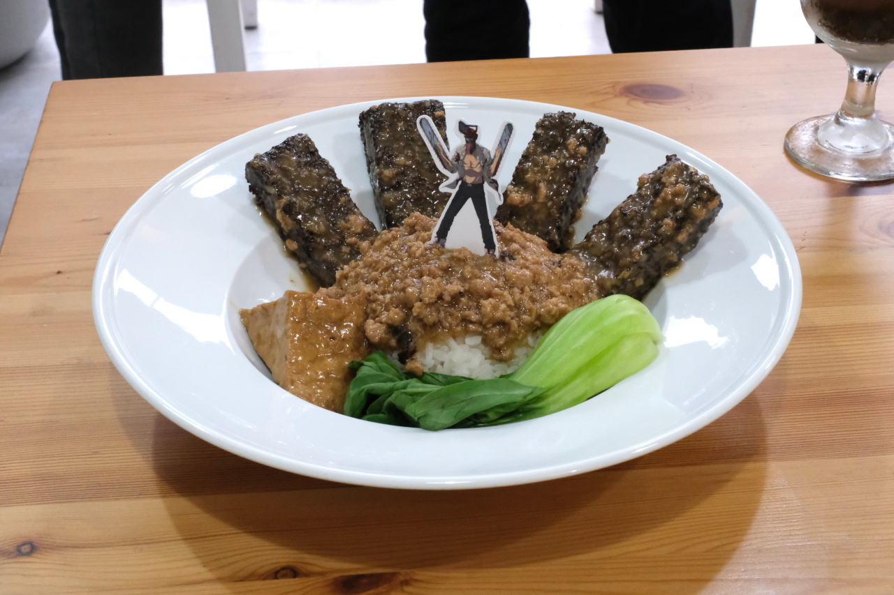 鏈鋸人 戰鬥丼飯」,以台灣的特色美食滷肉飯及豬血糕設計成