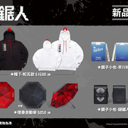 鏈鋸人頭框的銅片馬克杯、紅黑強烈風格的毯子、滑鼠墊和