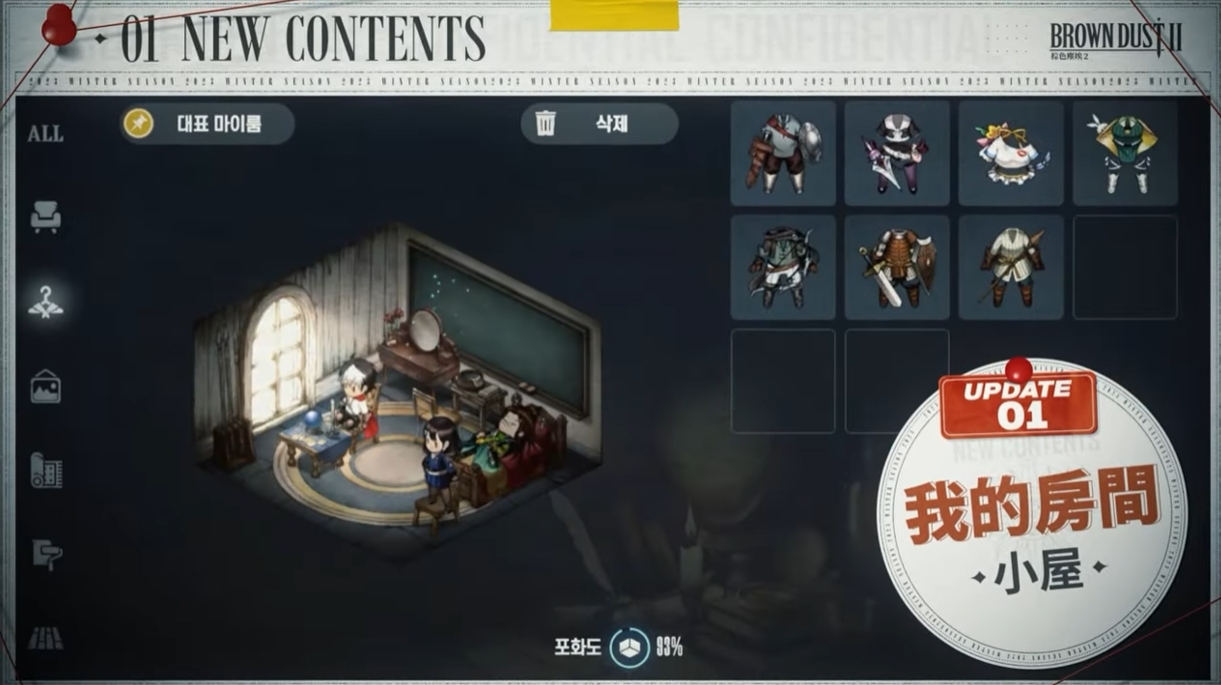 此外,還新推出了可以根據玩家各自喜好裝飾秘密基地的「我的小屋」內容。另外,可以一次使用所有服裝的 PVE 內容「末日之書」也將於明年 1 月 4 日更新。特別卡帶「夢靨冬季」將採用韓文和日文全配音,故事卡帶 4-10 將依次套用韓文和日文全配音。