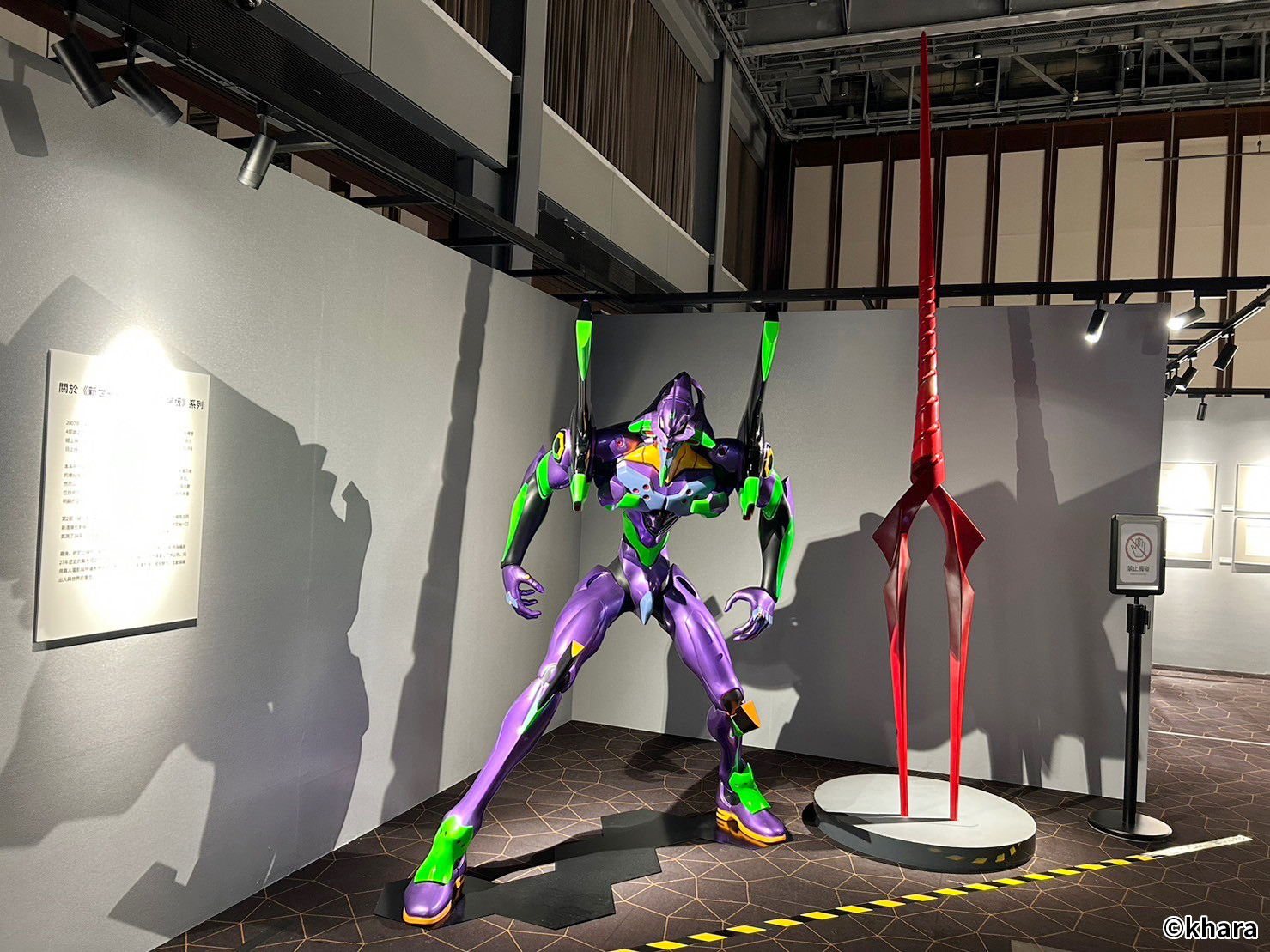 新世紀福音戰士》宏大世界觀的獨特魅力。展出內容包含 1:1「綾波零」等身大模型、初號機與長達 3 米的朗基努斯之槍模型、畫師手工繪製新劇場版的複製原畫等。