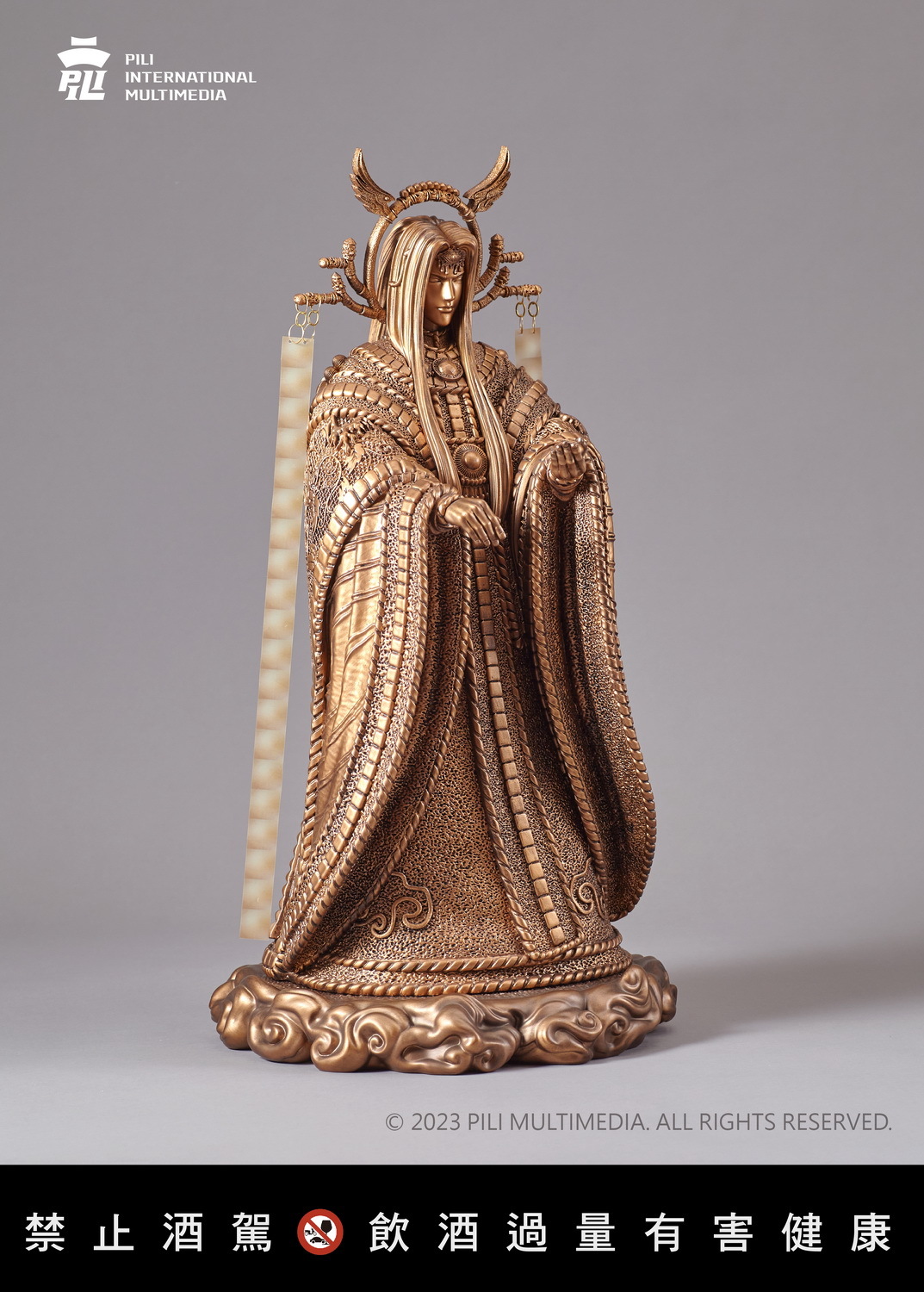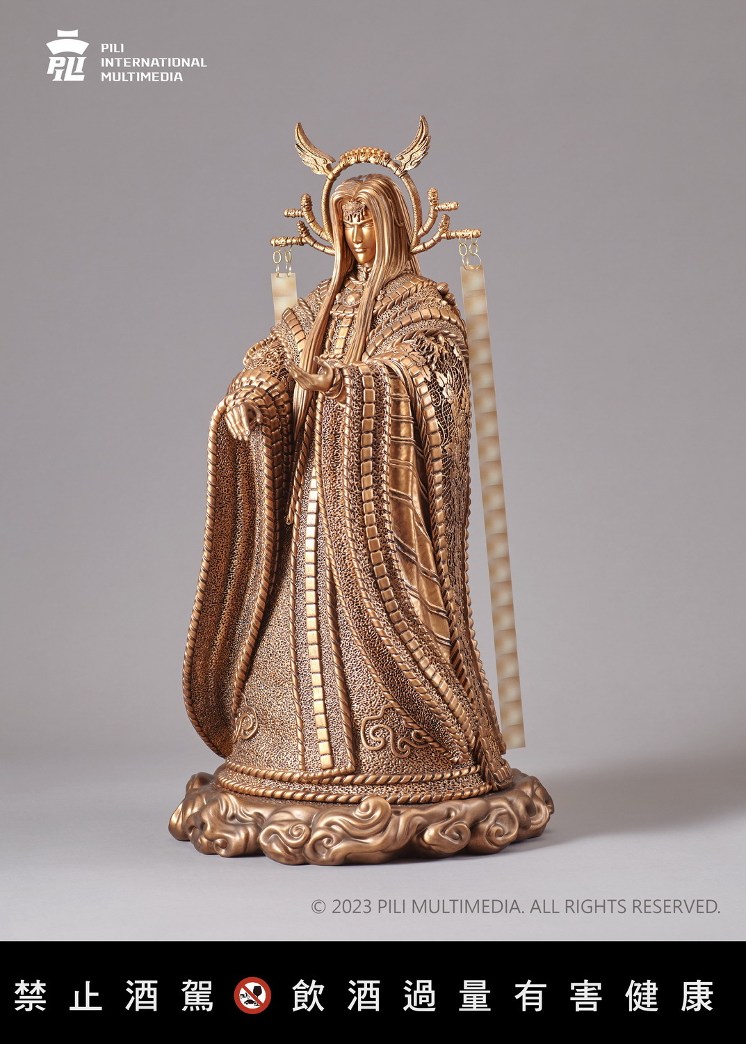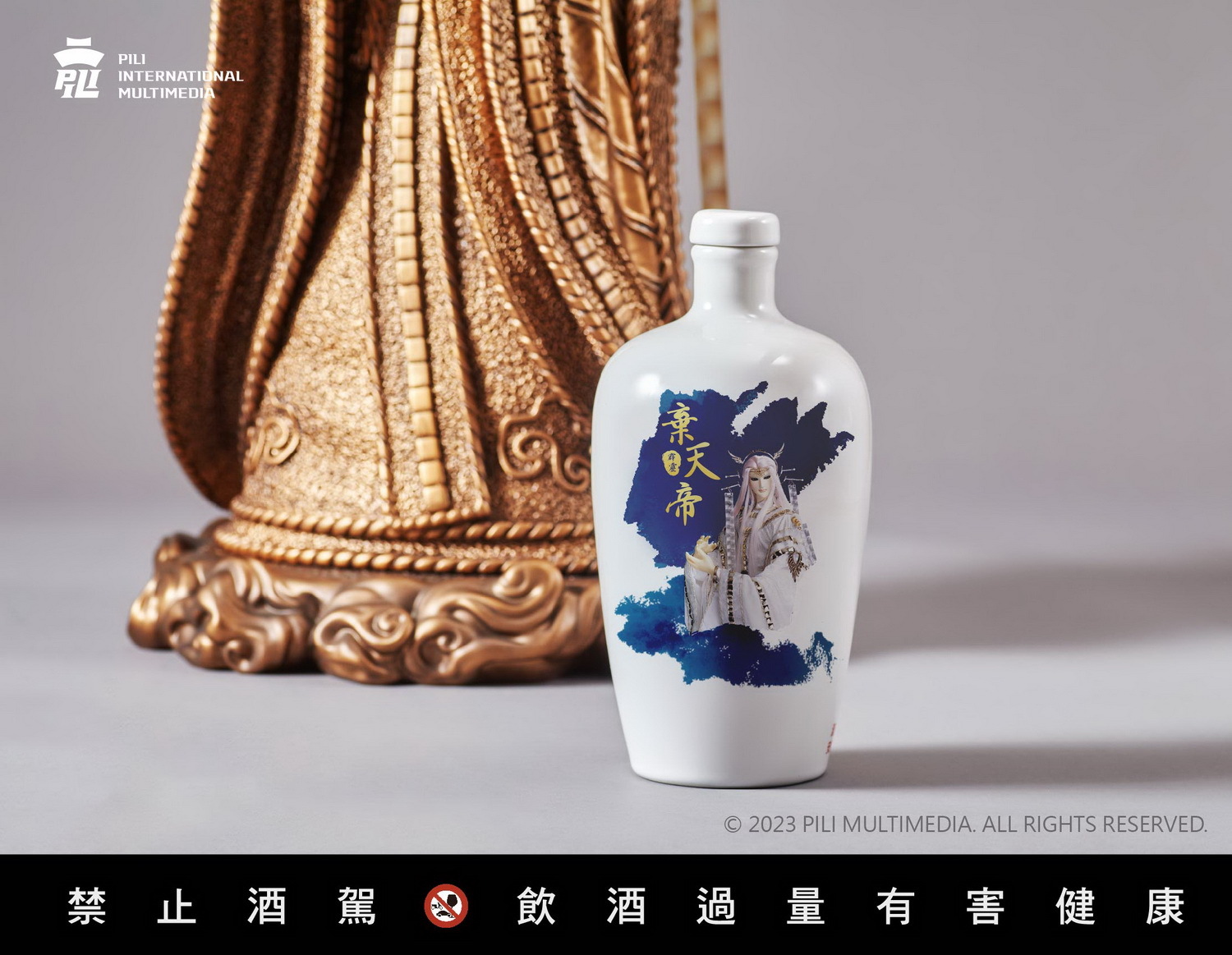 本次商品延續古銅色金屬質感,以近 60 公分高度的王者降臨之姿登場;精雕細琢白棄天帝角色神韻,強調輪廓及細節。在紀念酒部分,選用金門皇家 56° 甕藏五年陳高,高品質的陳釀交融,展現台灣高粱酒的獨特清香。