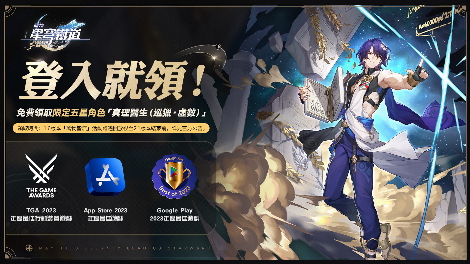 1.6 版本「萬物皆流」活動躍遷開放後至 2.1 版本結束前,開拓者在完成開拓任務「湛藍星」-「宇宙安寧片刻」解鎖【郵件】功能後,即可在郵件中領取「真理醫生(巡獵・虛數)」×1。
