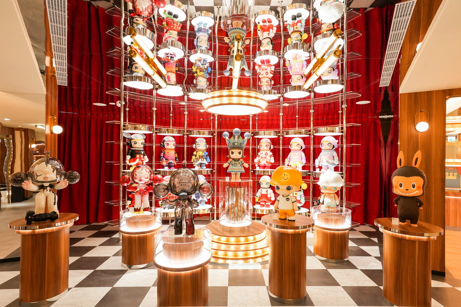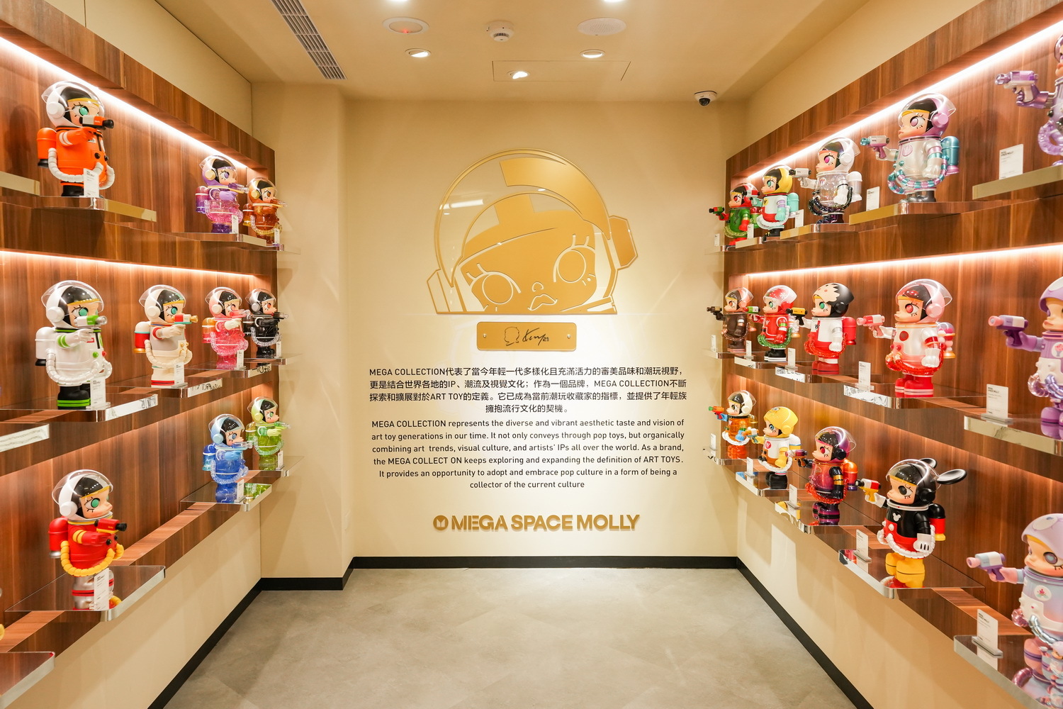 三樓打造全台最大、最完整的「MEGA 珍藏館」,展出 POP MART TAIWAN 所有曾經販售過的大型款式,一旁更設置了布景拍照間,讓顧客可以帶著心愛的公仔拍出美照。另外,還有全台首間 POP MART 直播室,未來將會推出商品介紹、開箱節目以及更多趣味內容。