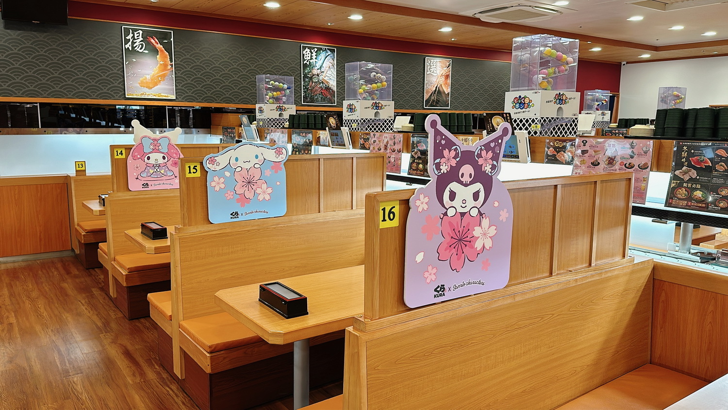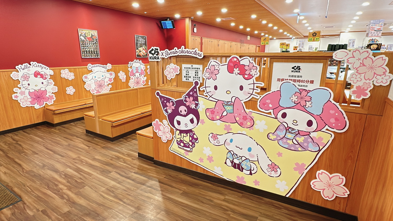 延續新春納福的概念,藏壽司特地將此次聯名的視覺意象呈現在店內,讓進店顧客都能與三麗鷗角色們一同在藏壽司賞春櫻。包括收銀檯、等候區到用餐區都看得到三麗鷗好友們的蹤跡。此次期間限定裝置佈置鋪將在全台基隆中正信三店、台北館前店、台中惠文路店、高雄岡山店實施,1 月 19 日至 2 月 29 日間期間限定。