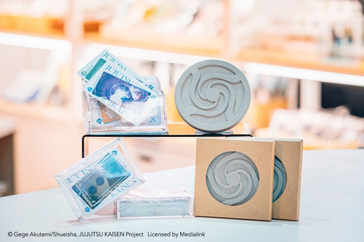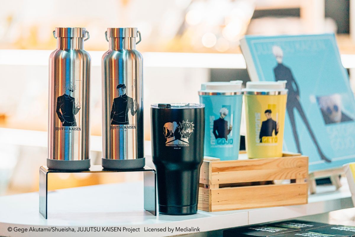 咒術迴戰》主題快閃店也於全台首發超過 200 項第二季全新商品。從辦公文具到生活用品,再到戶外旅行必備,全新限定品將一應俱全,包含:全新工藝設計五條悟、夏油傑浮雕馬克杯,除了見證學生時期兩人不滅的情誼外,更於馬克杯杯底挑戰製作工法,雕刻兩人情誼見證的圖像徽章;還有獄門疆系列商品-環保購物袋、潮流服飾等獨售單品。