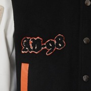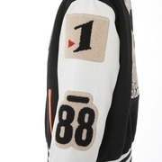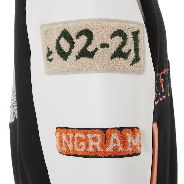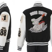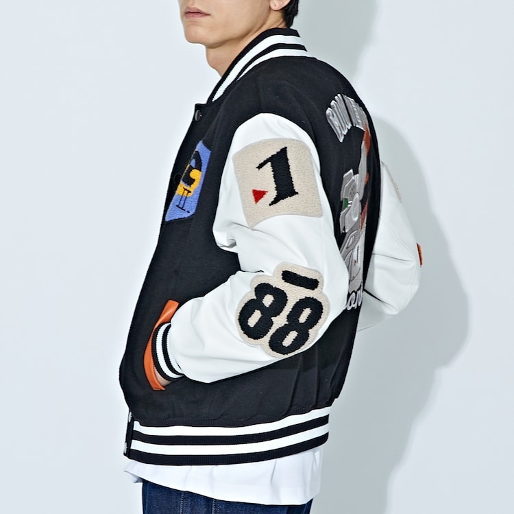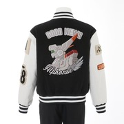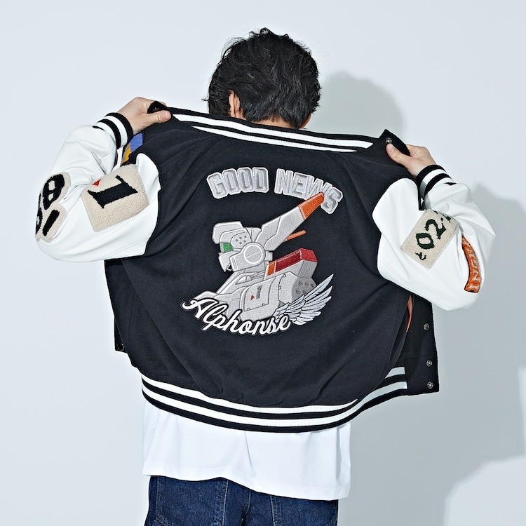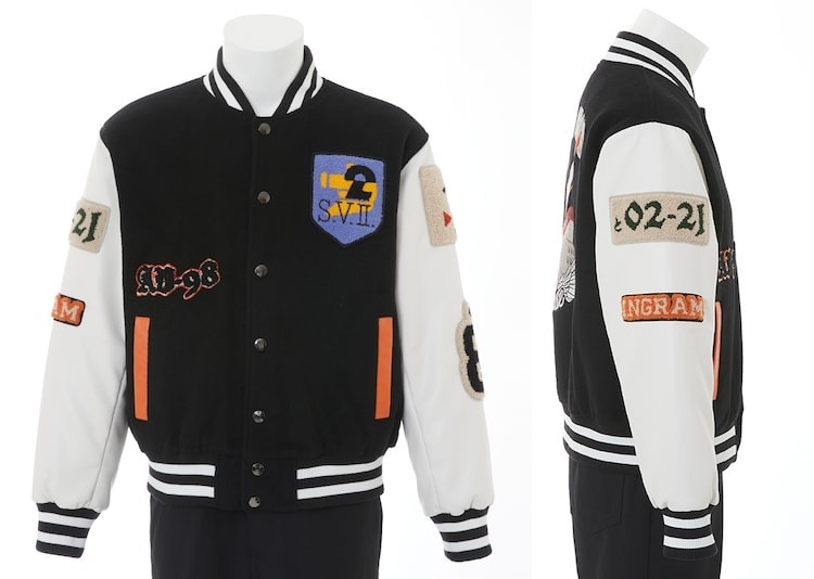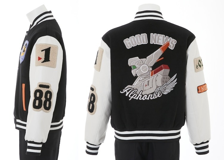 外套則是以遊馬在動畫中穿著的外套為概念所設計,手臂上有著「88」、「1 號機」、「特 02-21」以及的刺繡臂章,背後除了有著英格蘭姆外,還有著「GOOD NEWS」等字體設計。而第三項聯名商品的長夾,同樣是以 1 號機的機體配色作為概念,搭配上「特 2-21」的拉鍊以及機體壓紋。