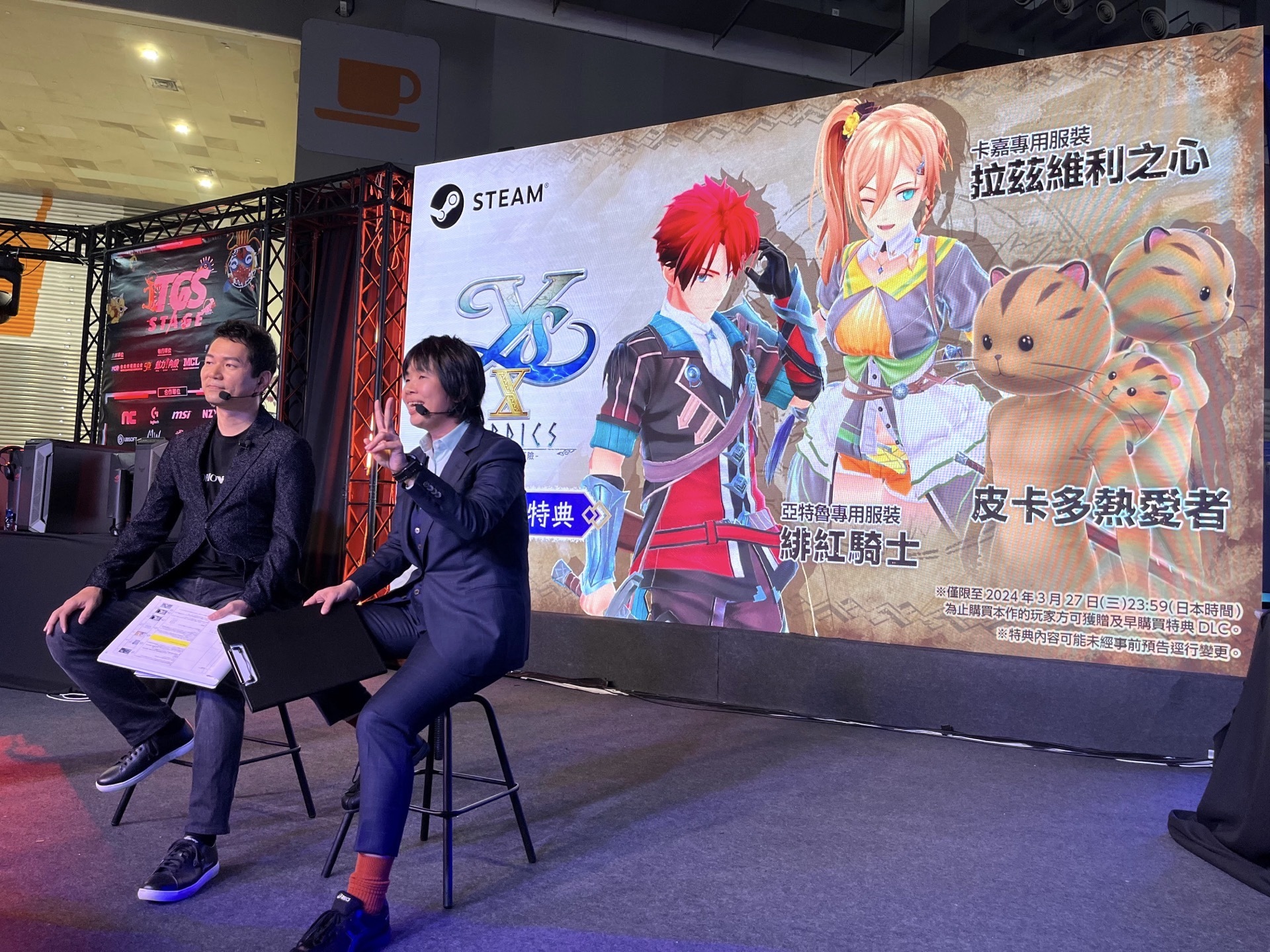 雖說如此,我知道大約 20 年前日本 Falcom 的遊戲就有推出 PC 中文實體版,但因為到了當地也找不到,實際上感覺不出來到底有沒有在賣。直到 10 年前到了台北電玩展發現,亞洲有許多玩家比想像中還要熱情,實際上我們的遊戲不只有日本玩家在玩,大大改變了我們的認知,更因此才下定決心要在亞洲發展,所以對台北電玩展有非常多的印象和感觸。