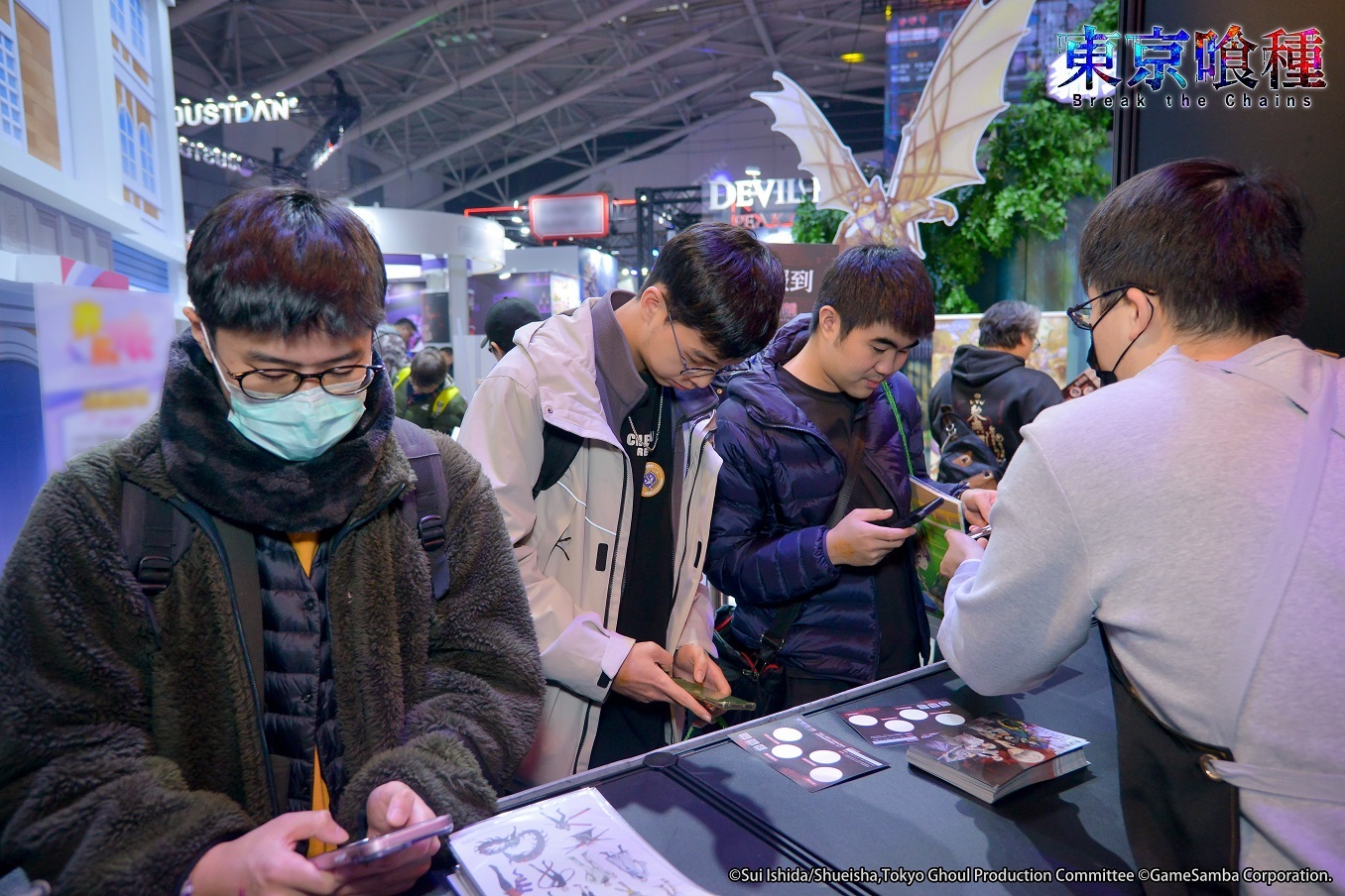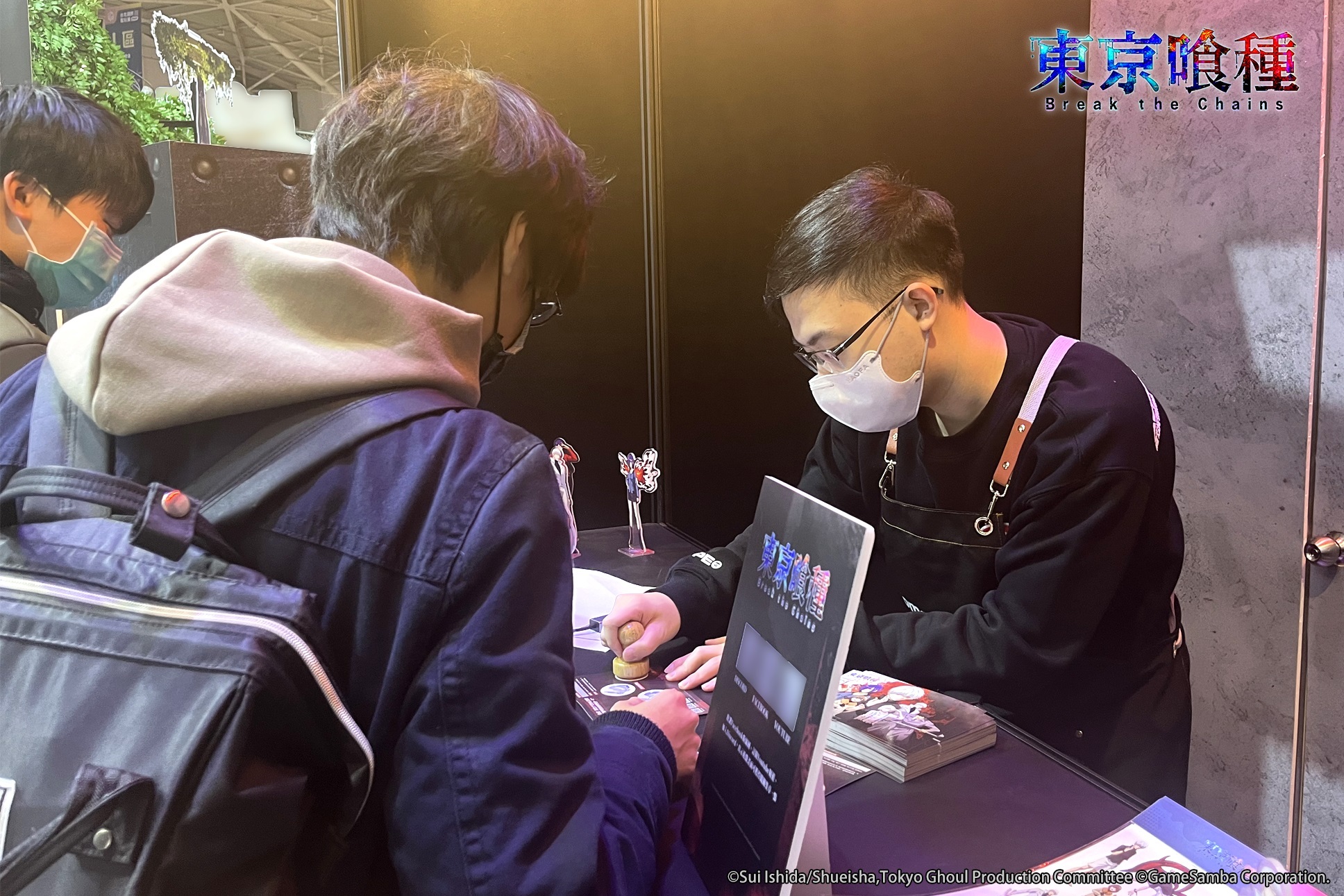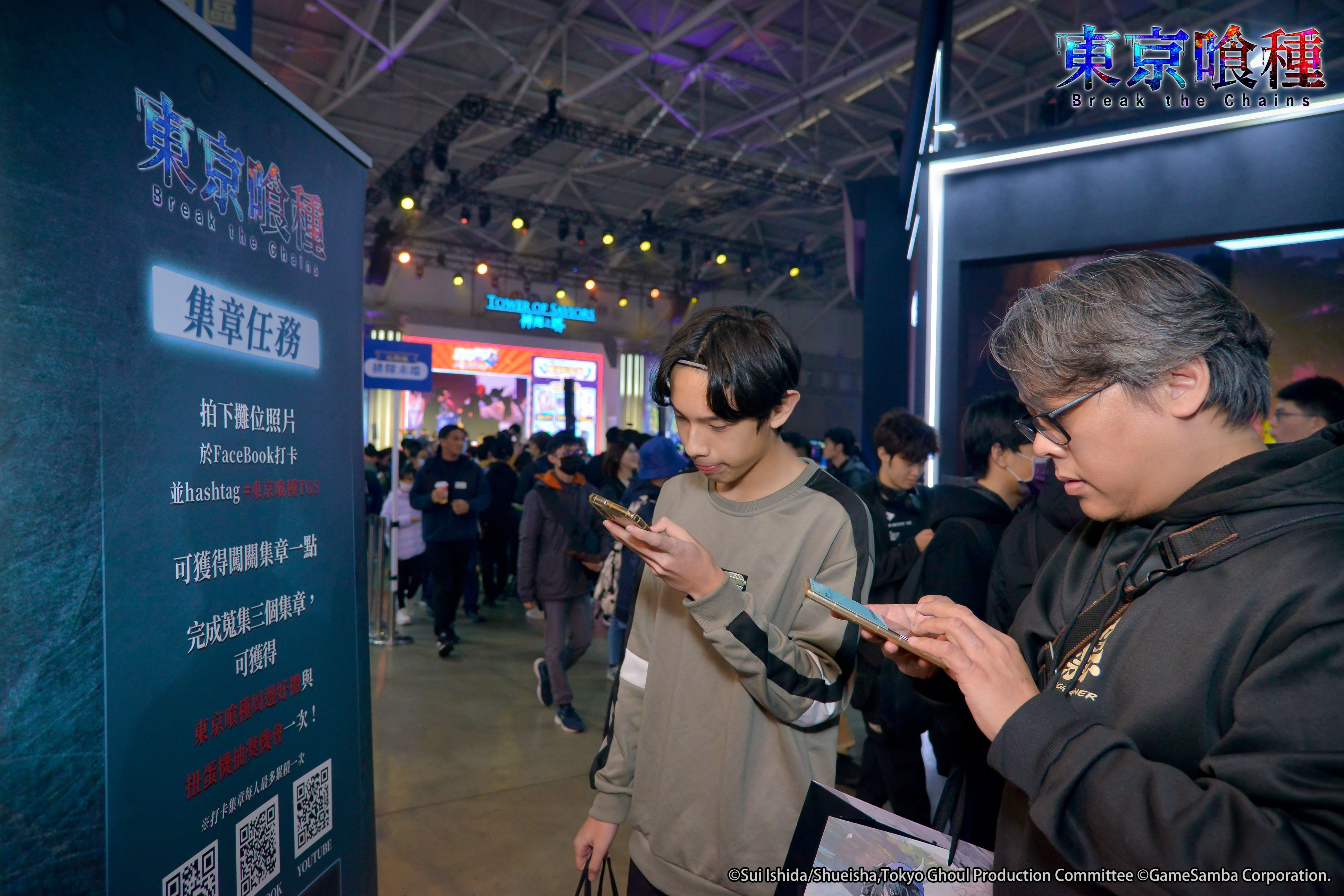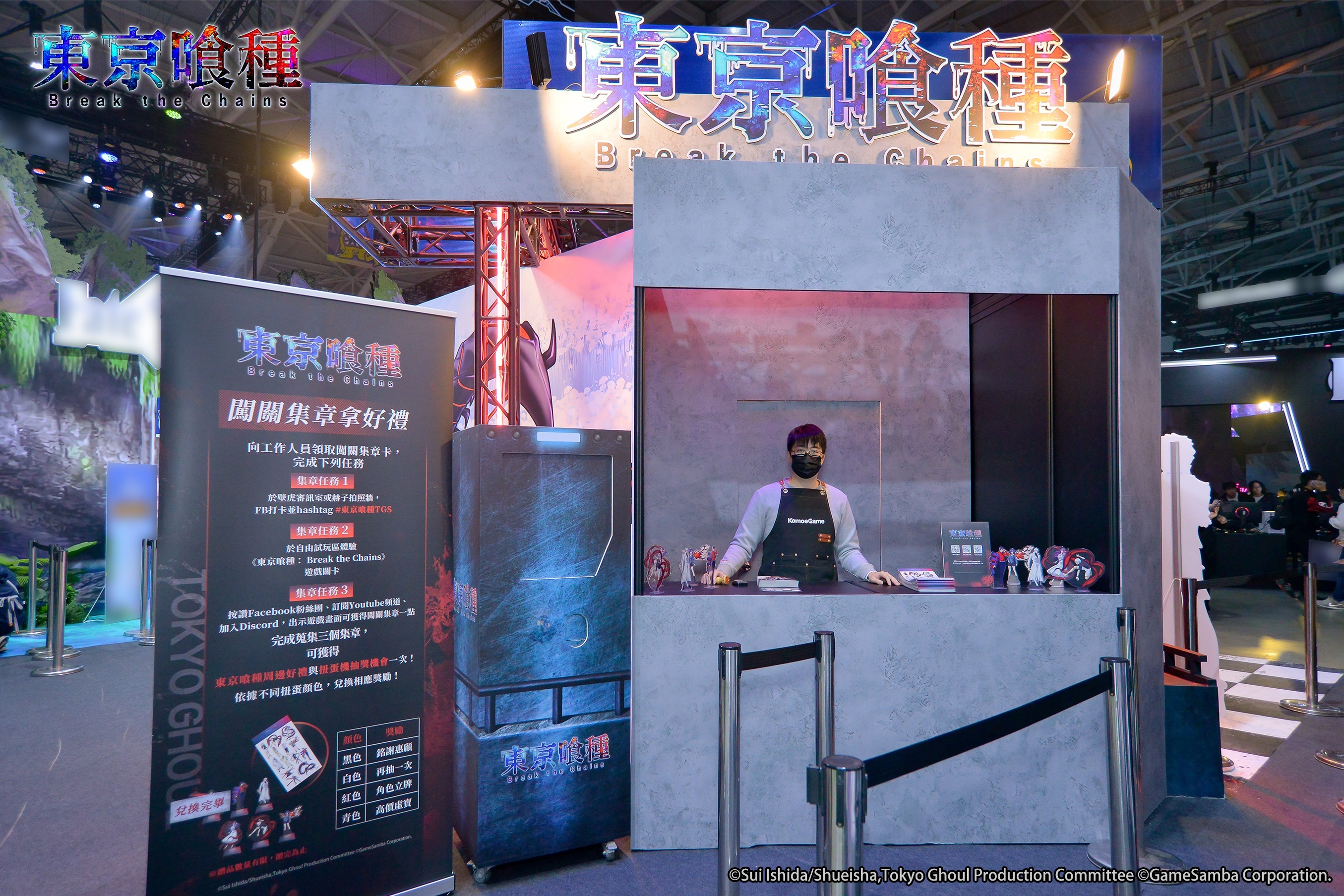 東京喰種:Break the Chains》為了提供玩家沉浸式的情境體驗,攤位設計重現了「壁虎拷問室」,除了設置「拷問椅」,還配有各種道具來增加臨場感,玩家們紛紛排隊試坐「拷問椅」。現場也來了很多自發裝扮成遊戲角色的忠實玩家,其中最還原的兩位 Coser 分別裝扮成金木研和有馬貴將,許多熱情的玩家自發性地排起長龍只為了和他們合影互動、打卡留念。