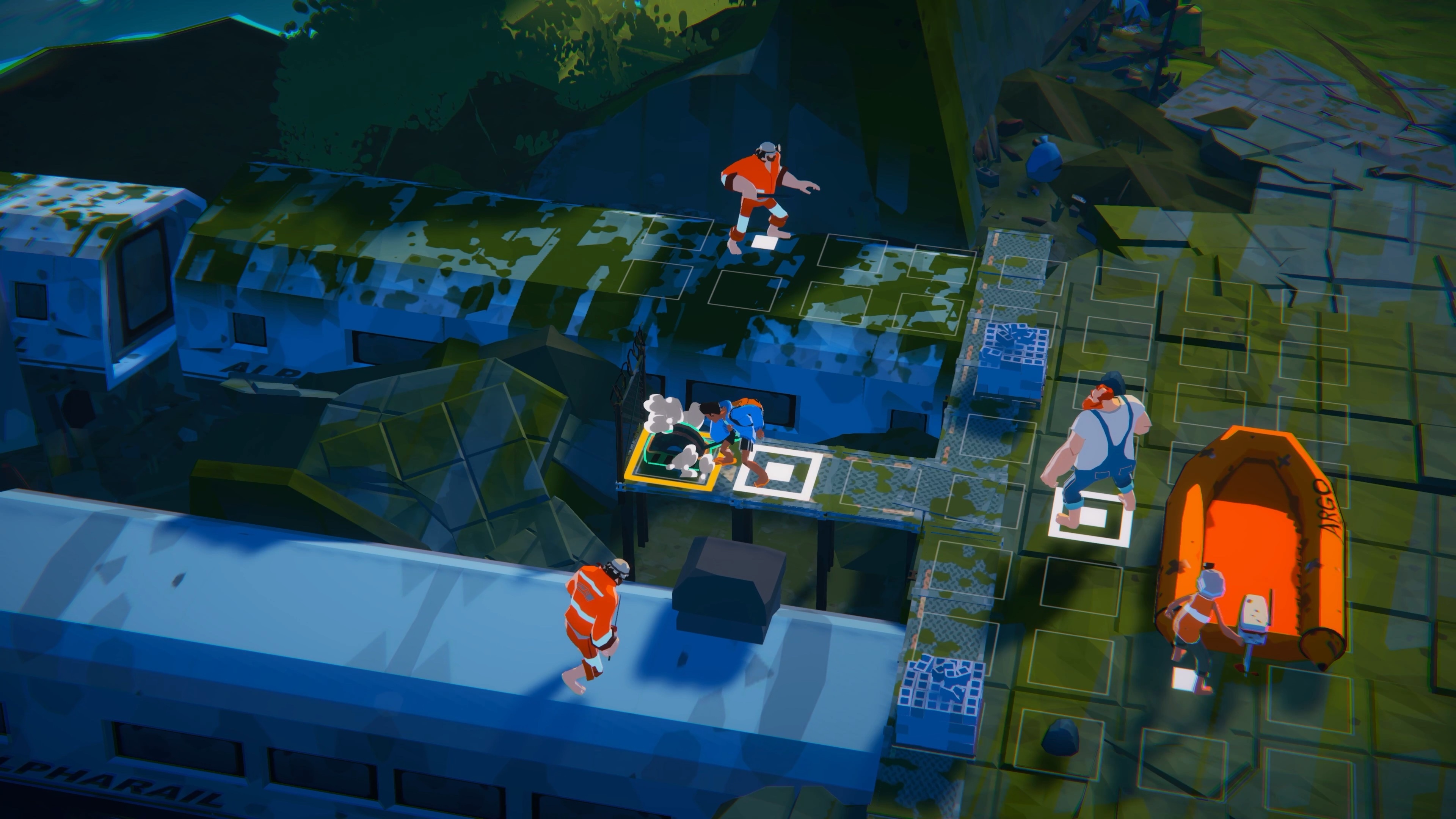 水隱之城》是款採用 45 度視角回合制解謎戰鬥系統,故事發生在一個被洪水淹沒的後末日世界中。玩家將乘船航行、探索島嶼、尋找新的盟友來對抗敵人,並在這場有著濃重憂鬱氛圍的逃亡中體驗一個關於友誼的幽默故事。
