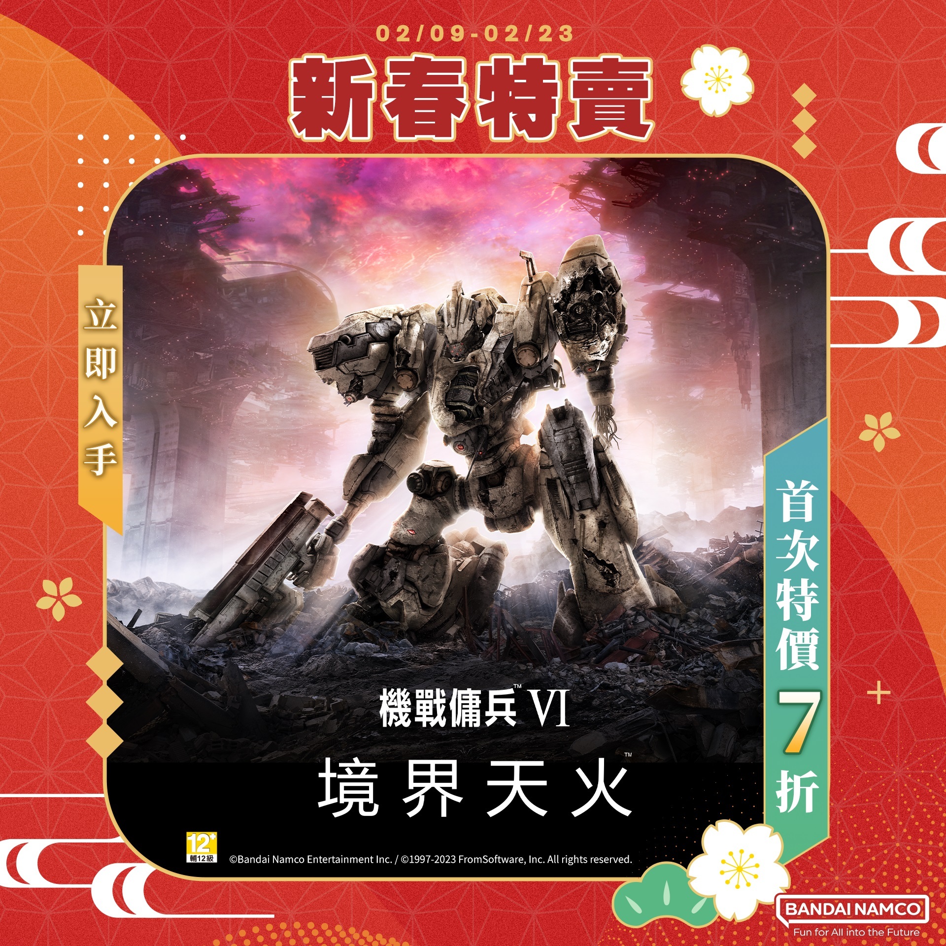 萬代南夢宮娛樂於今日宣布,STEAM 平台的新春特賣活動將於 2024 年 2 月 9 日(五)~2024 年 2 月 23 日(五)間展開,指定遊戲於限定期間購買可享最低 1 折起優惠。萬代南夢宮娛樂及 FromSoftware 攜手製作的機甲動作遊戲《