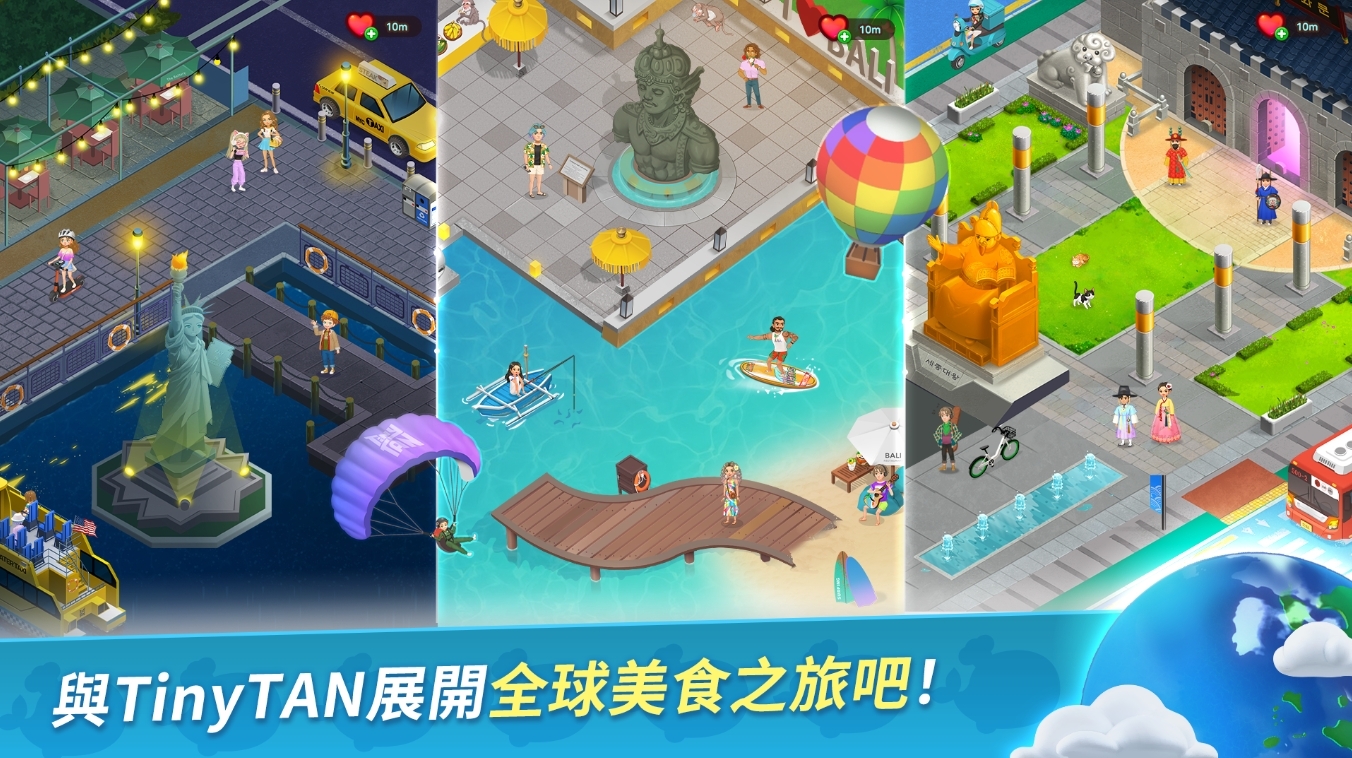 玩家可在遊歷各個城市及烹飪料理的過程中,體驗魅力十足的 TinyTAN 世界觀劇情、收集 TinyTAN 角色相片小卡,以及享受親自打造 TinyTAN 舞台等各種樂趣。另外,玩家可透過親自打造的舞台,欣賞 BTS 神曲,BTS 各專輯主題的 TinyTAN 相片小卡也將依序登場。