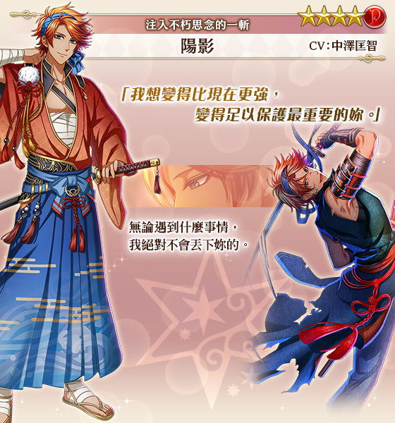 「居然看上這個,不愧是白王子!那把劍,是在這個國家曾經實際存在過的傳說中的劍豪的劍!」在古老的名劍前,陽影雙眸閃爍著光芒開始訴說的傳說,而妳與王子們傾聽著……。