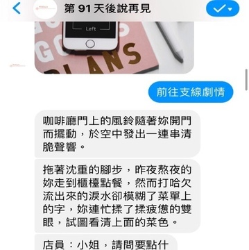 連續九天中,小蘿有不同主題的故事陪伴著你,你將需要透過對話,陪伴小蘿克服過她的難關,以及你自己的難關。讓九天結束後,小蘿可以安然面對主管~~