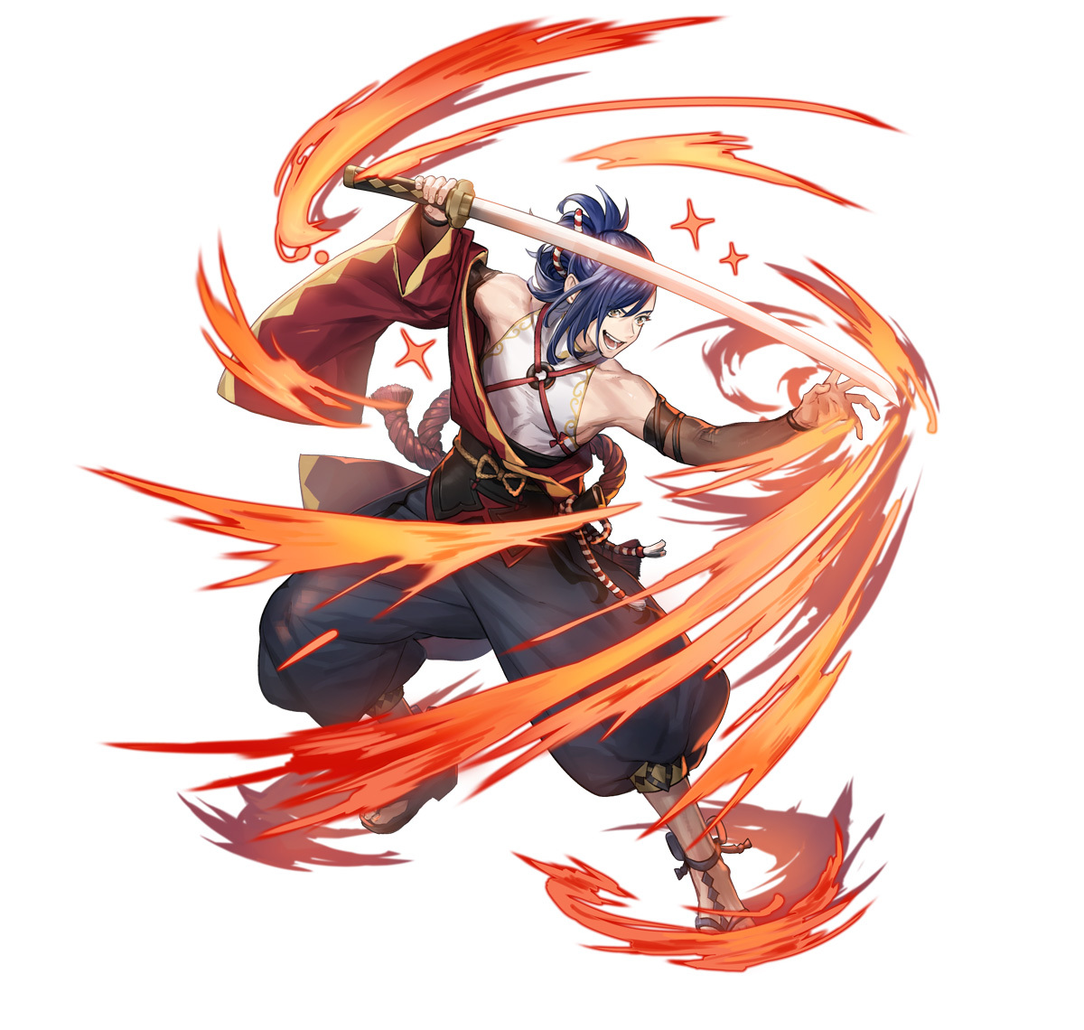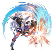 若戰鬥開始時,自身 HP 在 25% 以上,戰鬥中的攻擊、速度、防守、魔防 +5,必定可進行追擊,自身奧義發動計量變化量 +1(若有多個相同系統效果,僅取最大值),造成的傷害 +7(範圍奧義除外)