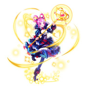 由自己發動攻擊時,或敵人攻擊射程為 2 格時,戰鬥中的攻擊、速度、防守、魔防提升(提升數值為:戰鬥開始時的敵人攻擊的 25%-4)(最多 14、最少 5),抵銷自己的奧義發動計量變化量-,所受到的攻擊傷害降低(減輕的傷害值:20%+攻擊方[由自己發動攻擊時為自己,由敵人發動攻擊時為敵人]移動前與移動後的格子距離[最大 5]x10%)(範圍奧義除外),以自己的追擊給予傷害時,回復 HP7(即使給予的傷害為 0 也會發動效果)