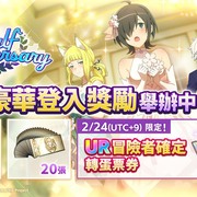 可獲得 UR 冒險者必出轉蛋票券及半周年紀念插圖場景卡片交換票券之登入獎勵