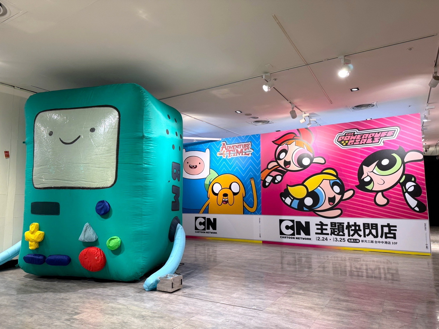 這次卡通頻道 CN 快閃店,在外頭就可以看到超大 BMO 充氣玩偶。接著往內走進會場深處,左手邊會看到《