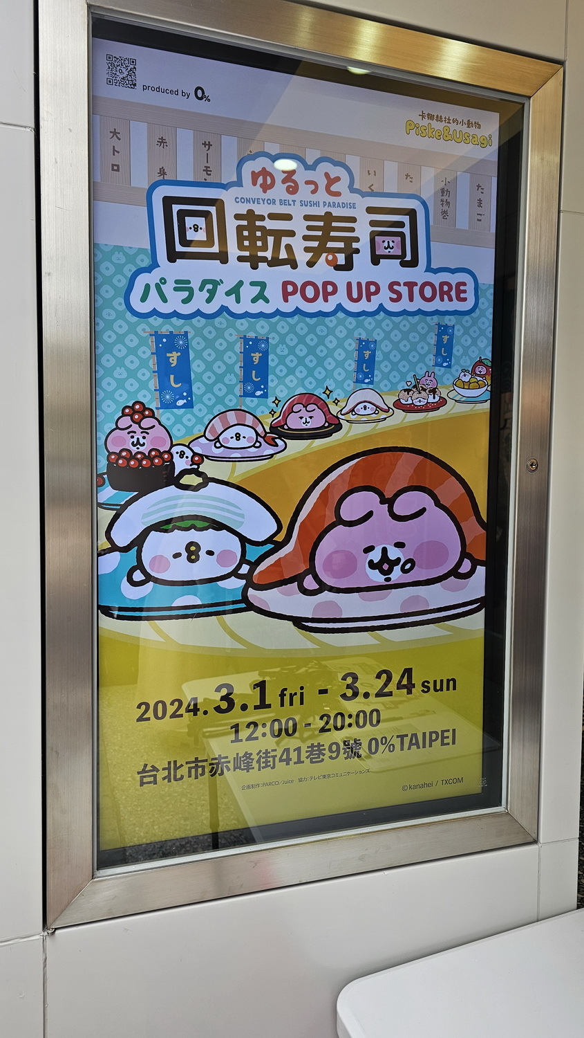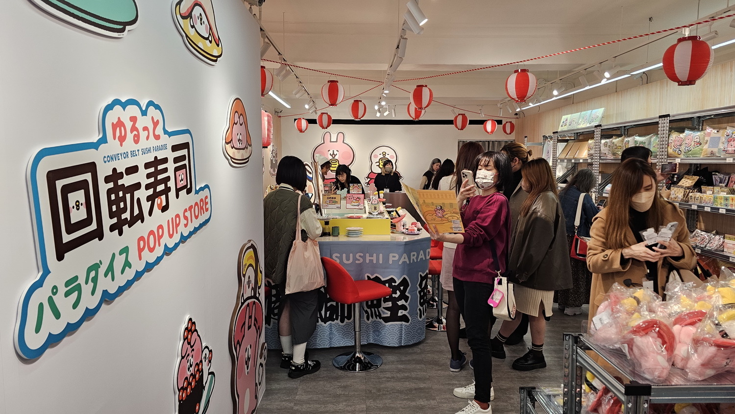 承襲去年於日本 PARCO 造成話題,卡娜赫拉的小動物「慢悠悠 迴轉壽司樂園」自日本空運 1:1 卡娜赫拉迴轉壽司台,首次登陸台灣與大家同樂。不僅可以實際入座看著小動物們慢悠悠在眼前迴轉,享受療癒又開胃的舒壓時光,快閃店內也特別推出多款卡娜赫拉的小動物壽司主題限定商品,包括「壽司 P 助與粉紅兔兔」、「蝦子 P 助」、「鮪魚大腹肉 粉紅兔兔」、「鮭魚卵 粉紅兔兔」等多款玩偶,還有手機扣環、和風桌巾、T 恤、包包靠枕等實用的生活小物,還有諸多 P 助與粉紅兔兔的日本原創商品。