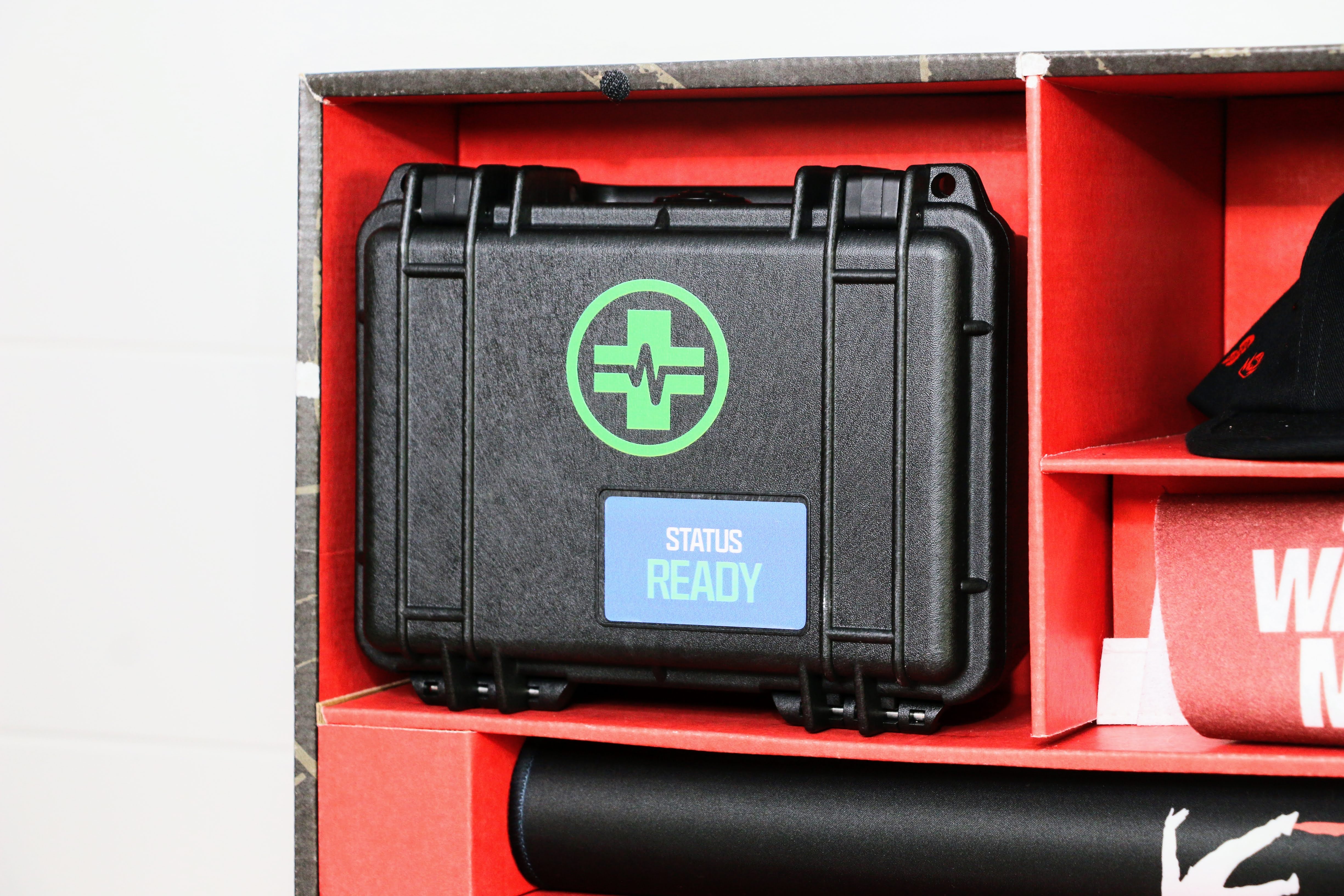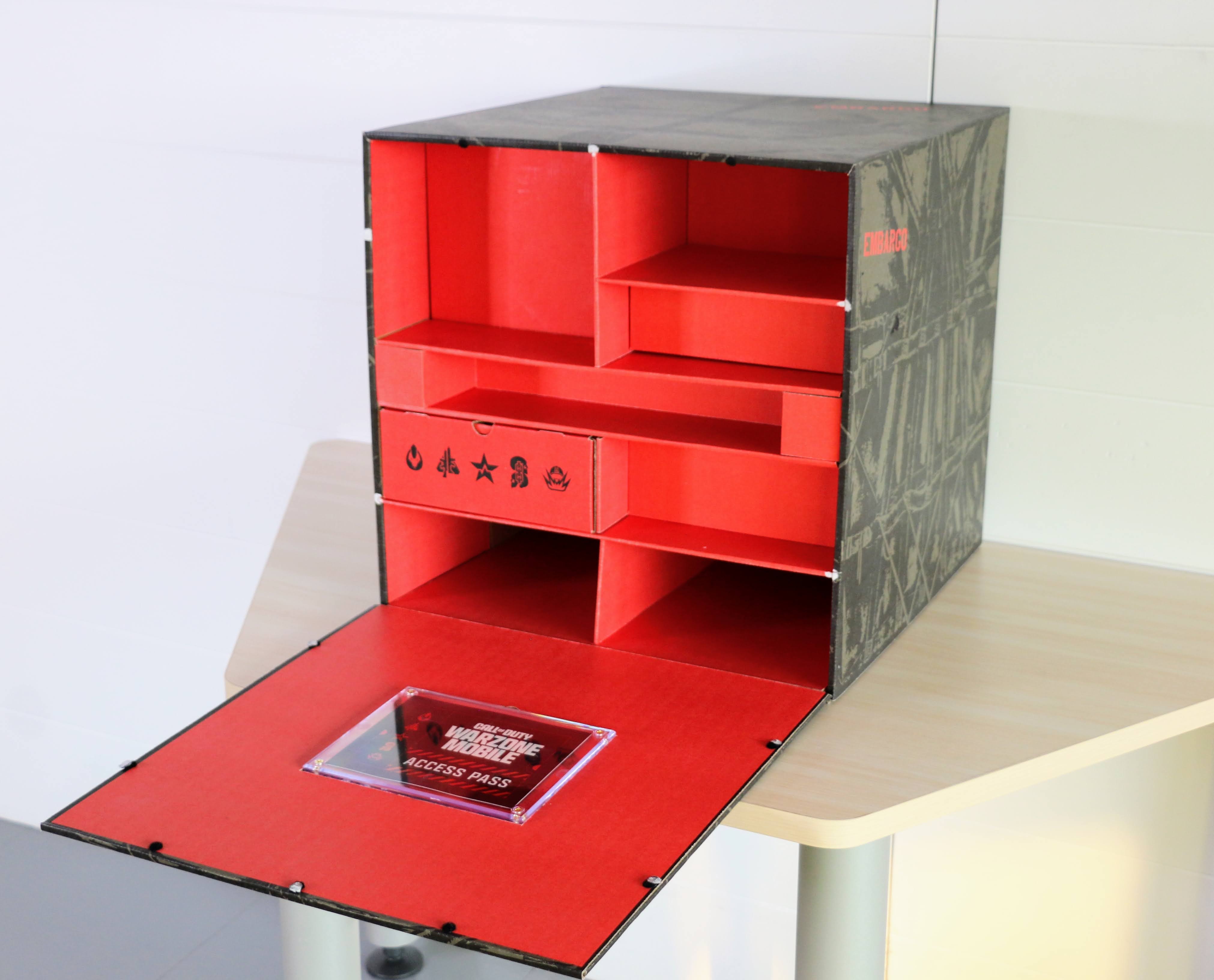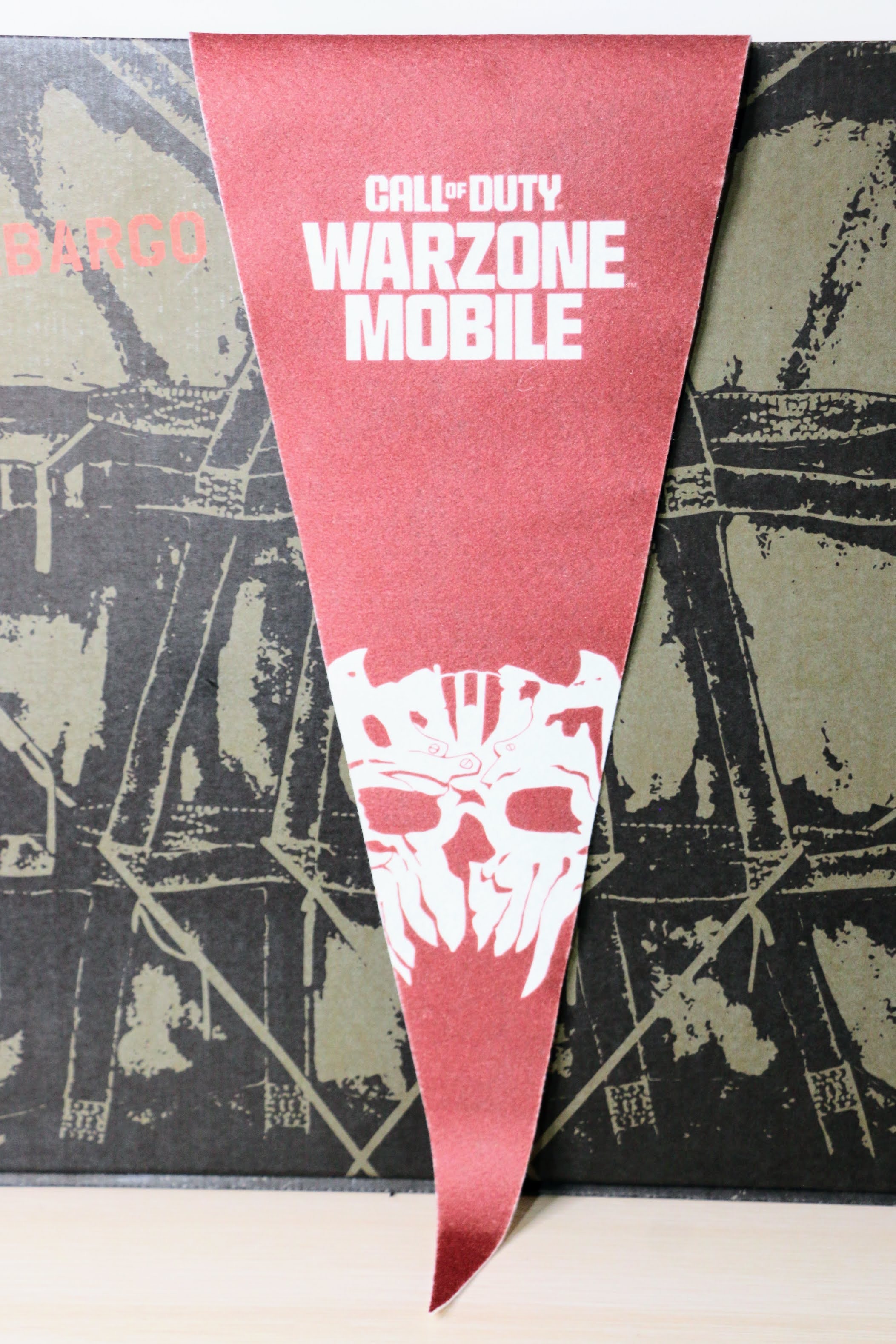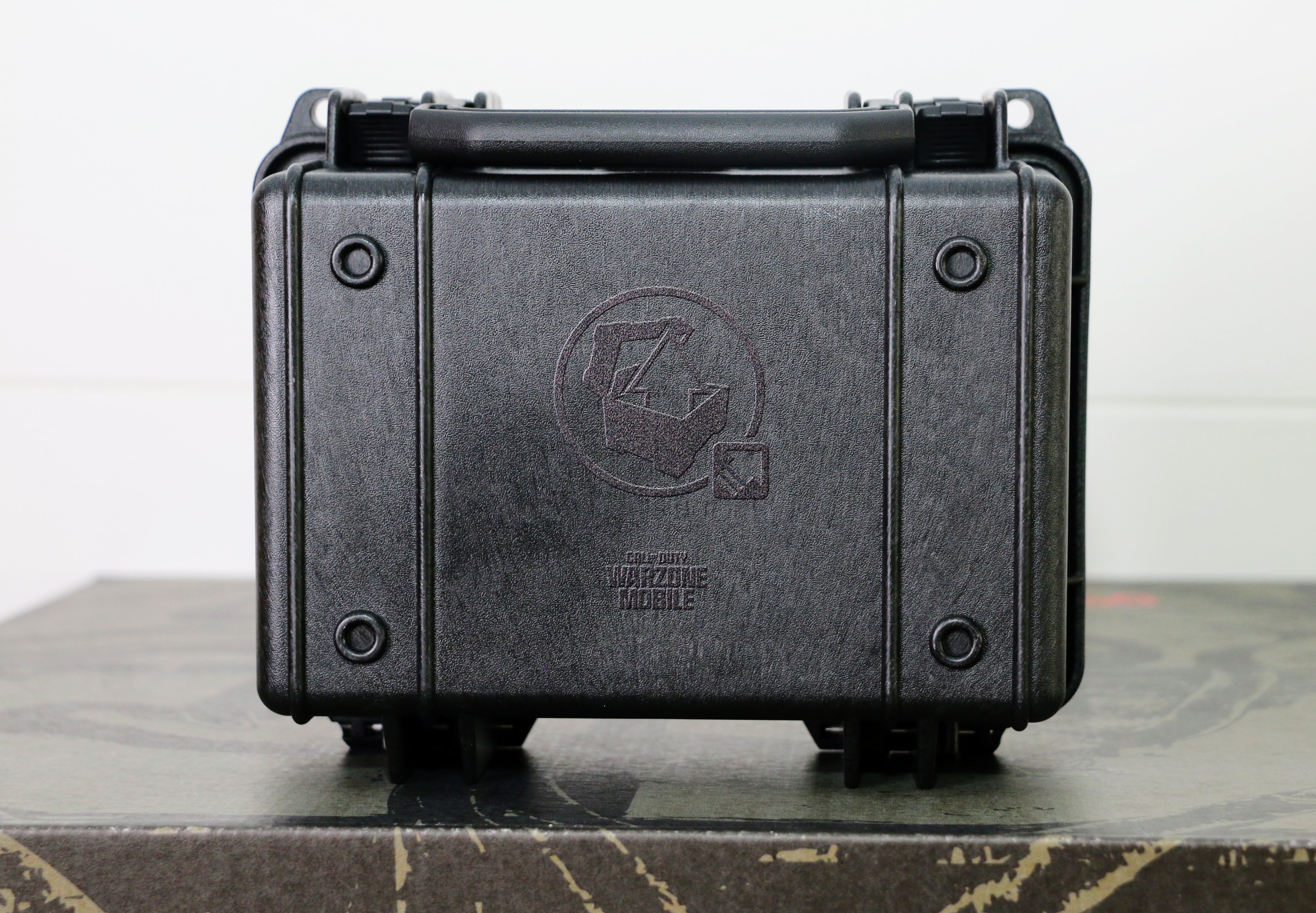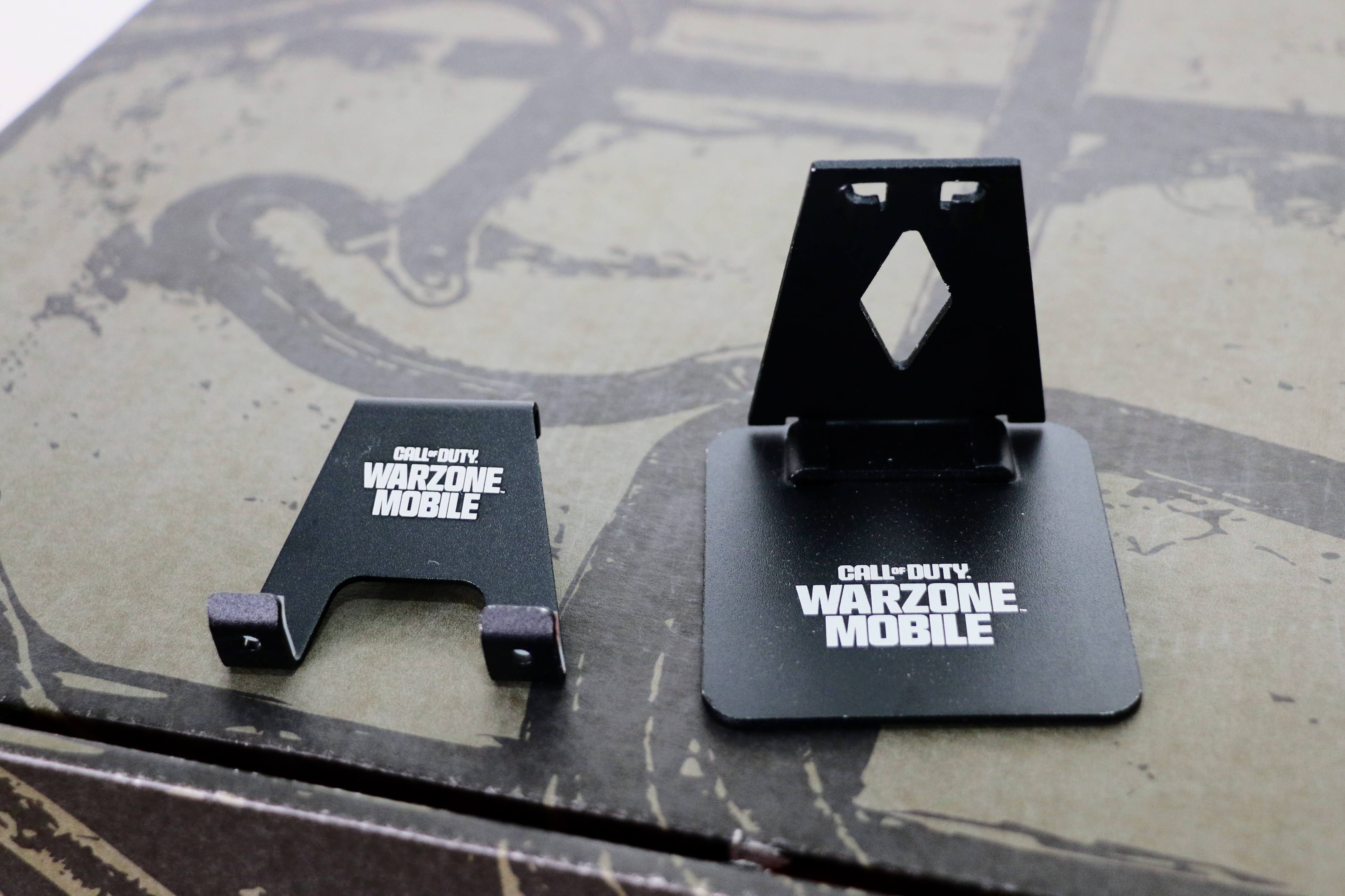 決勝時刻:現代戰域 Mobile》禮盒相當龐大,而內容物也是琳瑯滿目,從帽子、背包、T 恤、連帽上衣、行動電源、手機架、掛旗、滑鼠墊、眼鏡清潔液、徽章、貼紙到指套,讓人目不暇給,以下將透過圖片及影片的方式呈現。