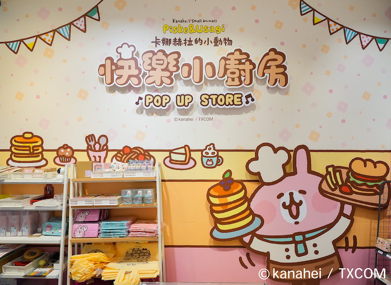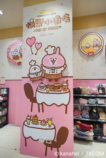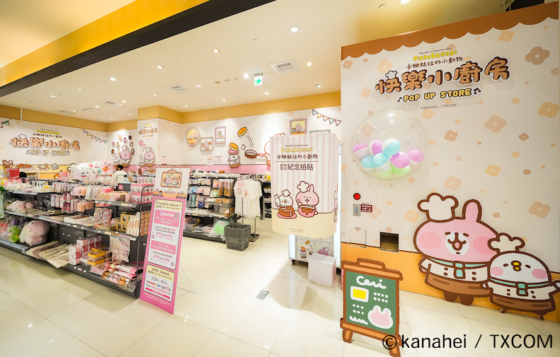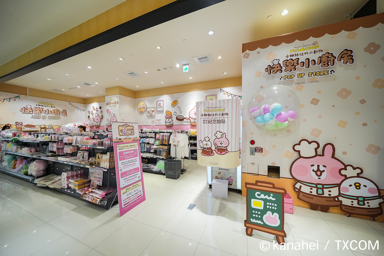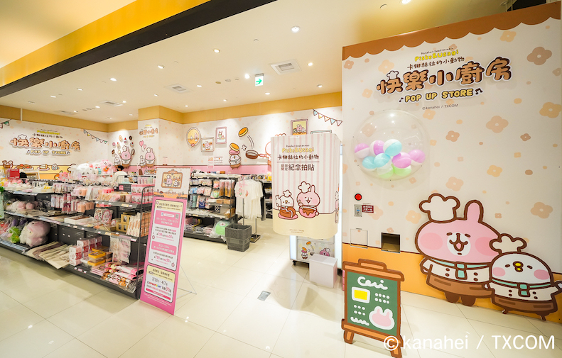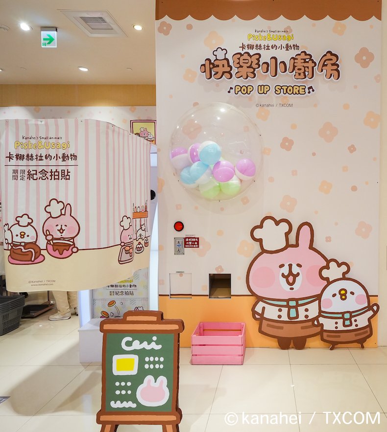 「卡娜赫拉的小動物-快樂小廚房」自即日(3/7)起至 4/16 於統一時代百貨高雄店 1 樓開幕,遠遠就能看到快樂小廚房的主視覺,P 助與粉紅兔兔一人一手分別端著可口的三層鬆餅和巧克力杯子蛋糕歡迎大家。往內走可以陸續看到「快樂廚房迎賓區」的大扭蛋區、「翻轉吧鬆餅區」、「浪漫幸福下午茶」、「小廚師做甜點」、「快樂廚師上菜囉」等。