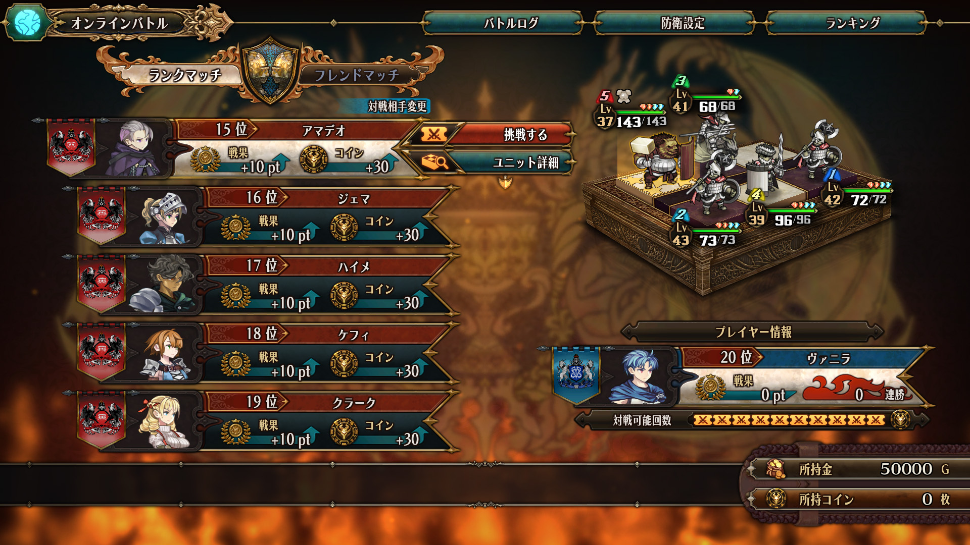 玩家能與全球玩家上傳的部隊交戰,彼此競爭戰果的模式。打造出最強部隊和戰略,以成為連線排行榜 NO.1 為目標吧。