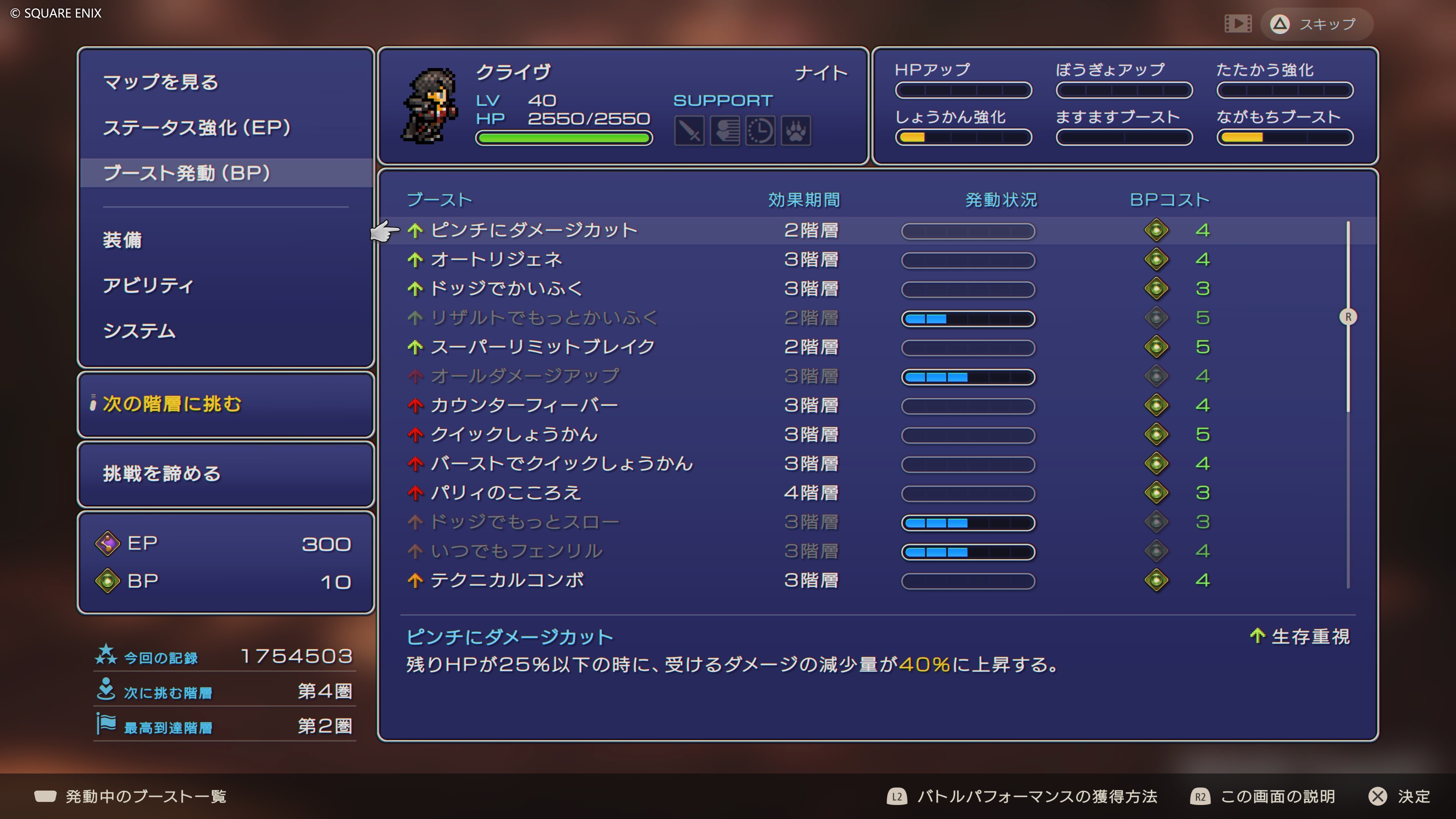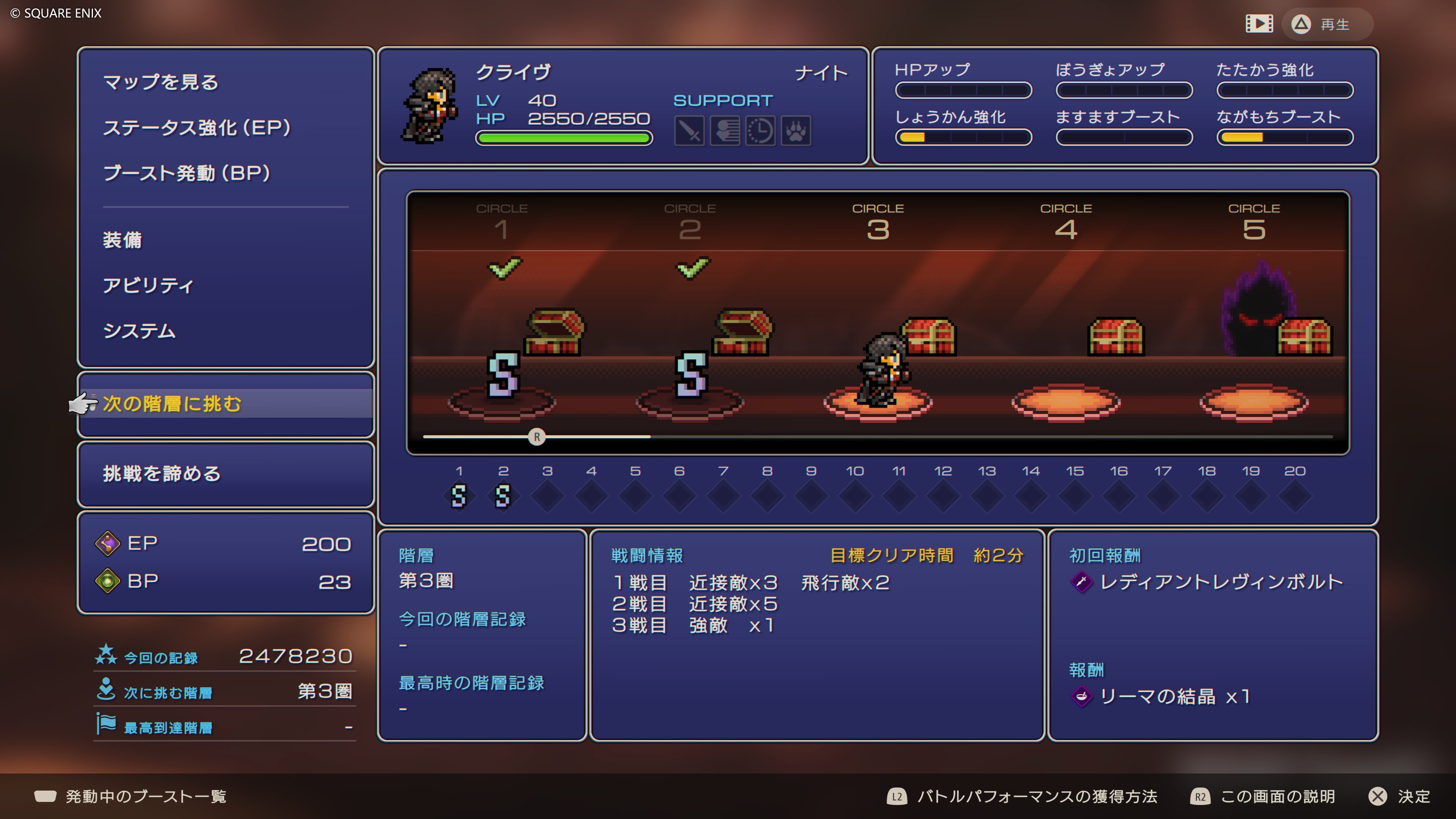 此外,新登場的戰鬥內容「卡伊洛斯(カイロスゲート)」是一種要一邊打倒接連出現的敵人,一邊朝著最深處前進的戰鬥內容。在這個內容中,可以使用戰鬥表現來獲得的專用點數來強化克萊夫。根據敵人的編成和自己的戰略來強化克萊夫,並取得各種獎勵吧!