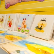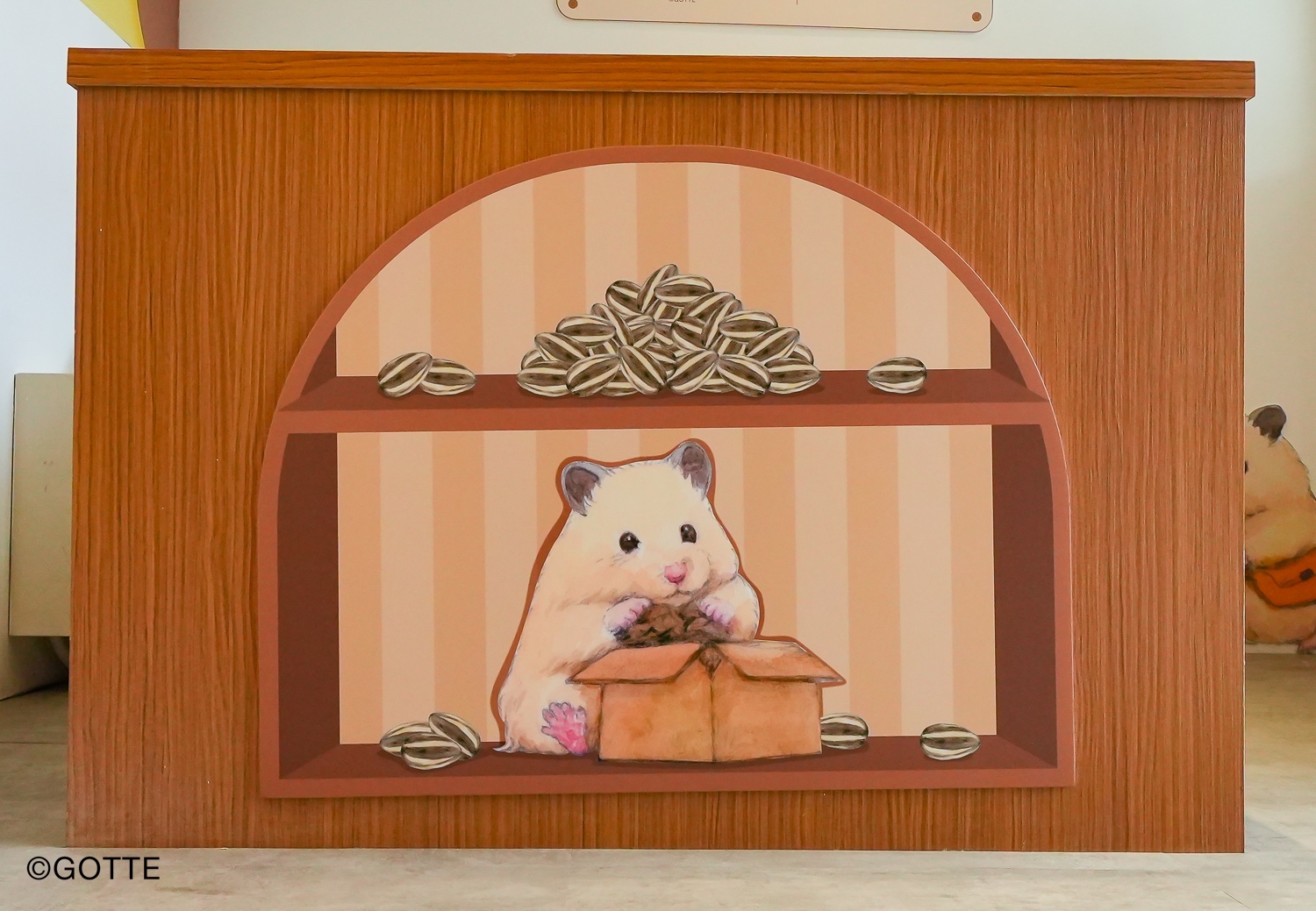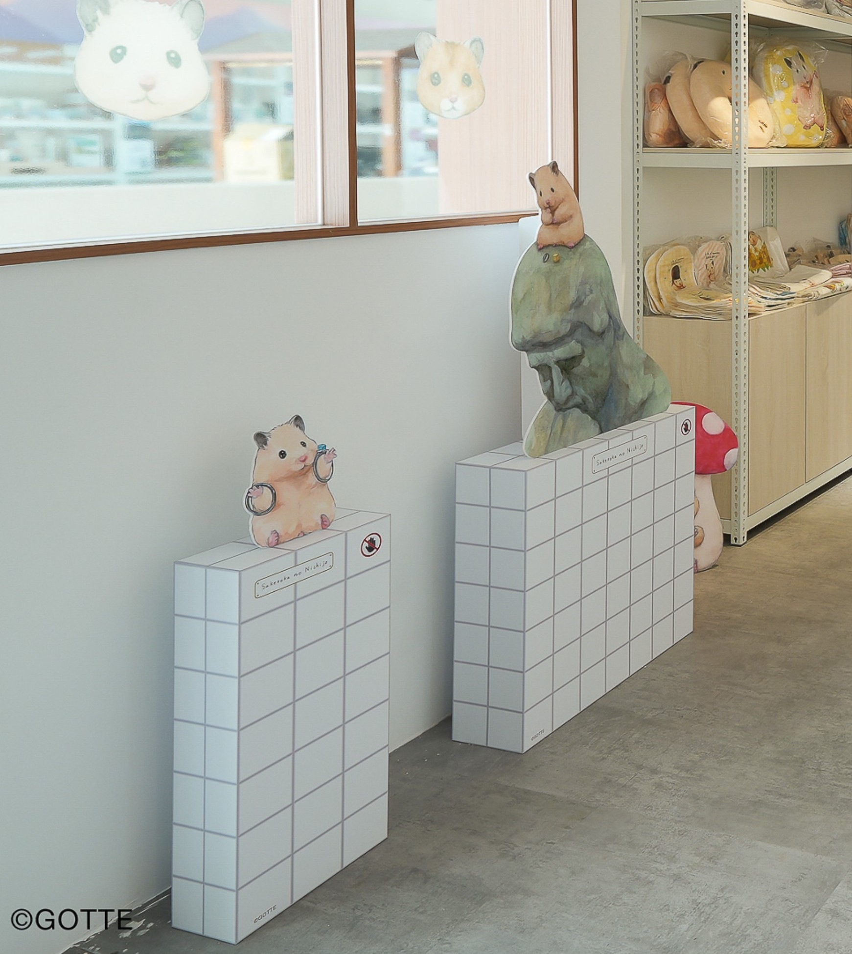 遠遠就看到有著助六和小夥伴拿著畫筆在教室開心上課的「吉祥道主視覺」,門前「助六開運祈福中」的助六舉牌歡迎你到來!進門後「助六求吉中」的助六坐在雕像上低頭祈禱,正在為大家祈求一年好運唷!接著「喜洋洋上學中」的助六開心展示他的素描作品,還有小夥伴抱著娃娃午休的可愛模樣!其中還有相框中掛著小助六帶著小學黃帽第一次去學校、種植物的種種兒時回憶,看小助六從小長大福氣滿點!往右則是「開運修學旅行」,不管是當小農夫在田野實習、或是和小夥伴去遊樂園搭列車冒險的助六,各種陪你日常遊玩去!最後來到櫃檯前的「助六吉祥豐年祭」,看助六搜集好久的成堆種子,祝福大家這一年都能豐衣足食唷!