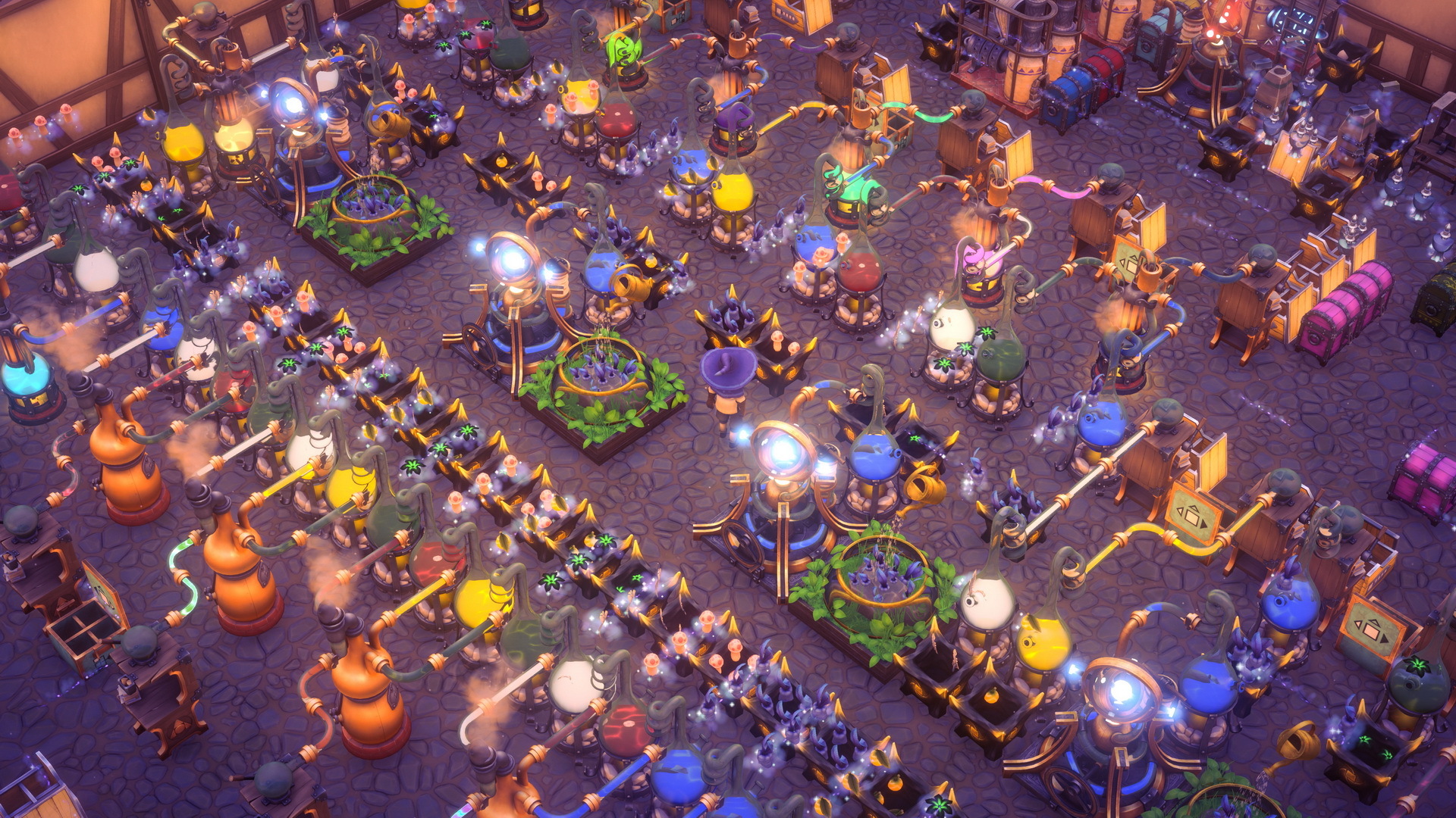 魔藥工坊》是一款經營模擬冒險遊戲。玩家將扮演葛賽達的徒弟,與哥布林助手一起建立煉金工作站的自動化生產線,為當地英雄提供强化藥劑,幫助他們完成史詩級冒險任務,並成為他們最喜愛的藥劑供應商。玩家也需要探索不同的生物群落,利用冒險能力收集和研究奇特原料,發明全新配方。來面對葛賽達給你的所有挑戰,讓商店恢復昔日的輝煌。